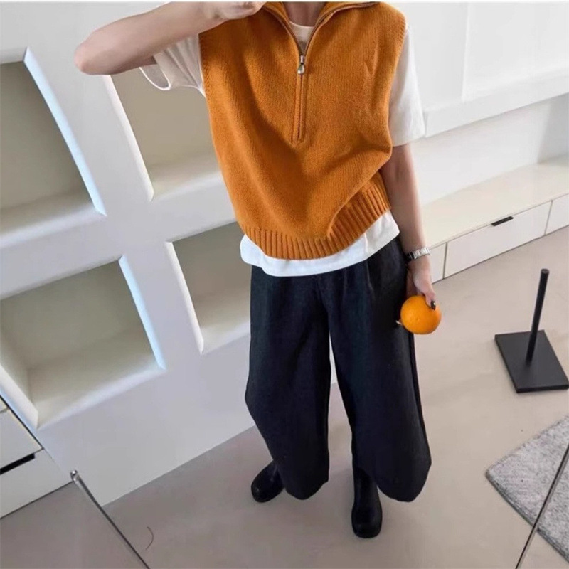 심플한 스타일의 하프 지퍼 니트 조끼 여성 가을 신상 레이어드 아우터 시크한 연령 감소 조끼 탑