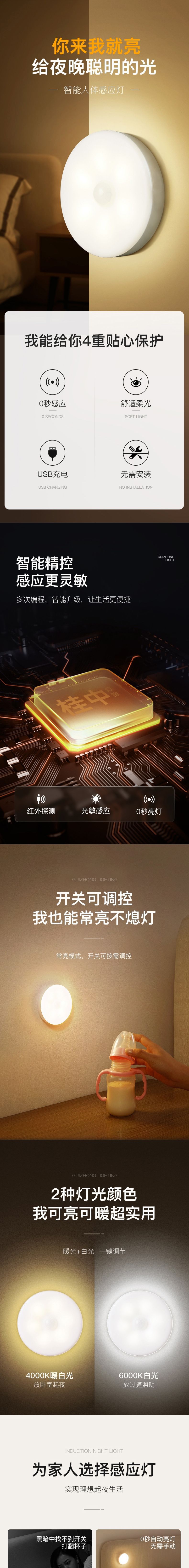 • [따뜻한 빛] 둥근 인체 센서 야간 조명