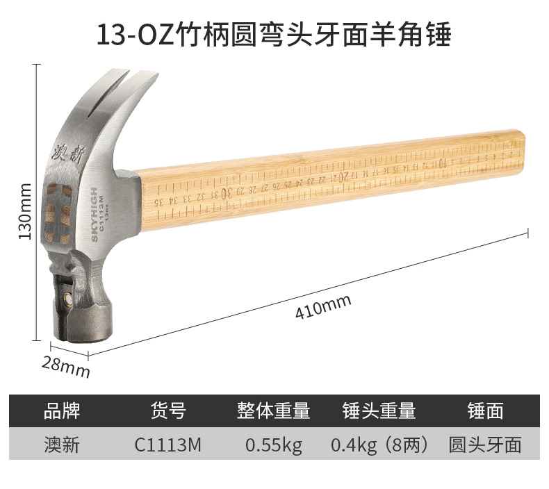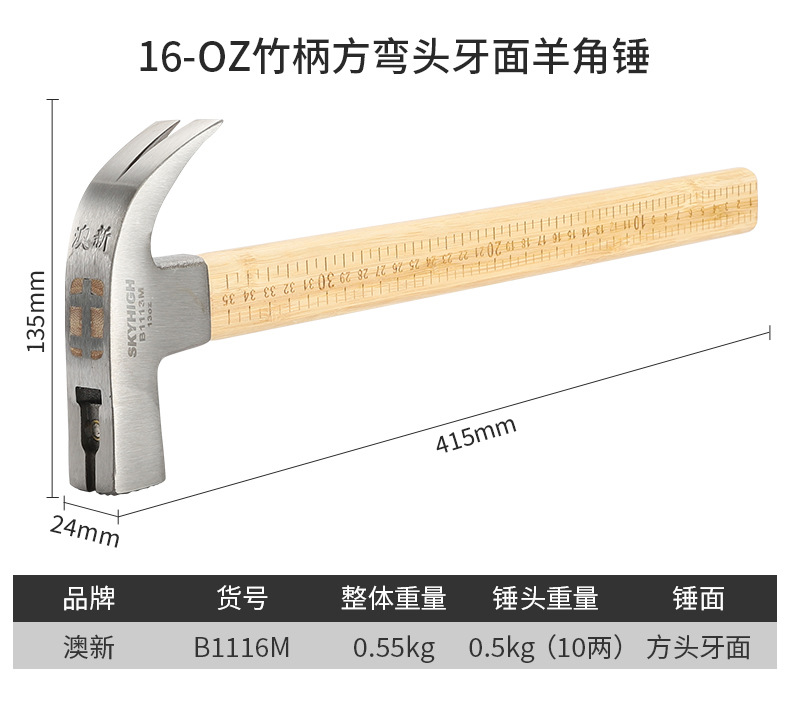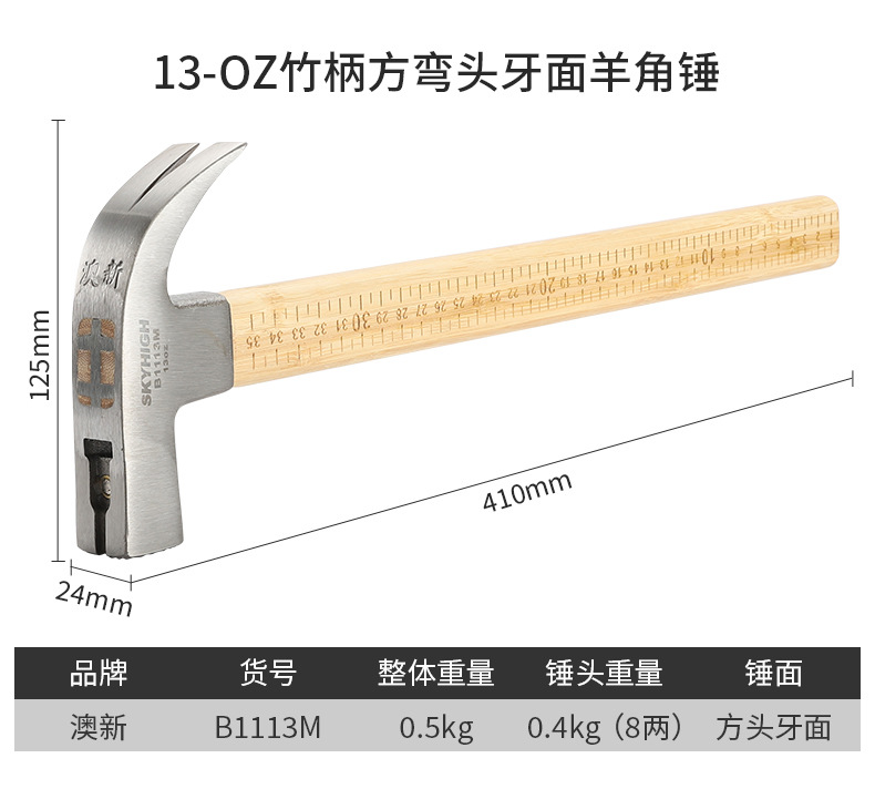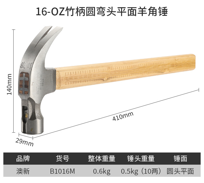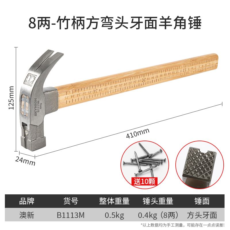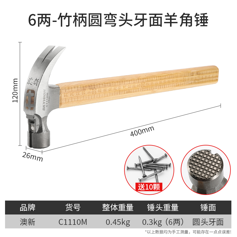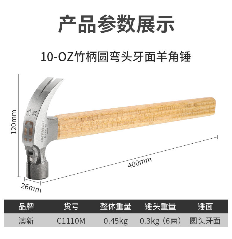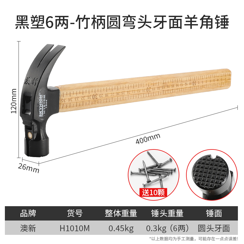 특수강 코너 해머, 대나무 손잡이 해머, 목공용 못빼기 해머, 못빼기 해머, 건설 현장 템플릿 작업자 해머, Aoxin 해머스토어 가기