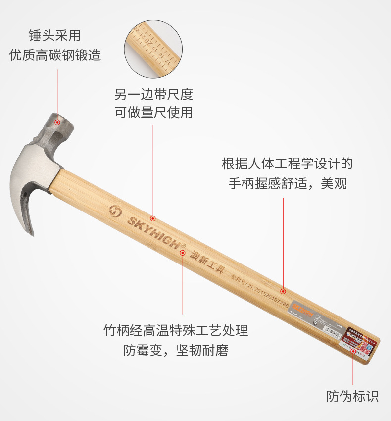 특수강 코너 해머, 대나무 손잡이 해머, 목공용 못빼기 해머, 못빼기 해머, 건설 현장 템플릿 작업자 해머, Aoxin 해머