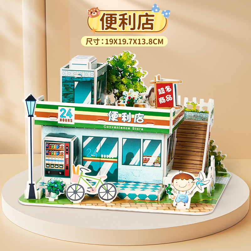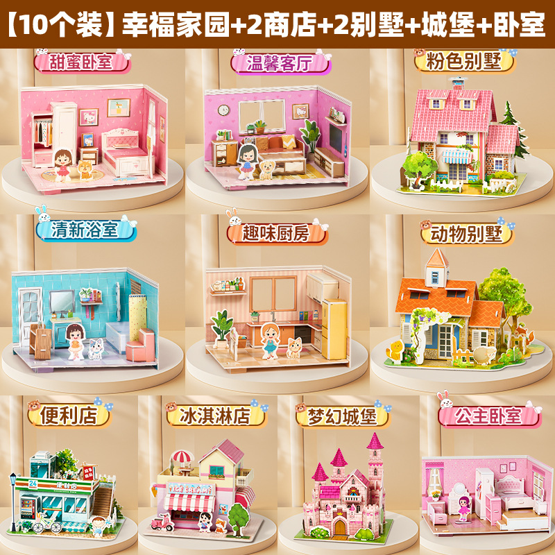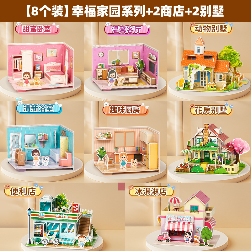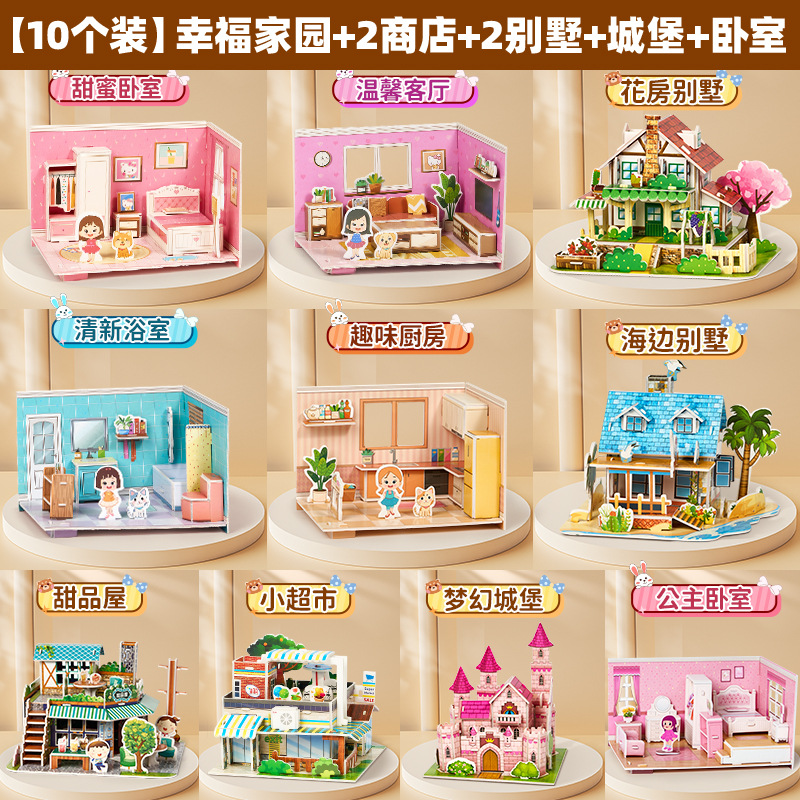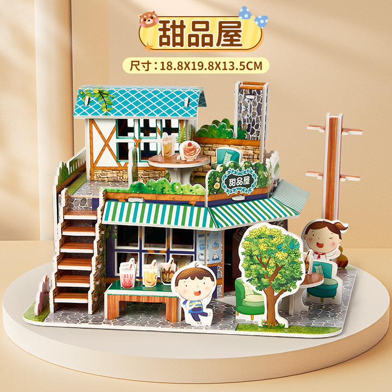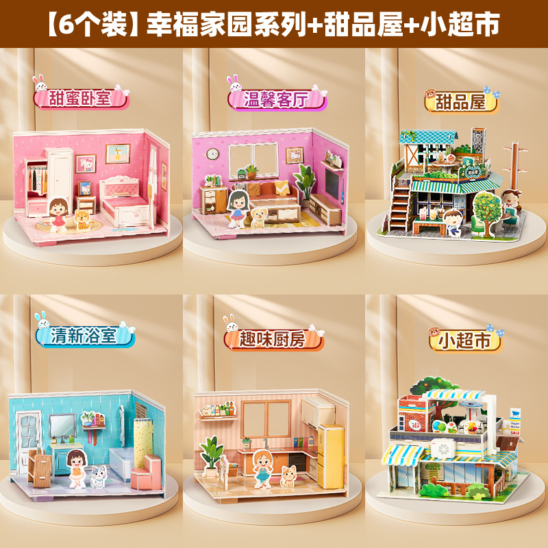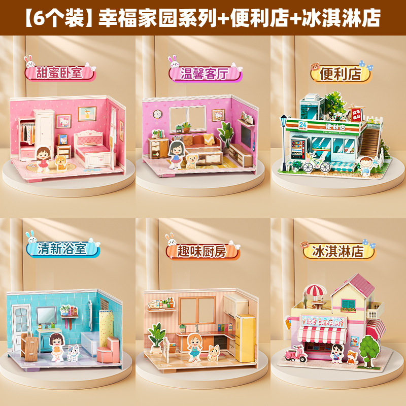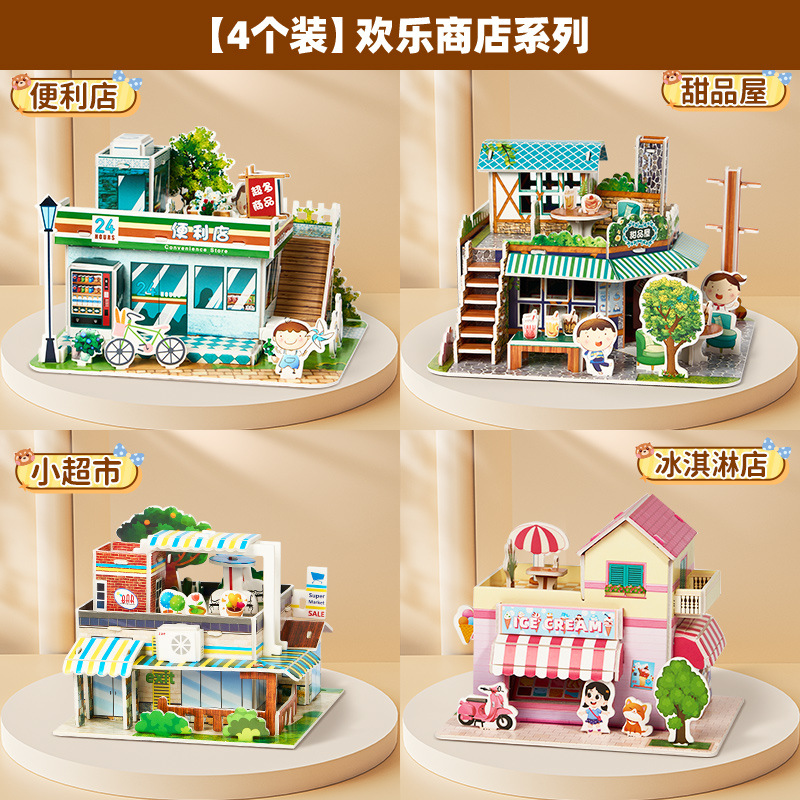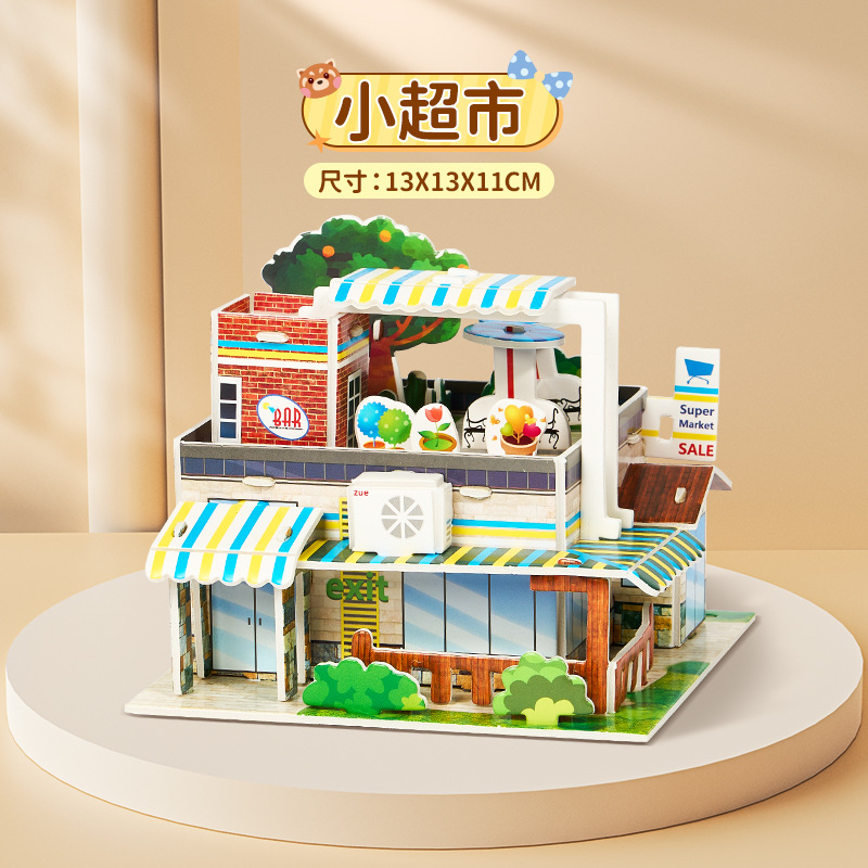 어린이 3D 입체 퍼즐 모델 조립 된 오두막 빌딩 블록 수제 diy 수제 종이 집 6 소녀 교육 장난감스토어 가기