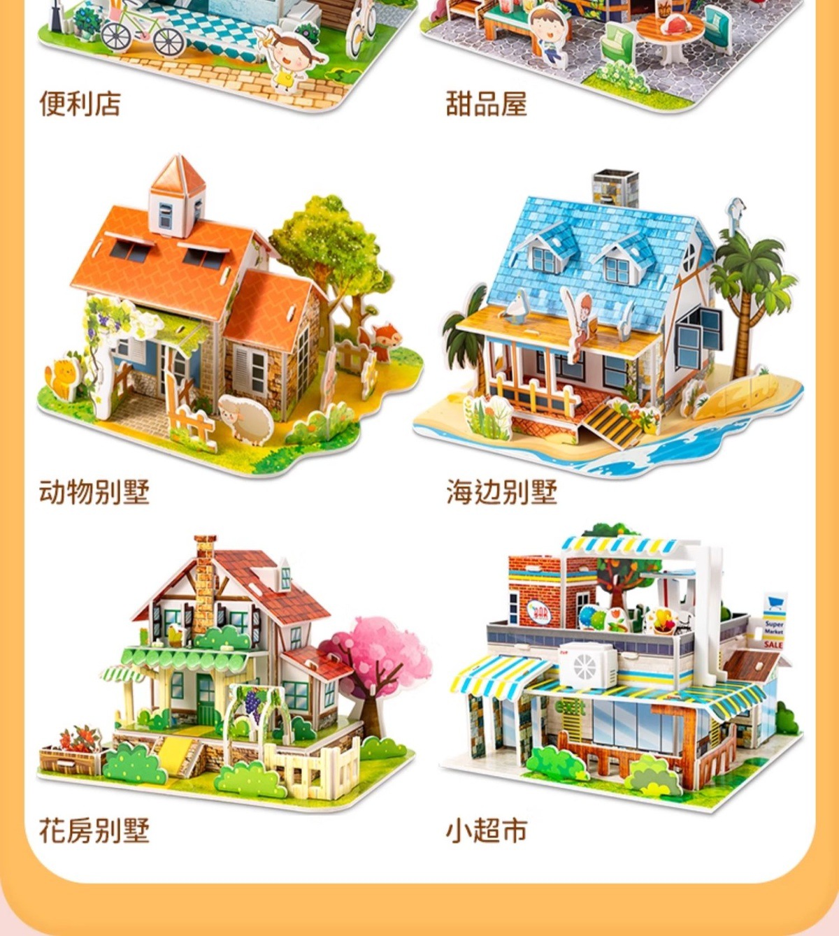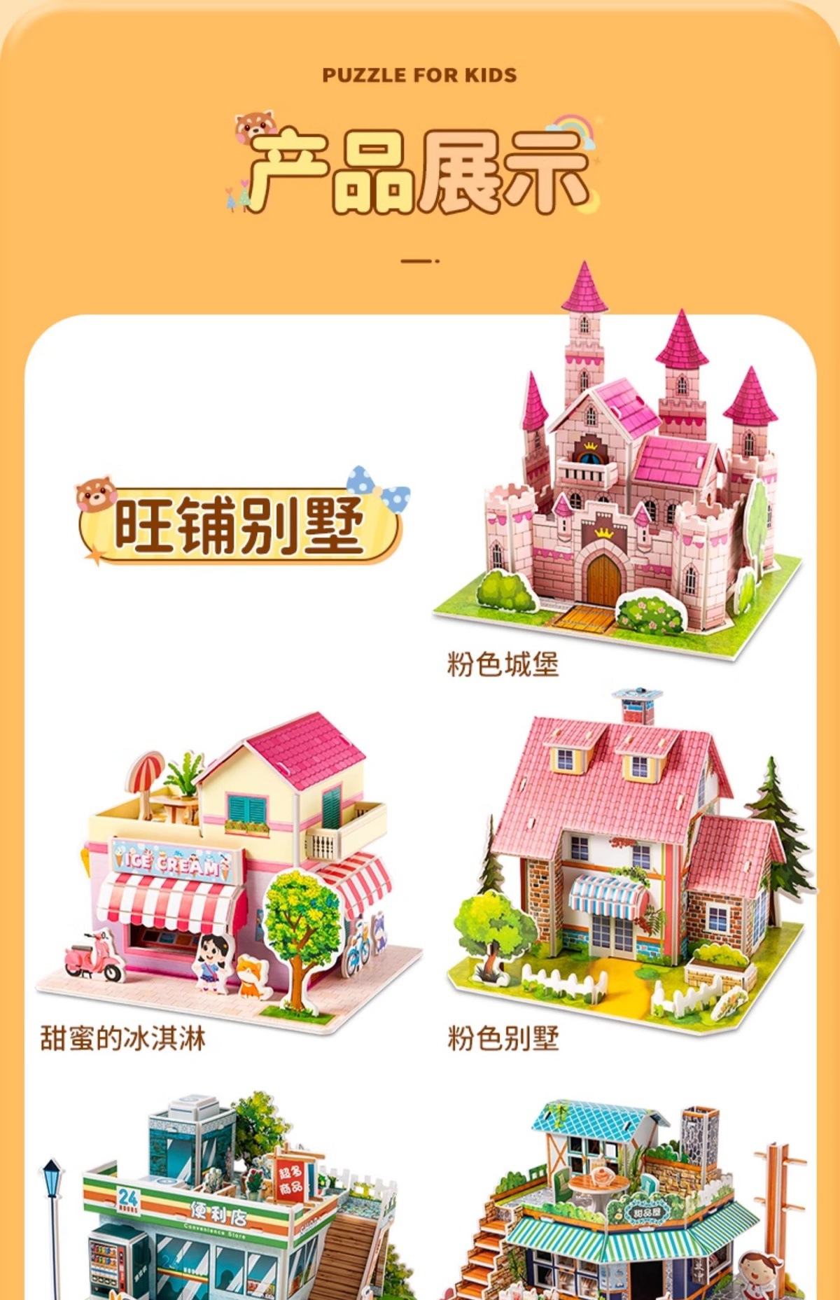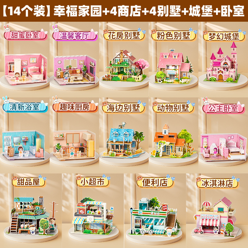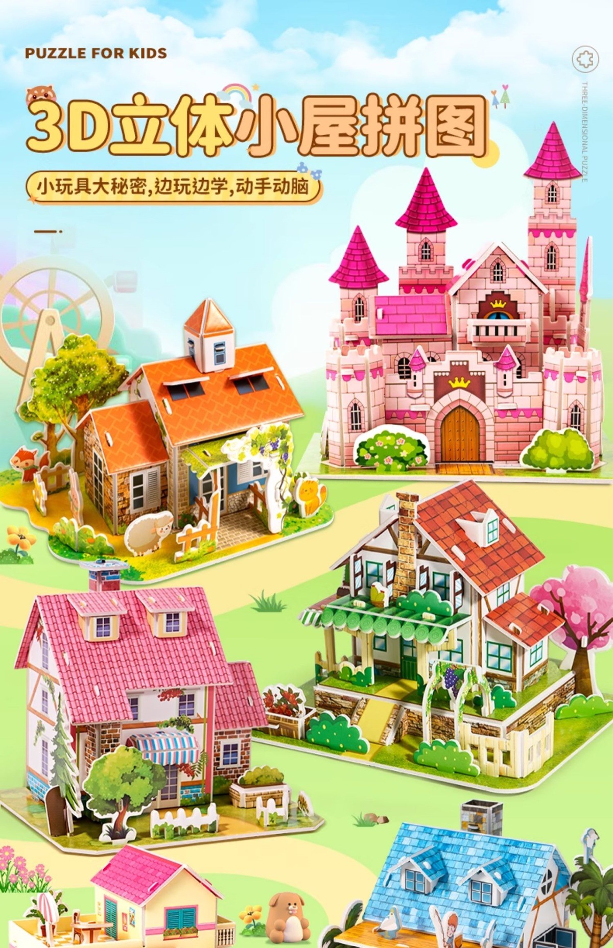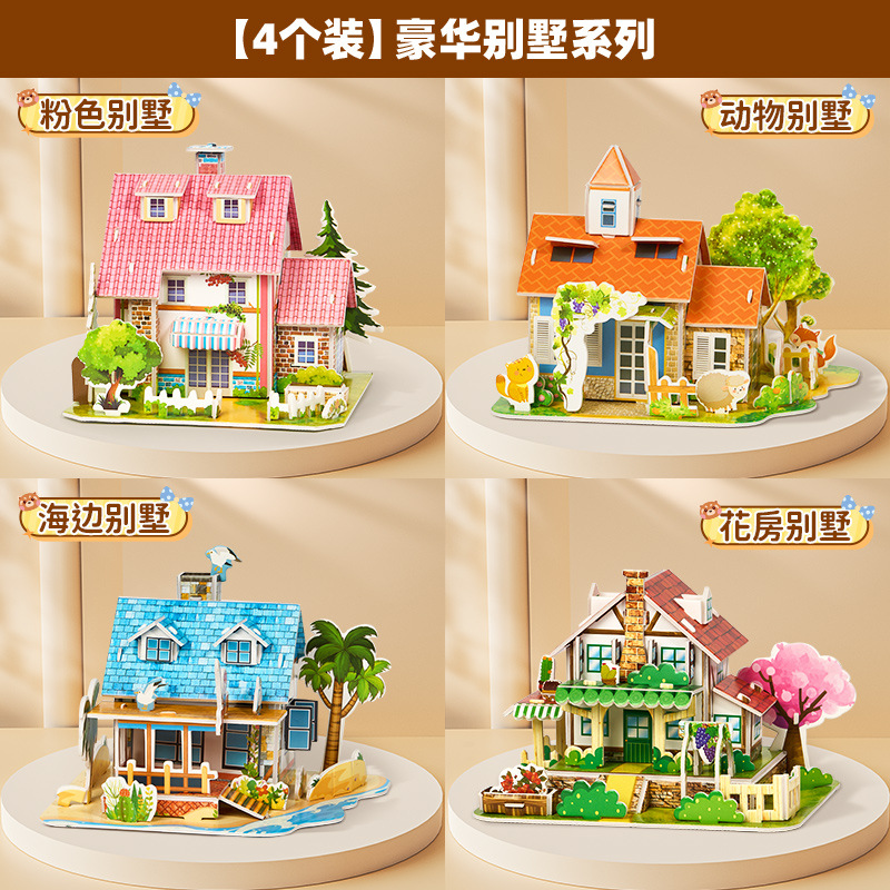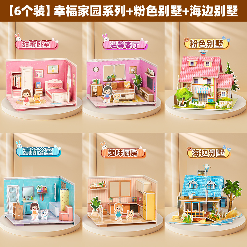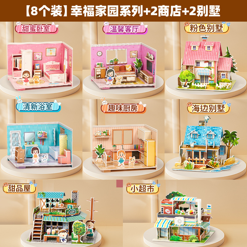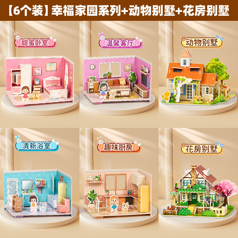 어린이 3D 입체 퍼즐 모델 조립 된 오두막 빌딩 블록 수제 diy 수제 종이 집 6 소녀 교육 장난감스토어 가기