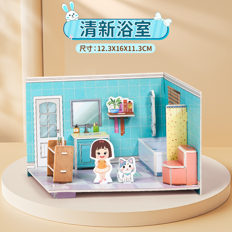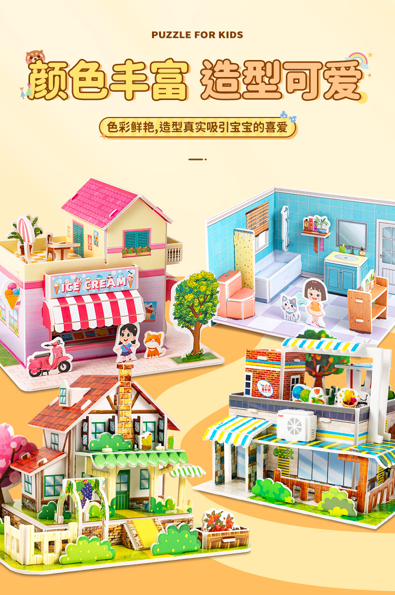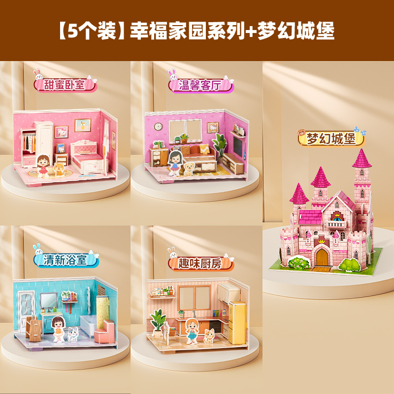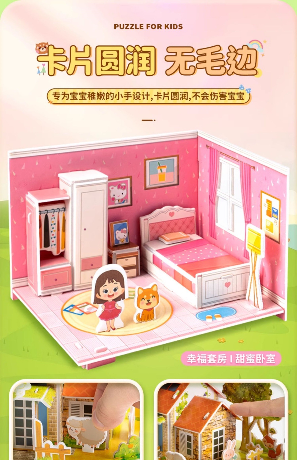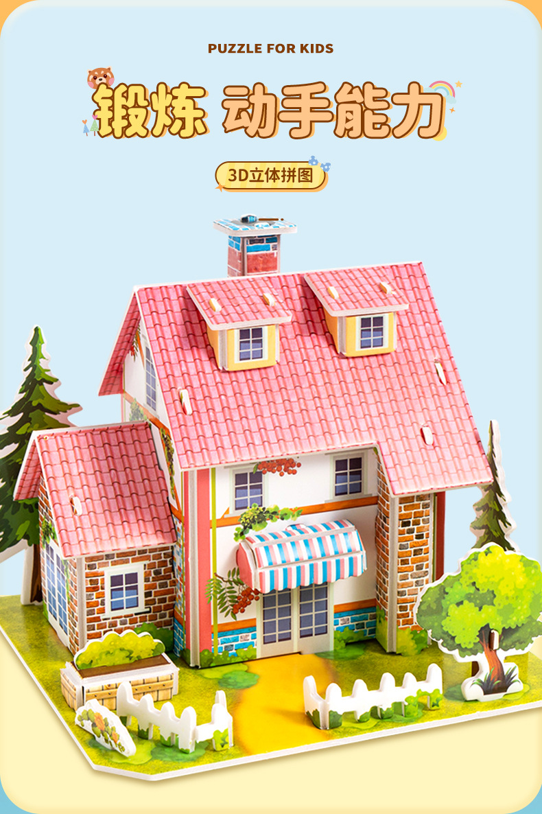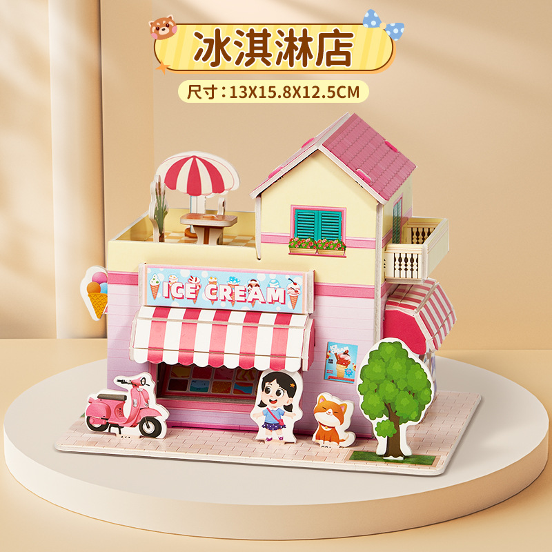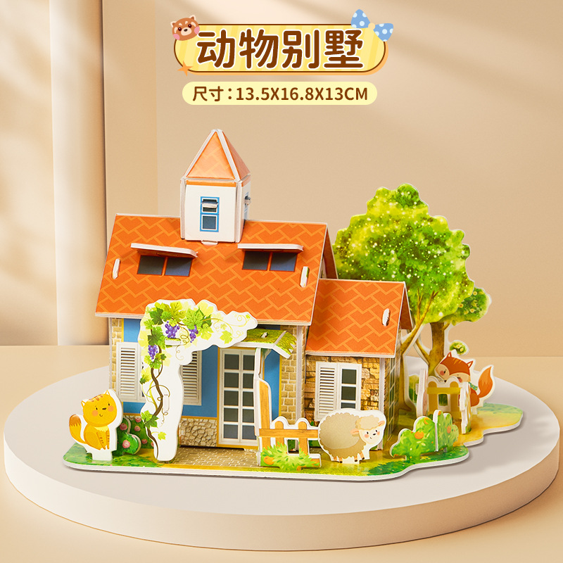 어린이 3D 입체 퍼즐 모델 조립 된 오두막 빌딩 블록 수제 diy 수제 종이 집 6 소녀 교육 장난감스토어 가기