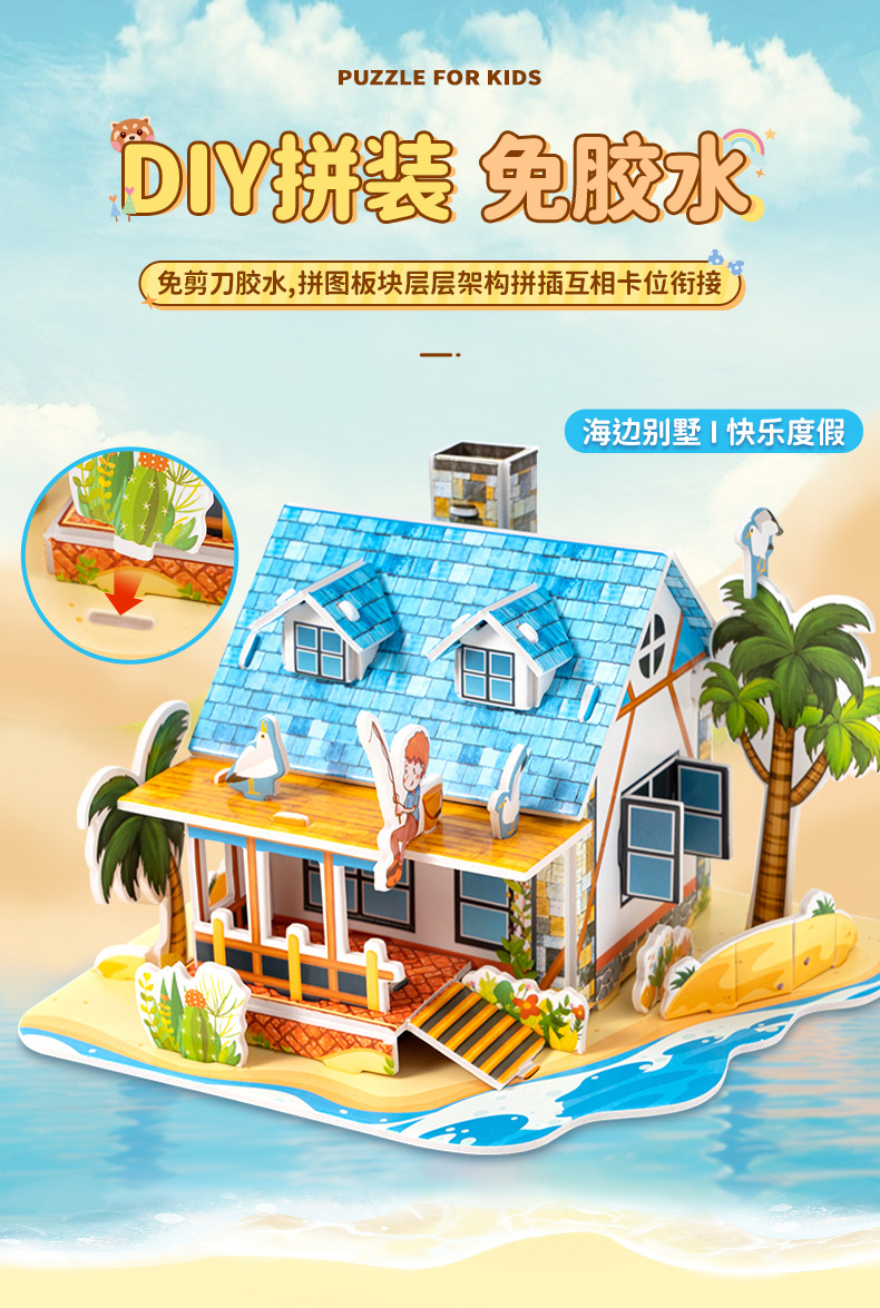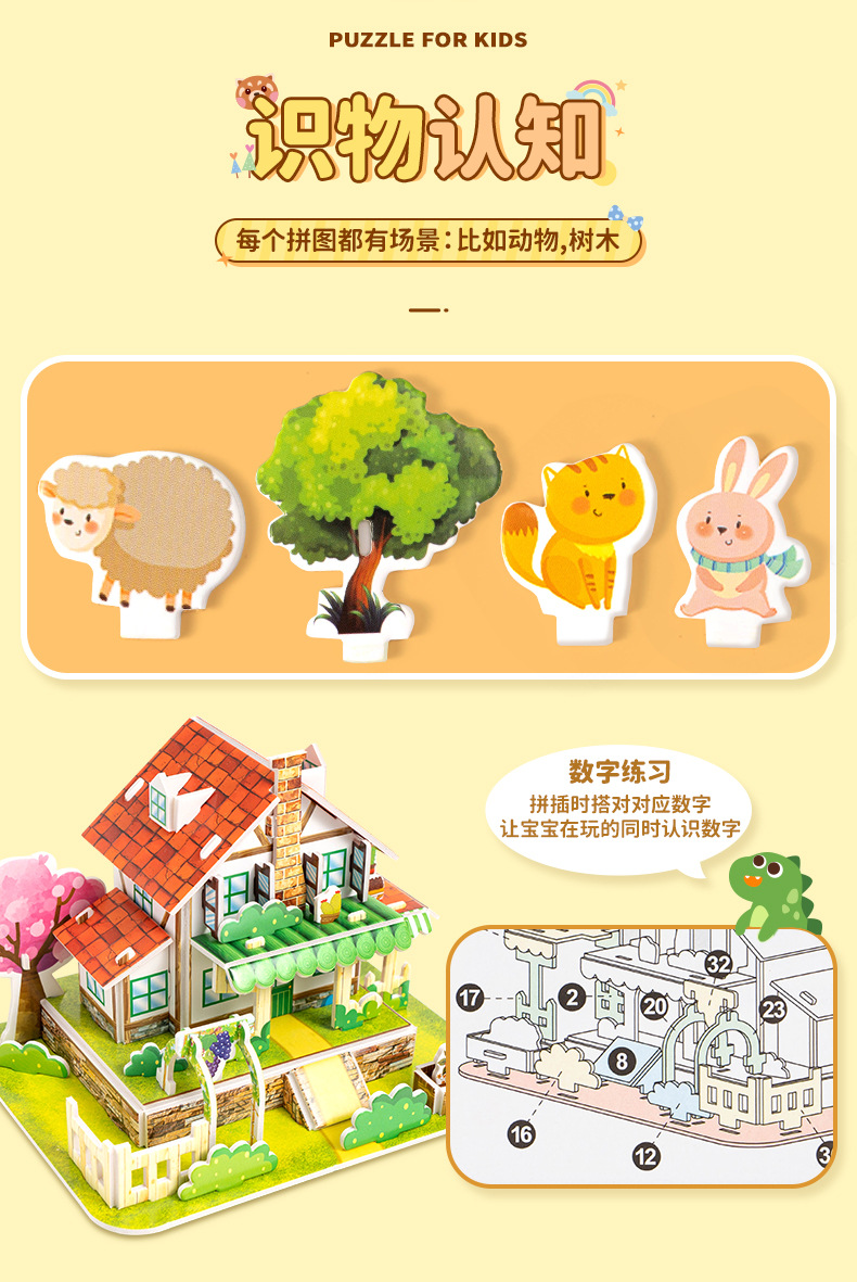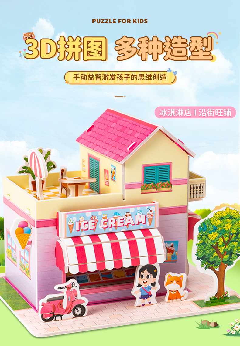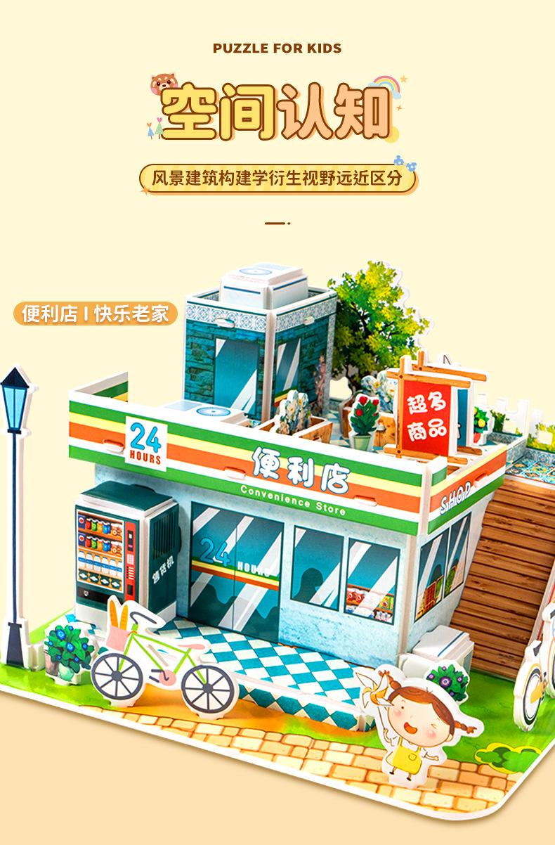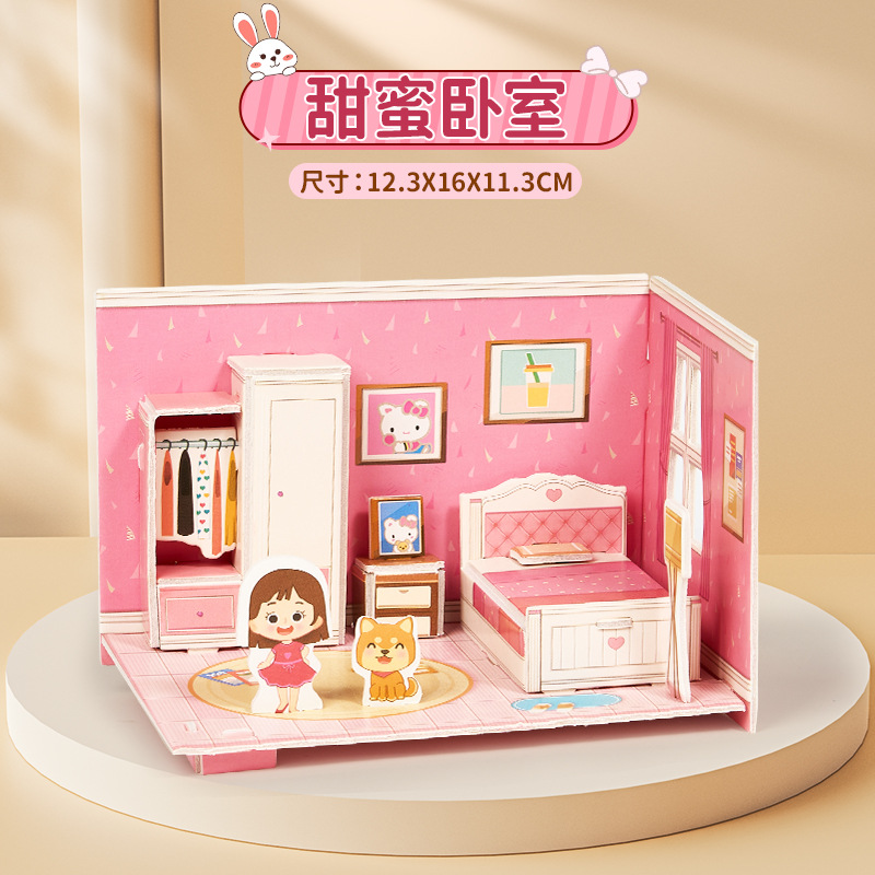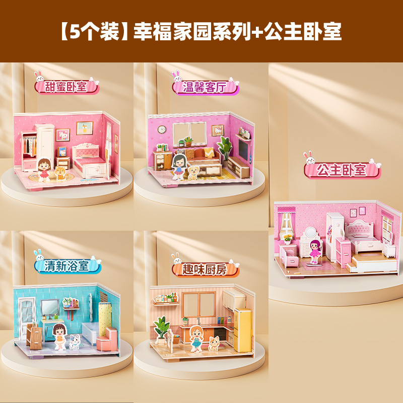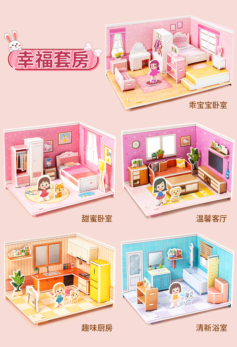 어린이 3D 입체 퍼즐 모델 조립 된 오두막 빌딩 블록 수제 diy 수제 종이 집 6 소녀 교육 장난감스토어 가기