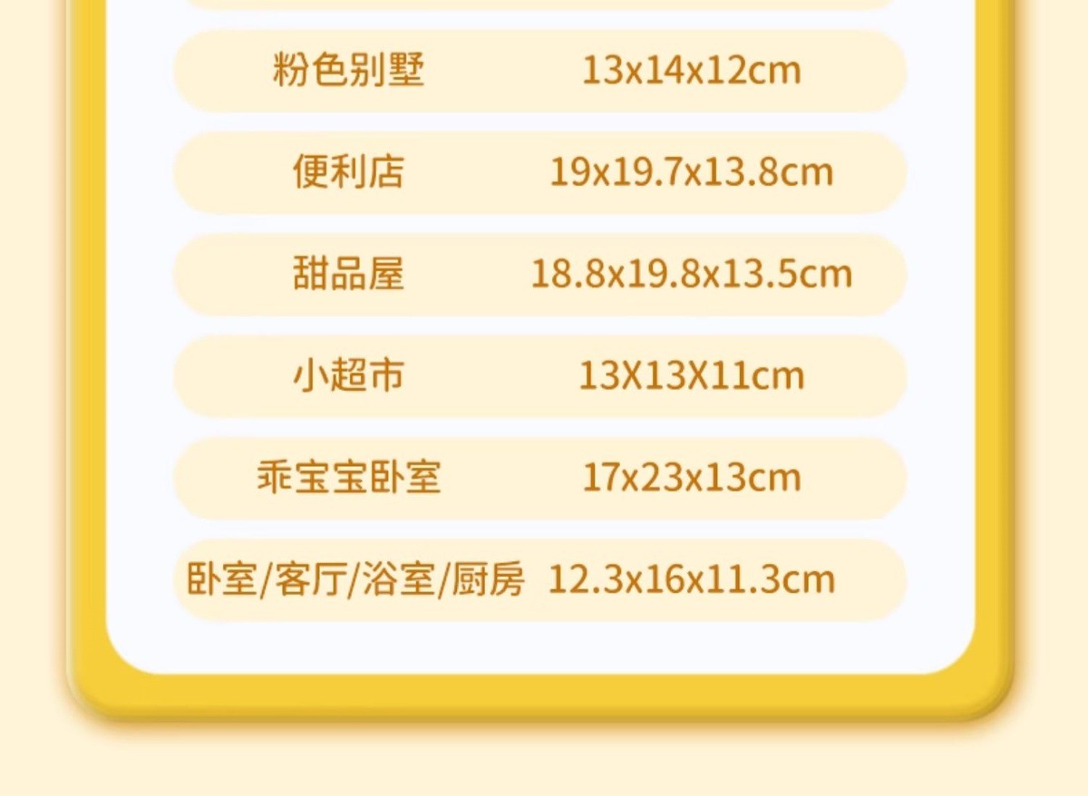 • [총 10가지 스타일] 주택 4개 + 빌라 2개 + 성 1개 + 공주 침실 1개 + 디저트 하우스 + 슈퍼마켓
