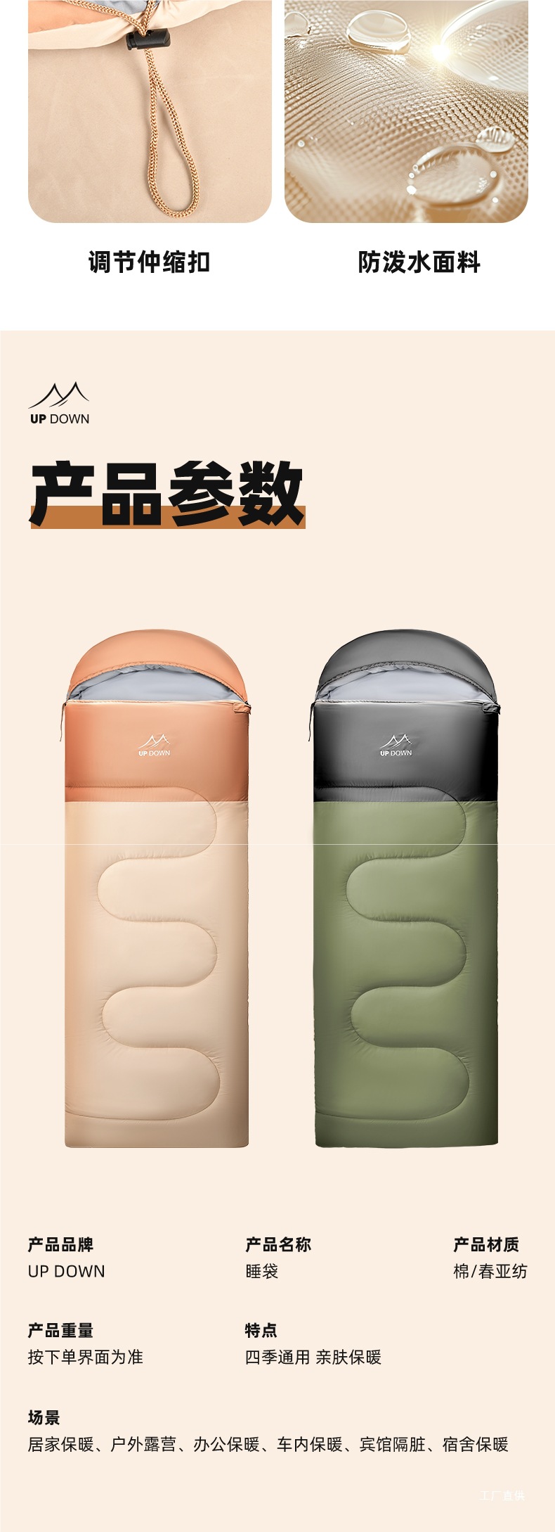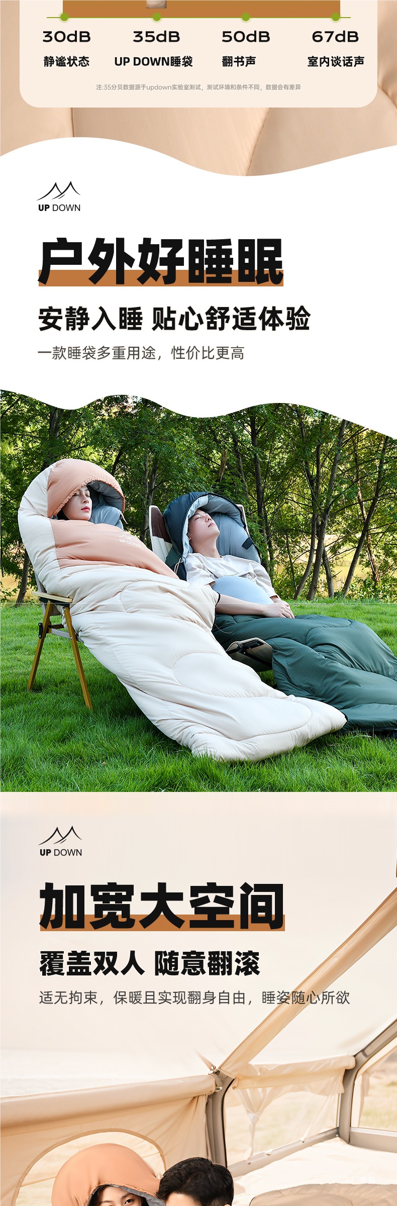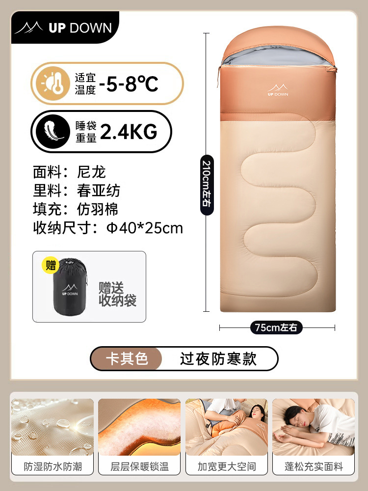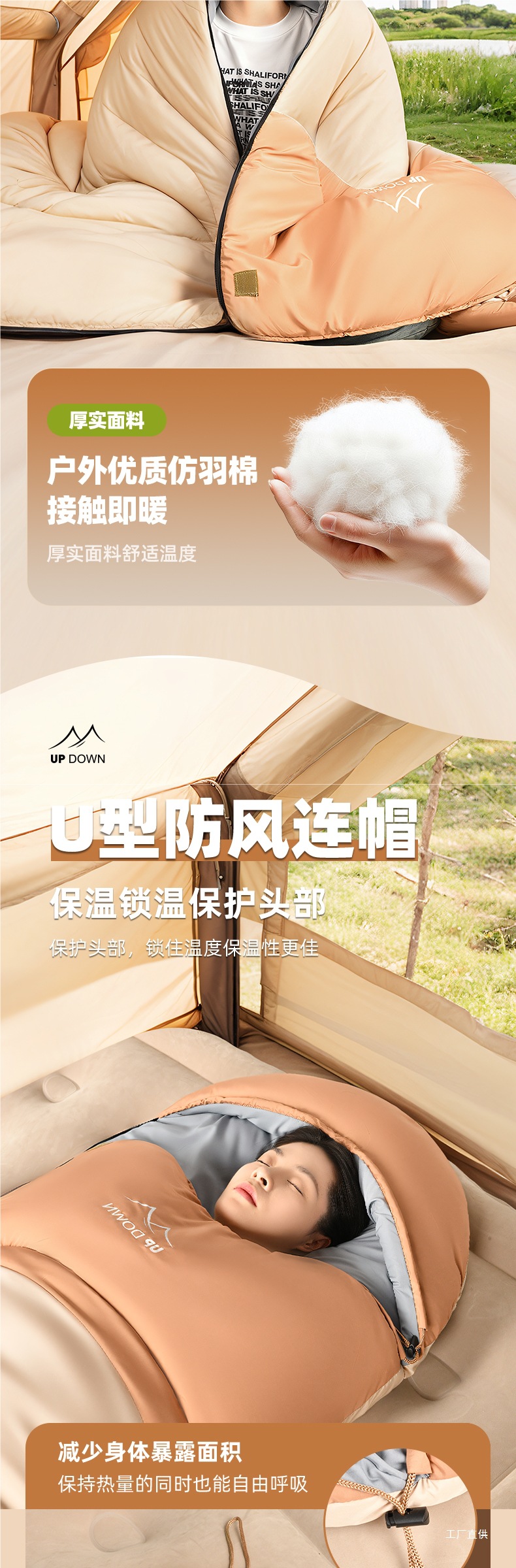 Updown 침낭 성인 야외 캠핑 겨울 두꺼운 방한 사계절 범용 자동차 싱글 오피스 Xianchi