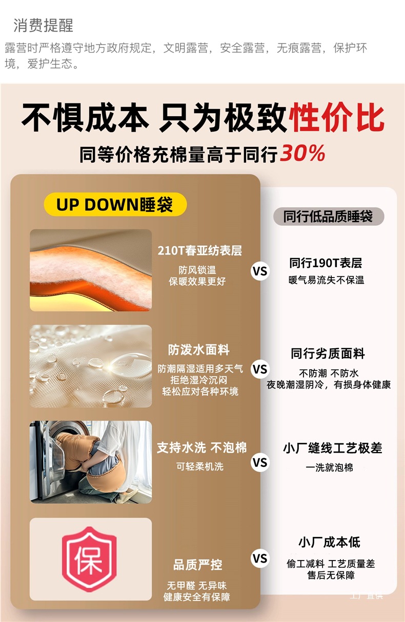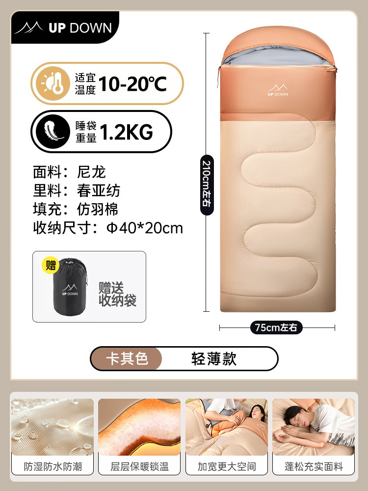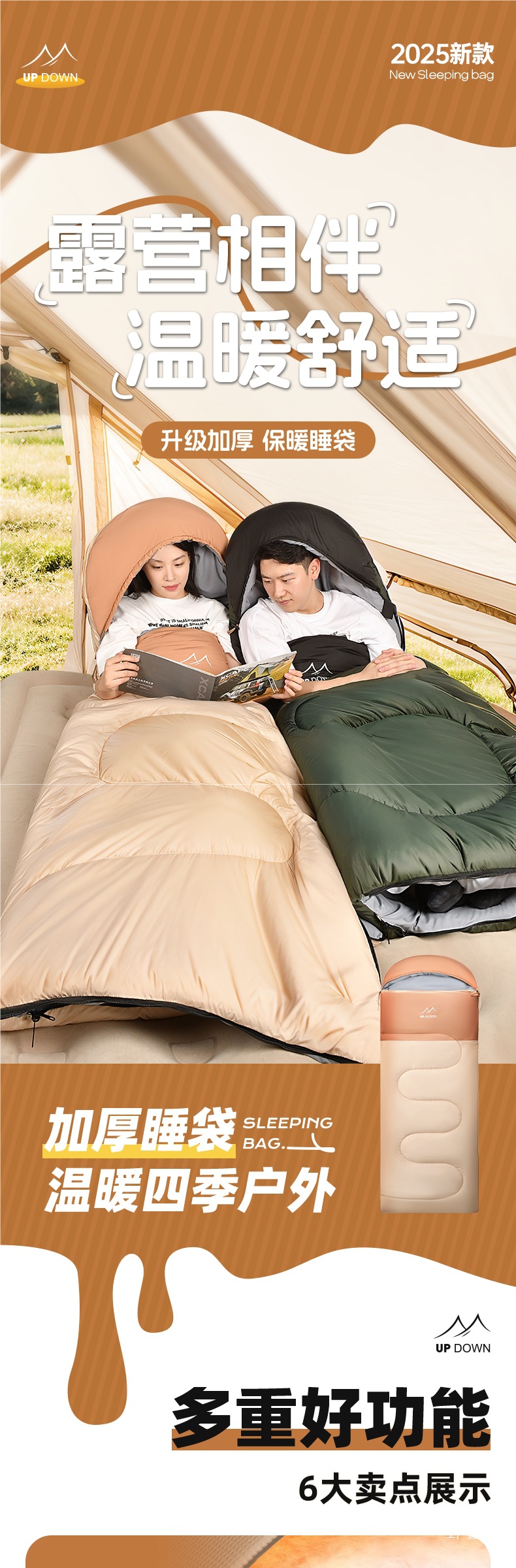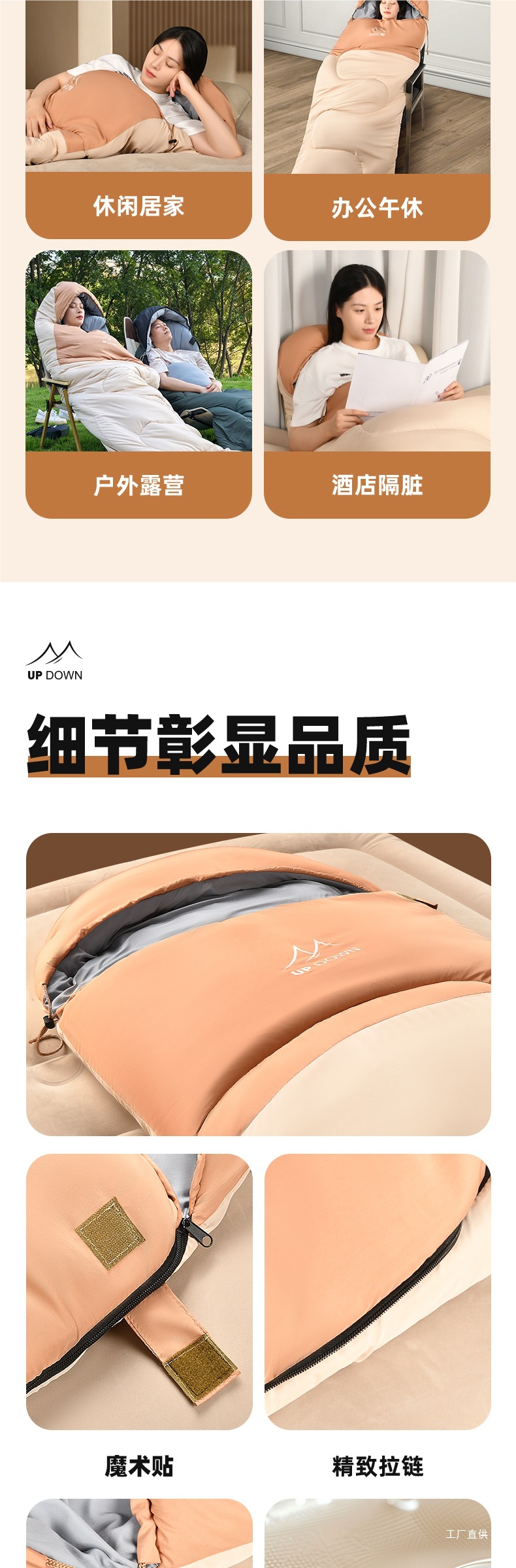 Updown 침낭 성인 야외 캠핑 겨울 두꺼운 방한 사계절 범용 자동차 싱글 오피스 Xianchi