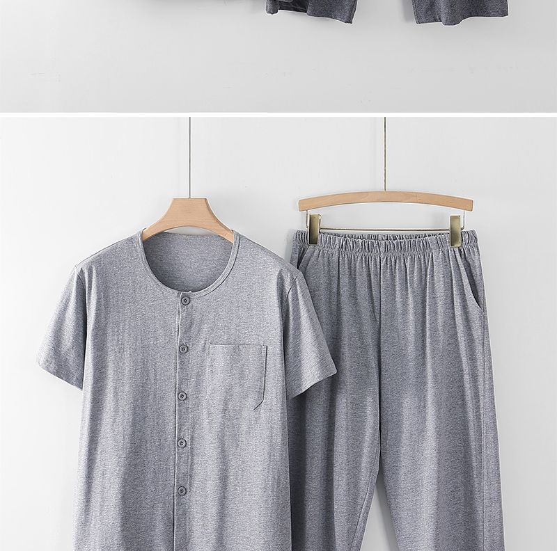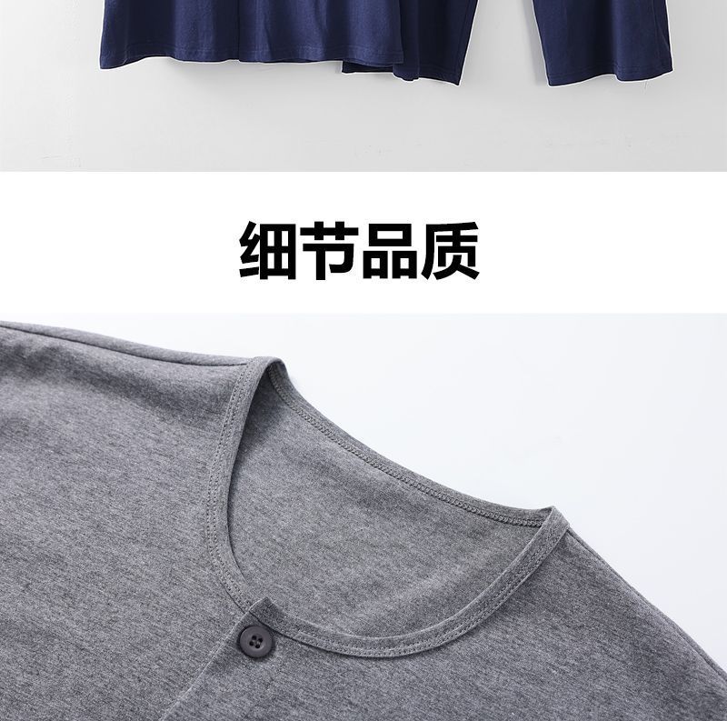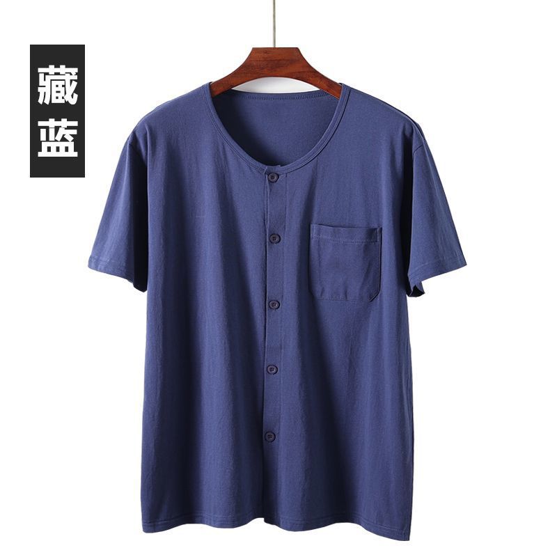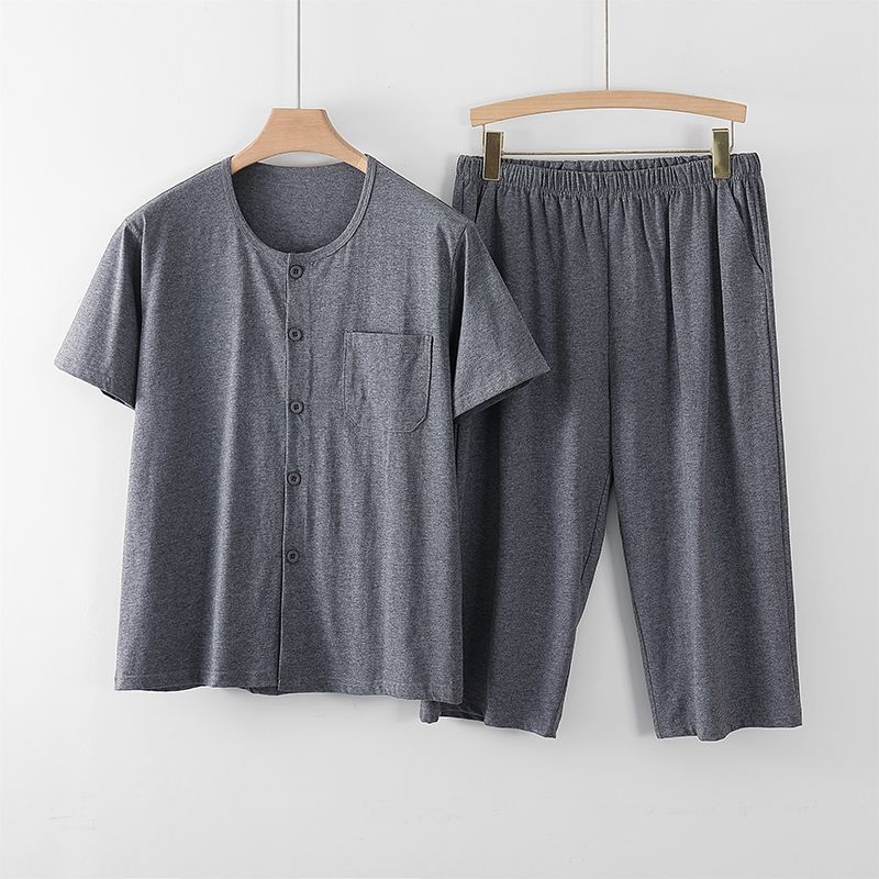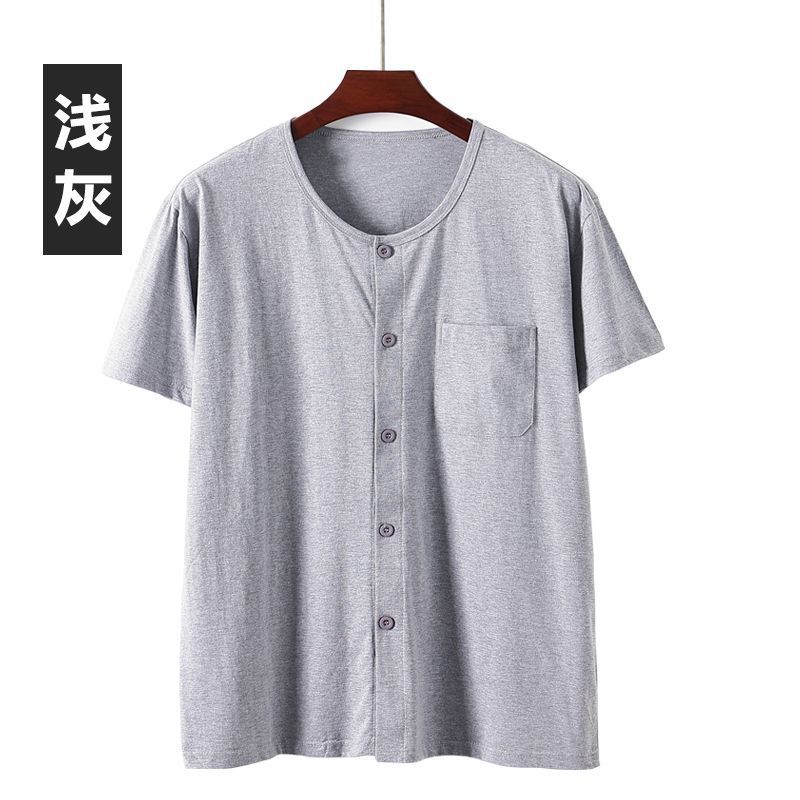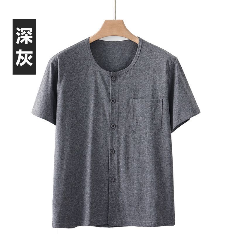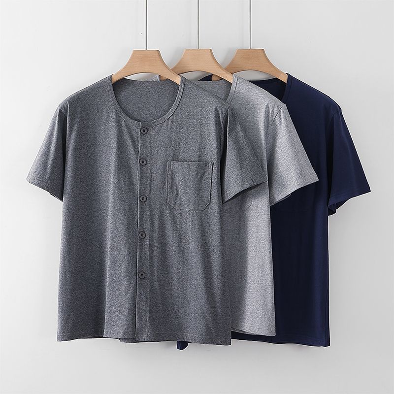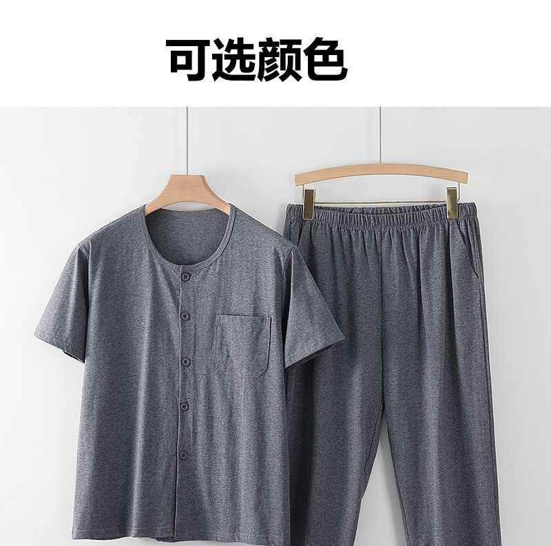 중노년층을 위한 흰색 가디건, 반팔 홈복, 남성용 면 라운드넥, 반팔 언더셔츠, 하이웨이스트 루즈 7부