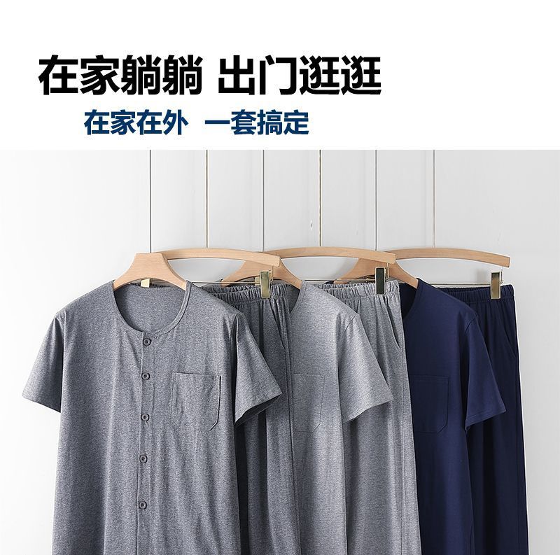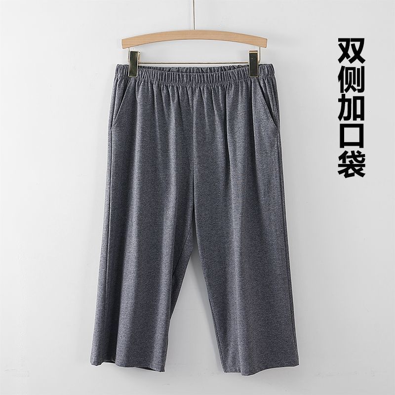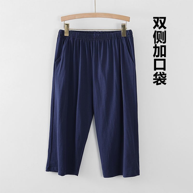 중노년층을 위한 흰색 가디건, 반팔 홈복, 남성용 면 라운드넥, 반팔 언더셔츠, 하이웨이스트 루즈 7부스토어 가기