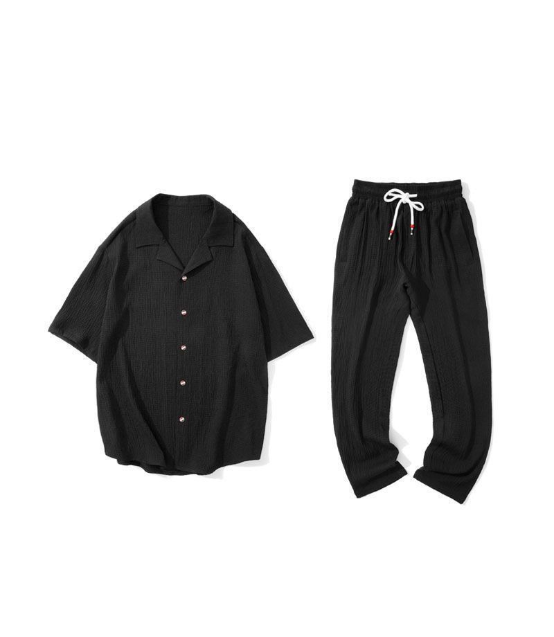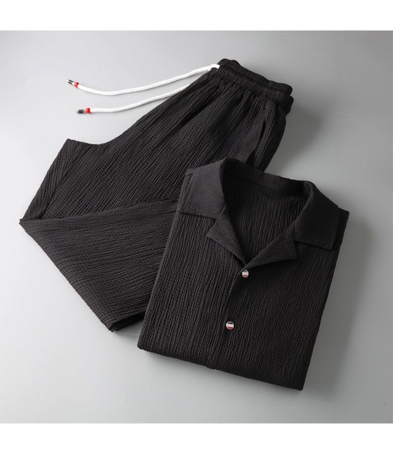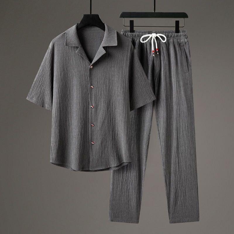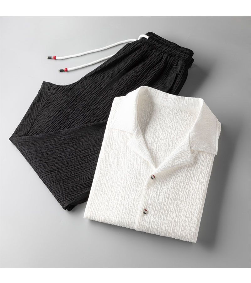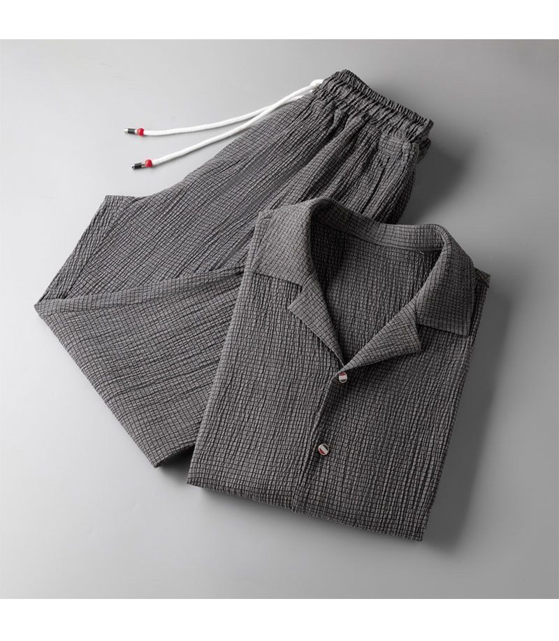 캐주얼 슈트 새로운 남성 여름 2025 스포츠 하이 엔드 중간 소매 중국 스타일 투피스 세트 느슨하고 통기성