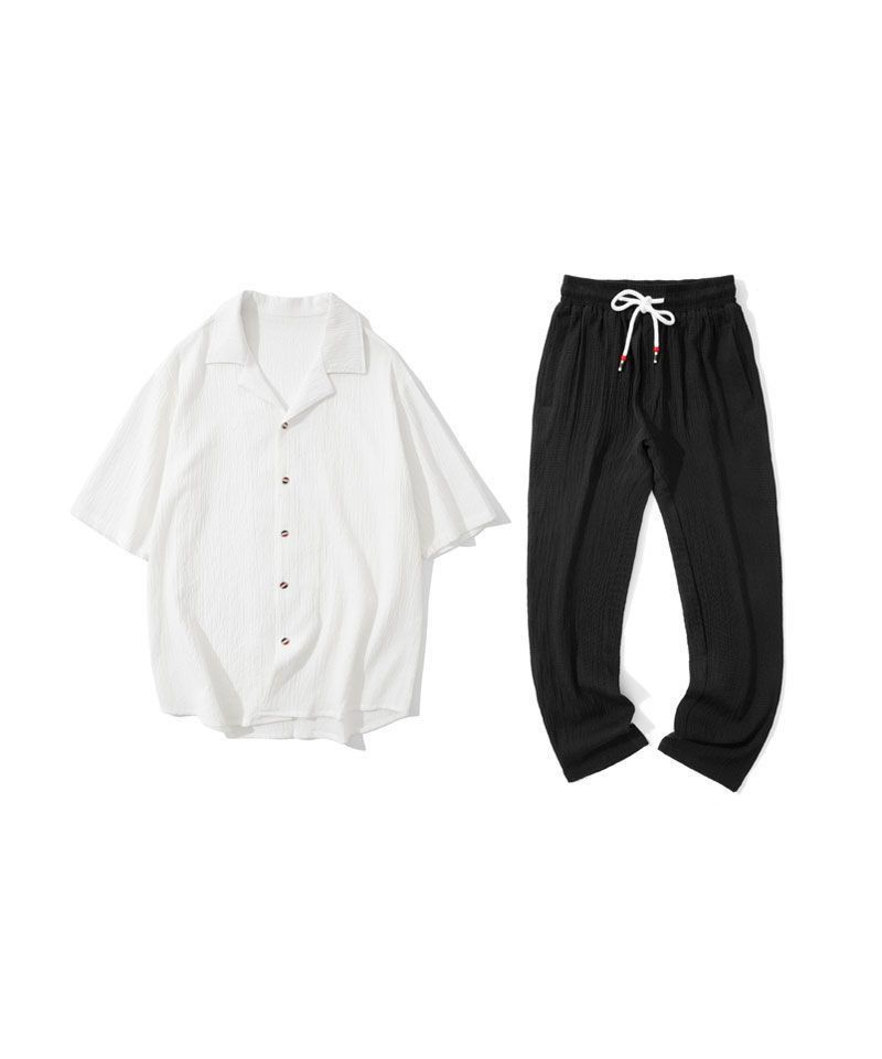• 흰색 상의와 검정색 바지 [상의+바지] 투피스 세트