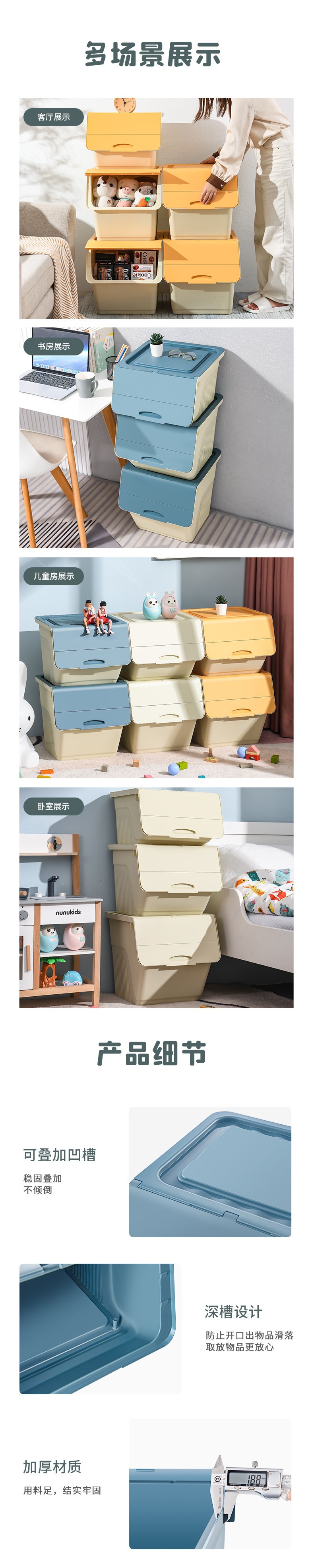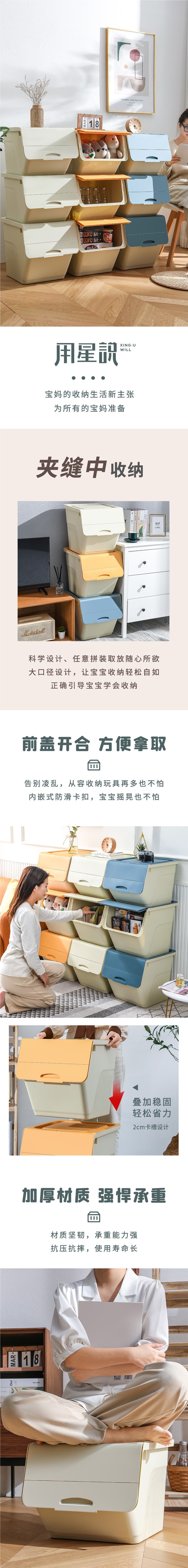 측면 개방형 장난감 보관 상자 플립 탑 가정용 보관 상자 플라스틱 보관 상자 어린이 간식 경사 개방형 보관 상자