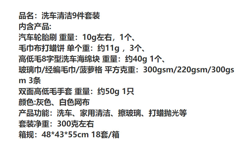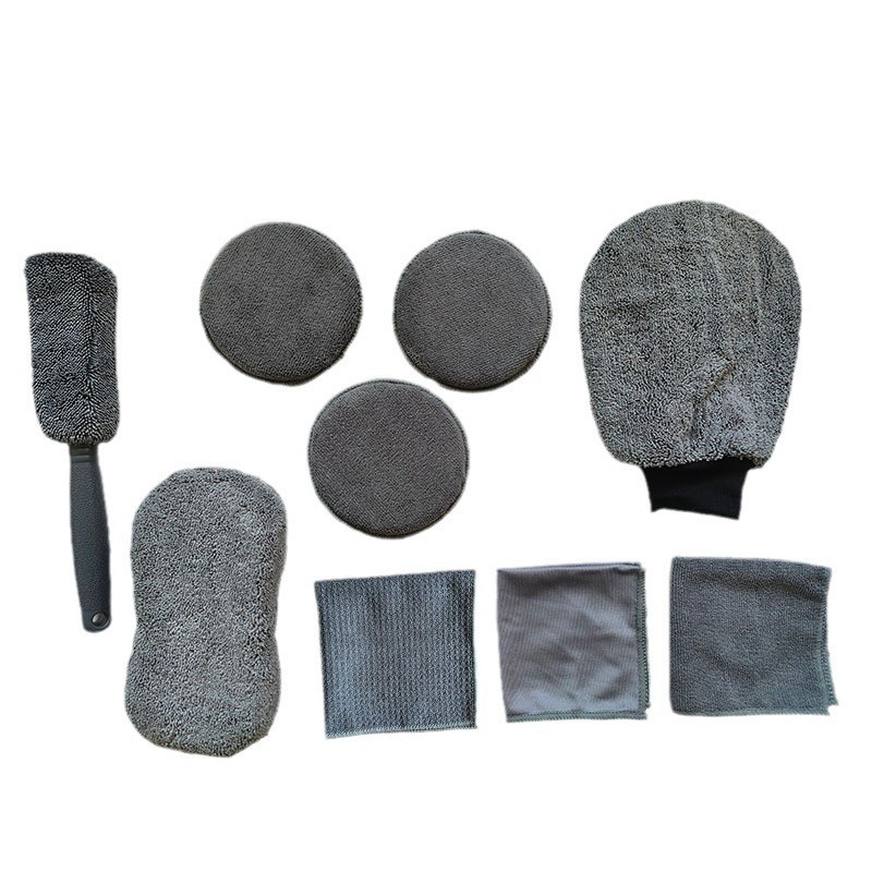 세차 9종세트, 자동차 미용 청소 도구, 장갑, 자동차 닦는 수건, 걸레, 왁싱 스펀지 블록, 휠 브러쉬