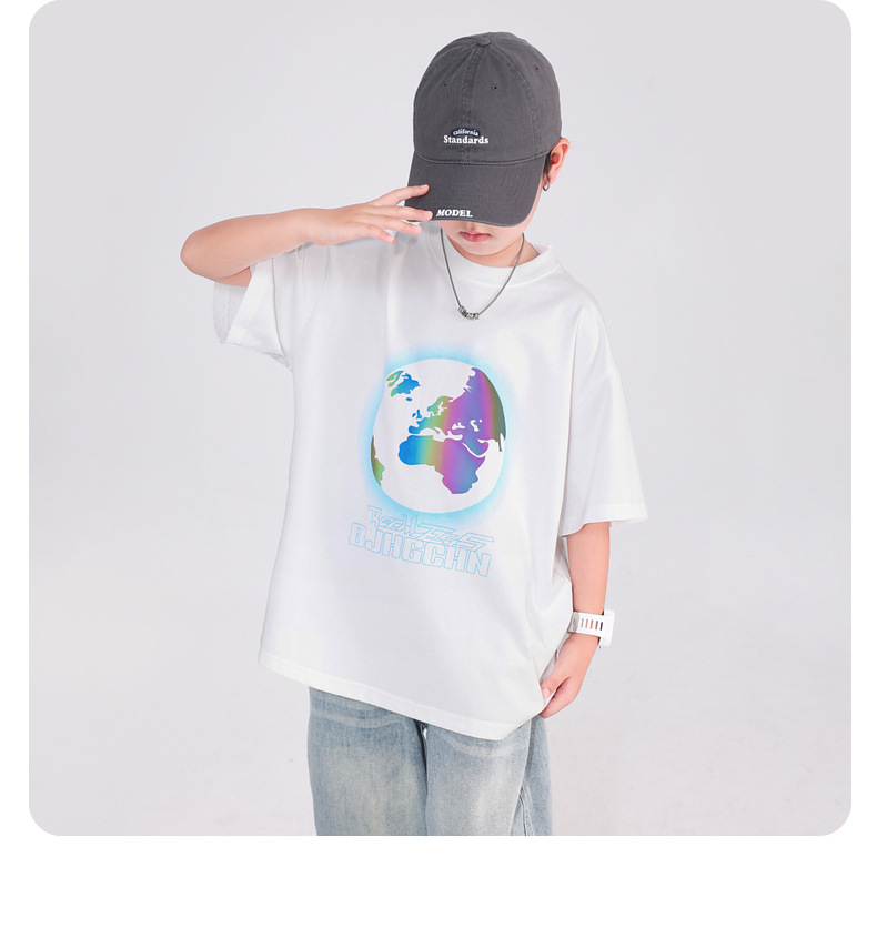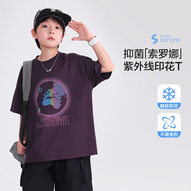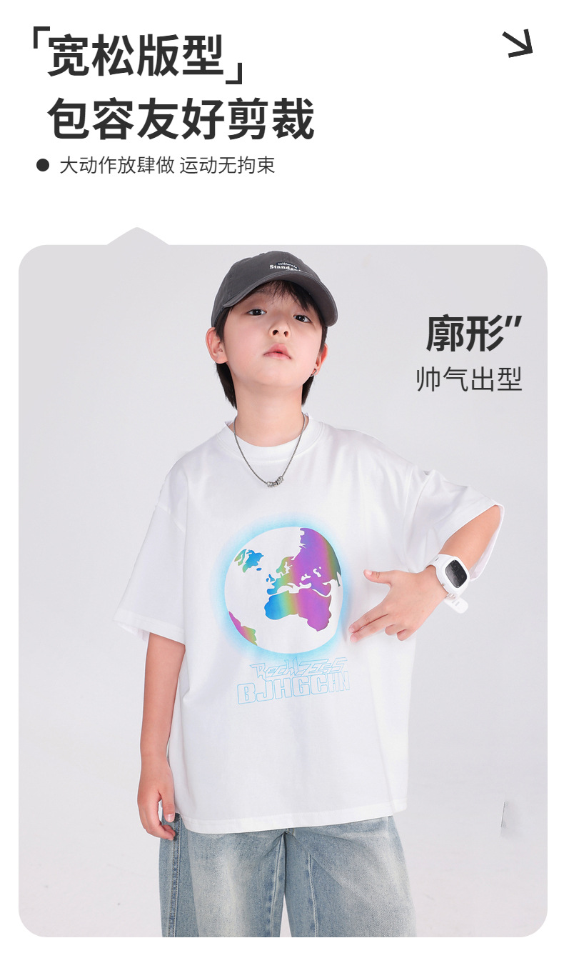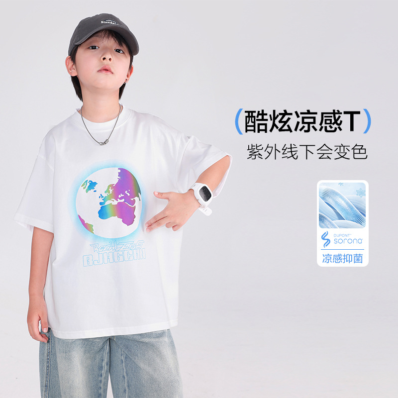 소년 여름 색상 변경 얼음 느낌 반팔 흰색 티셔츠 2025 새로운 청소년 어린이 여름 옷 잘 생긴 반팔상의스토어 가기