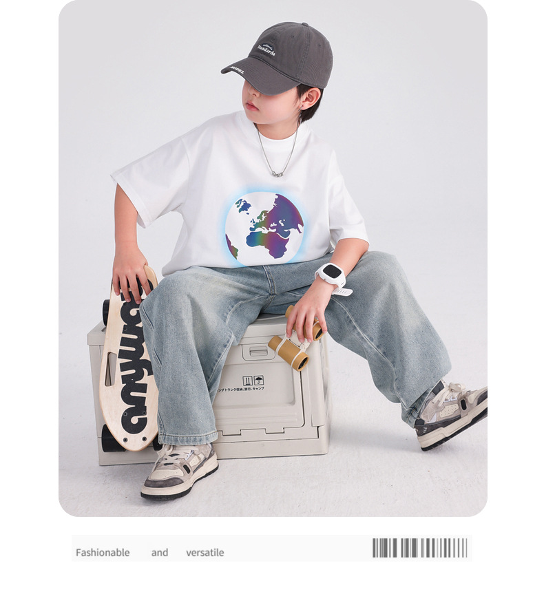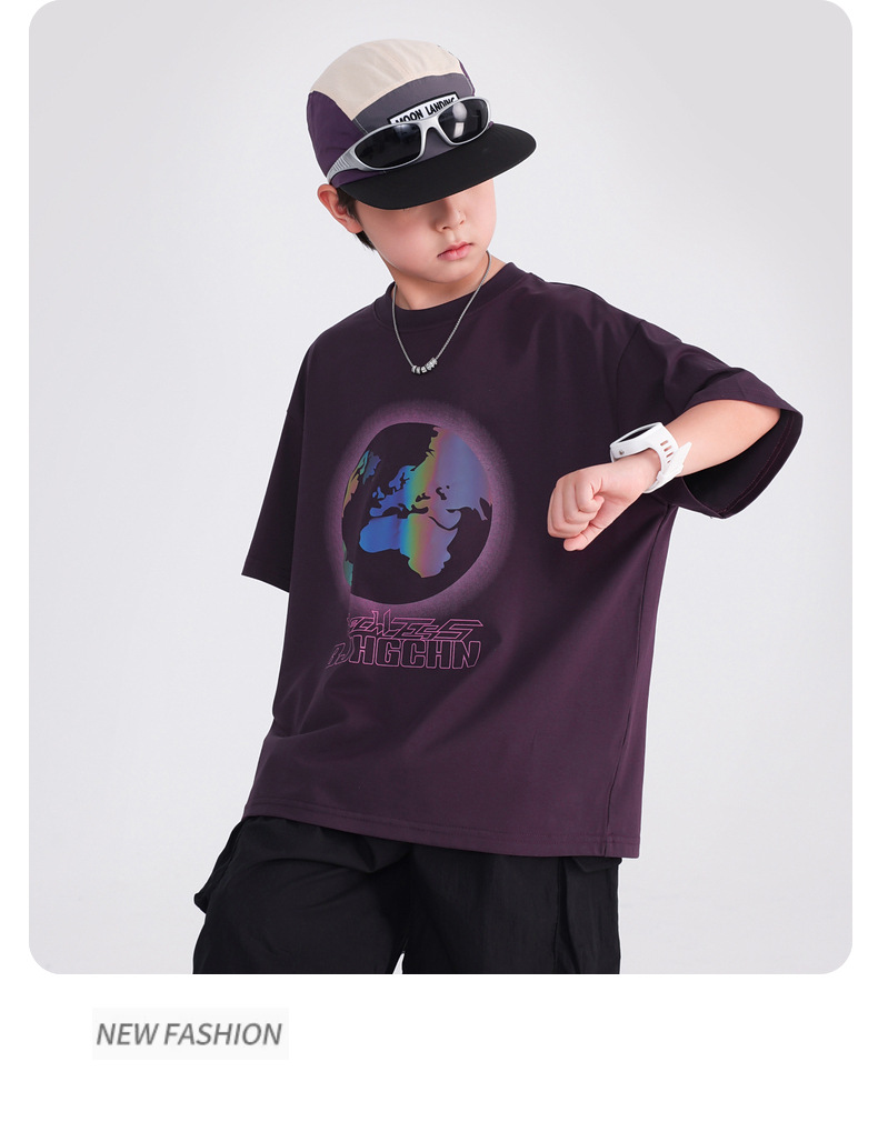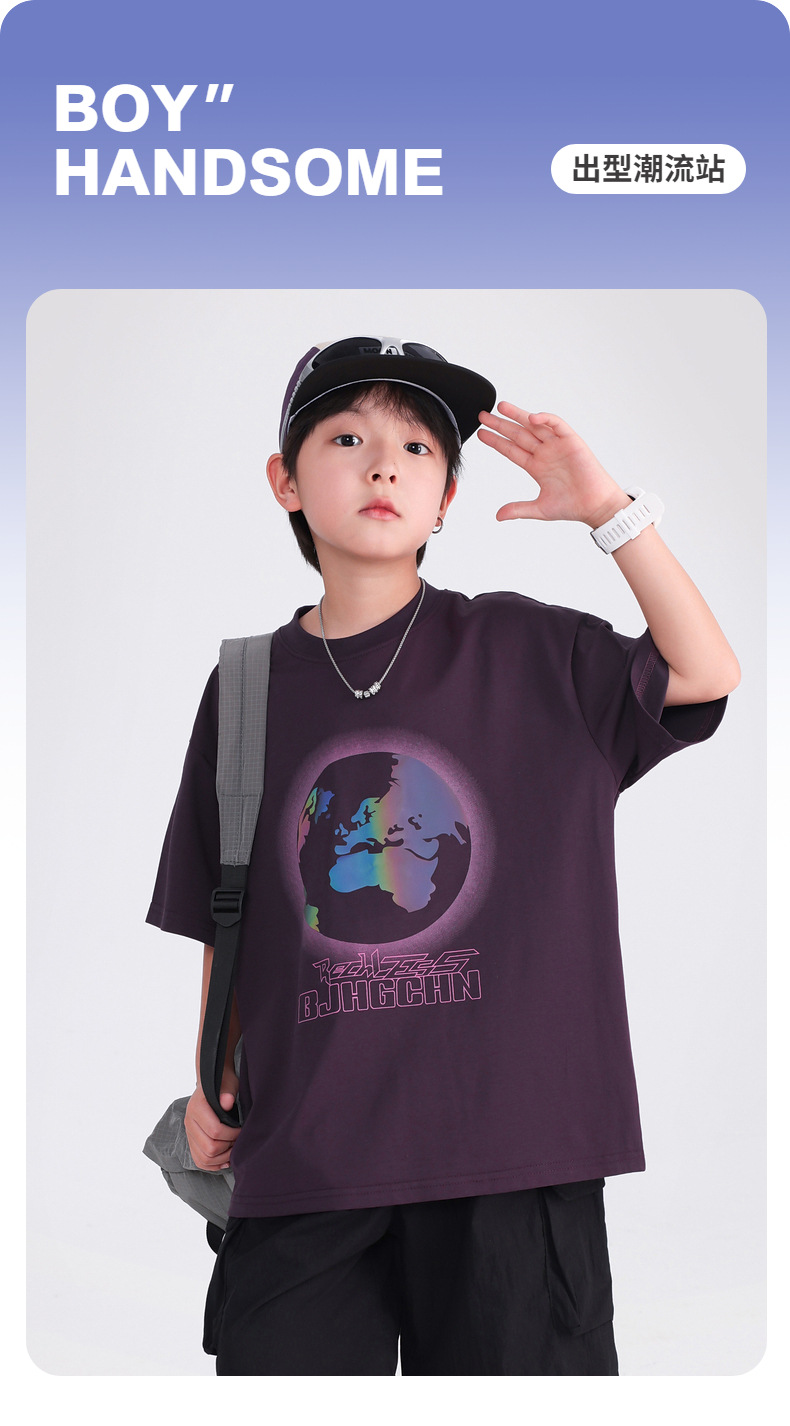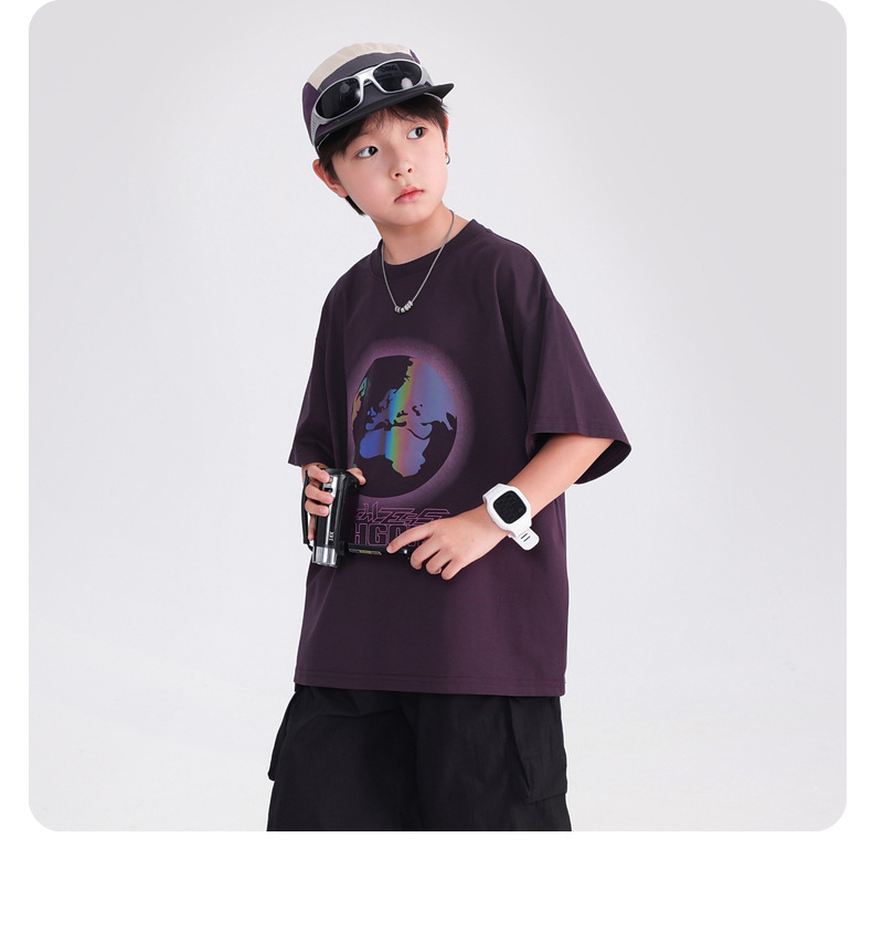 소년 여름 색상 변경 얼음 느낌 반팔 흰색 티셔츠 2025 새로운 청소년 어린이 여름 옷 잘 생긴 반팔상의스토어 가기
