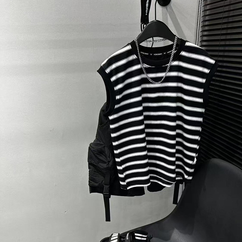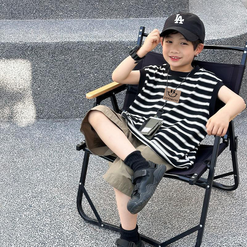 아동 여름 옷 소년 캐주얼 줄무늬 민소매 티셔츠 조끼 새로운 스타일 중대형 어린이 6-12 세 잘 생긴 소년상의스토어 가기
