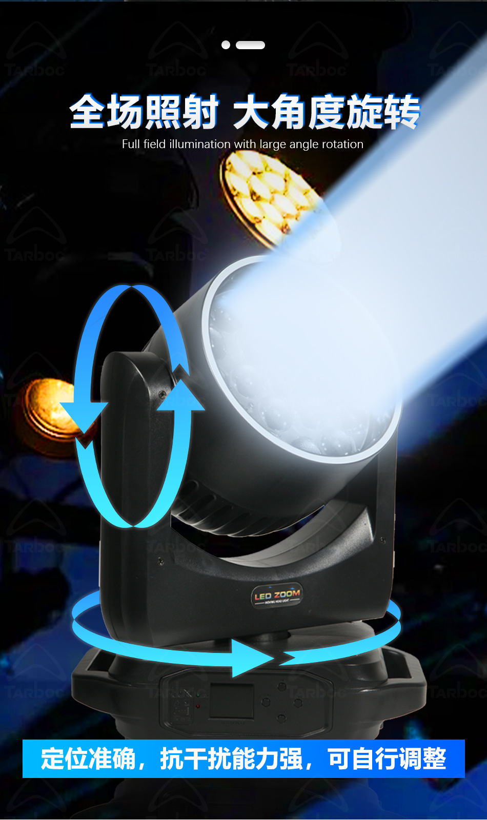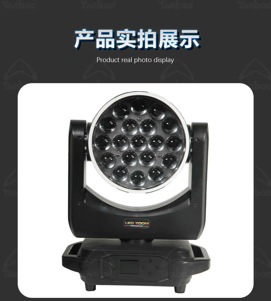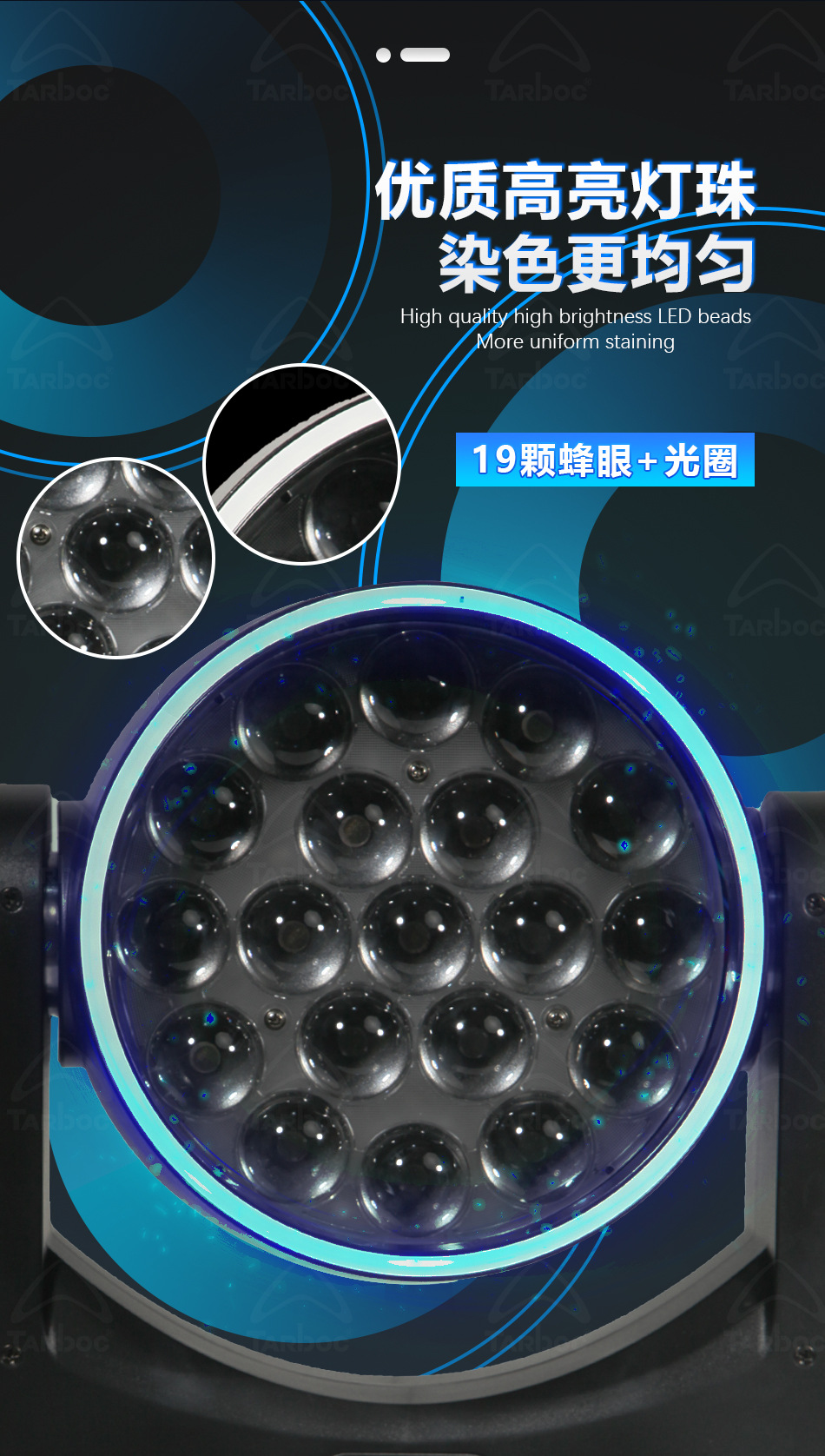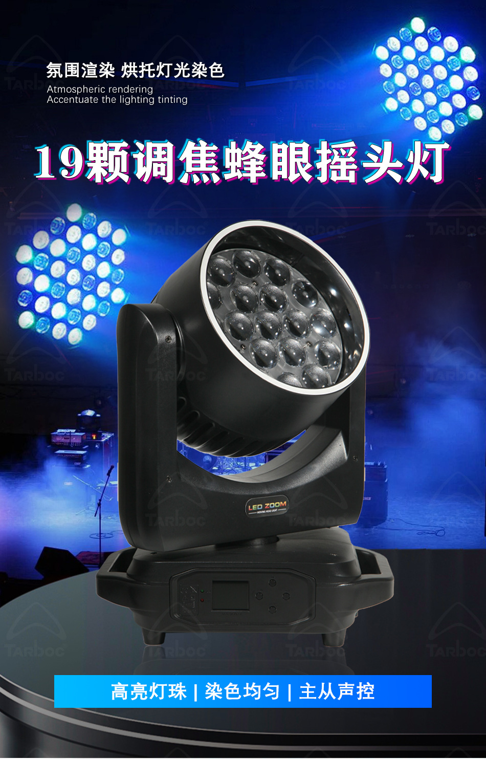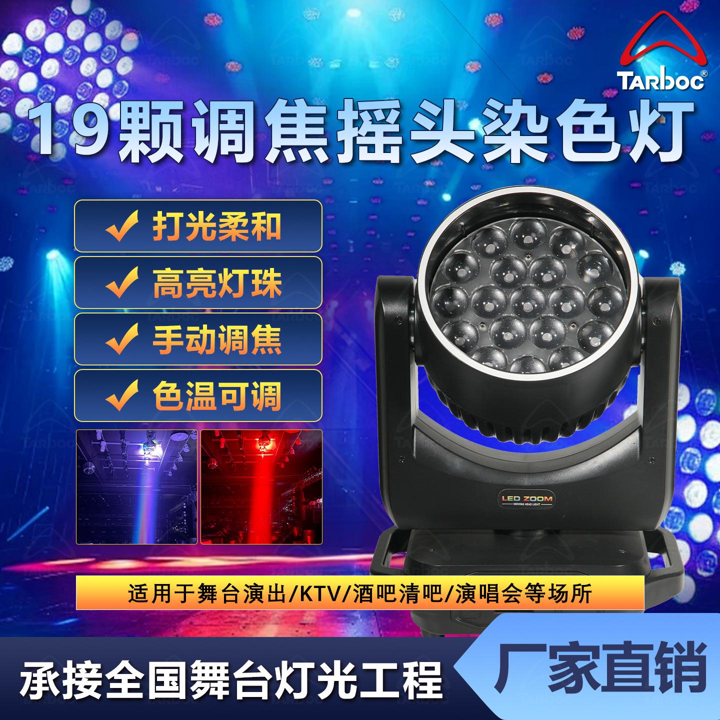 LED 19 포커싱 및 염색 무빙 헤드 라이트(조리개 포함) 무대 공연 풀 컬러 파 라이트 바 웨딩 KTV 분위기 조명스토어 가기