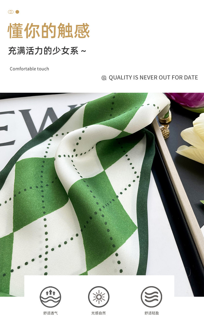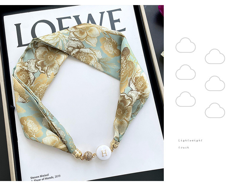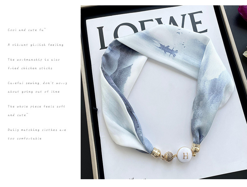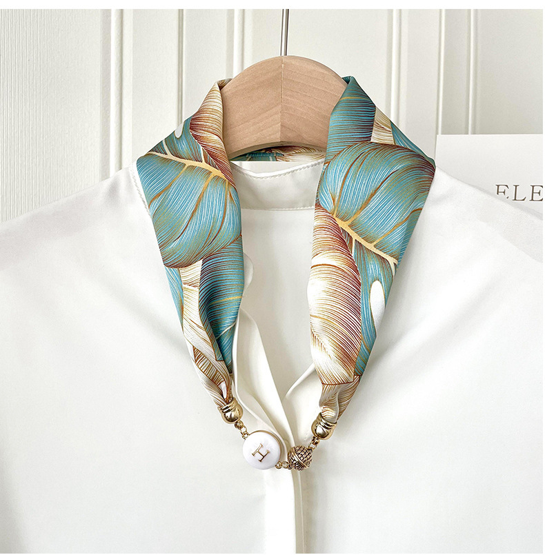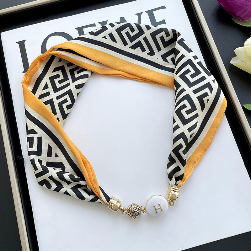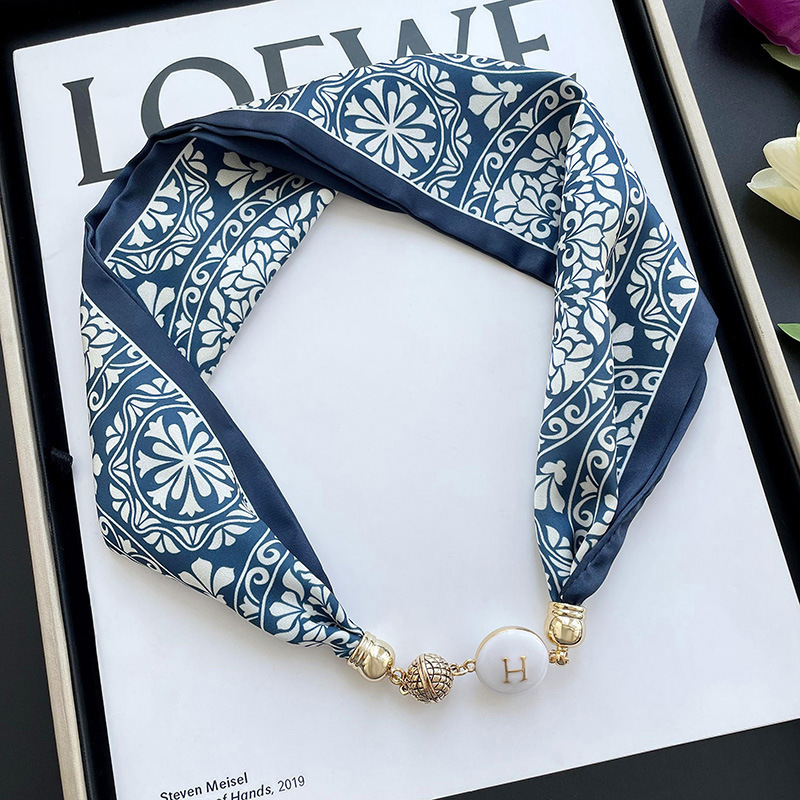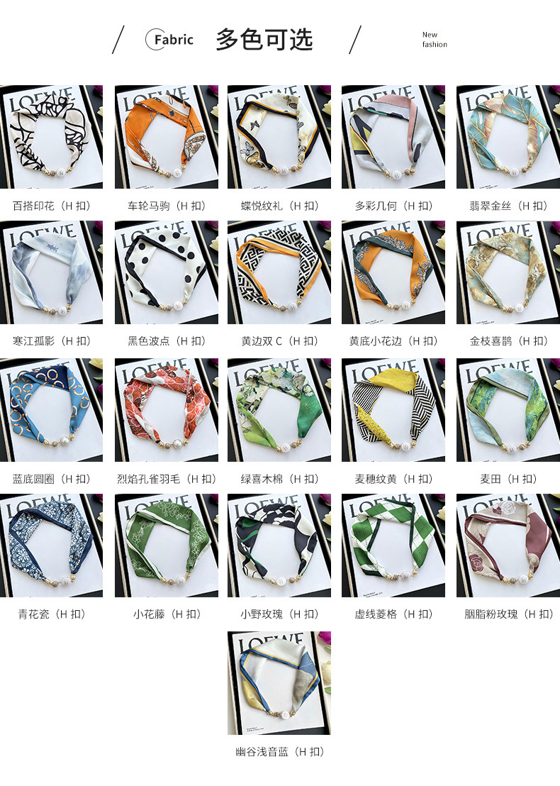 봄, 가을 여성용 게으른 자석 버클 실크 스카프 얇은 목 보호대 자석 버클 실크 스카프 긴 작은 칼라 다용도 진주 목걸이스토어 가기