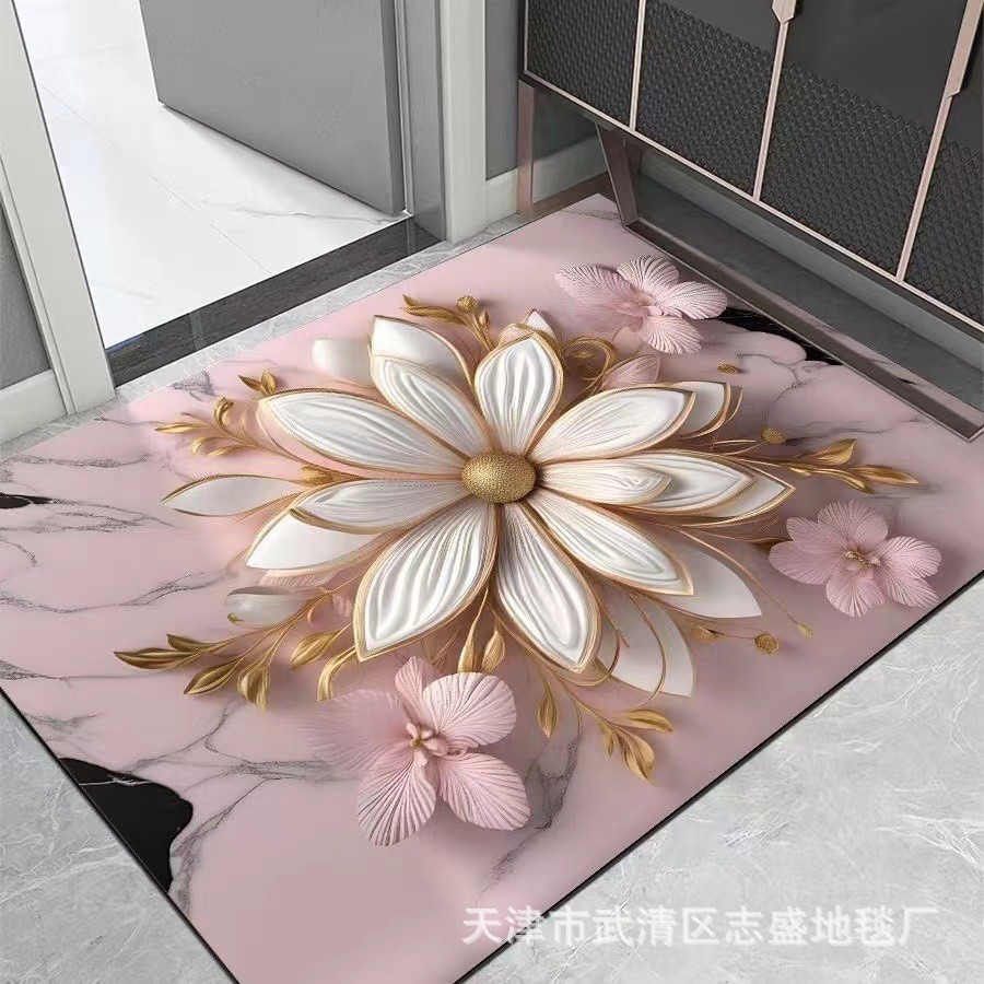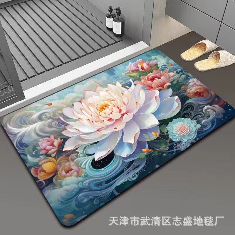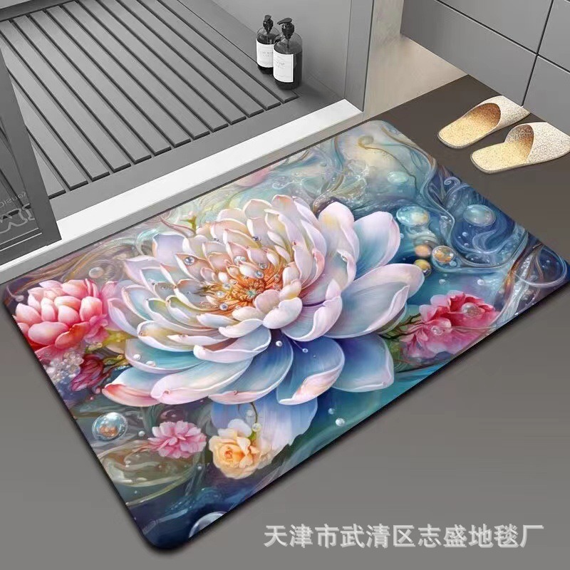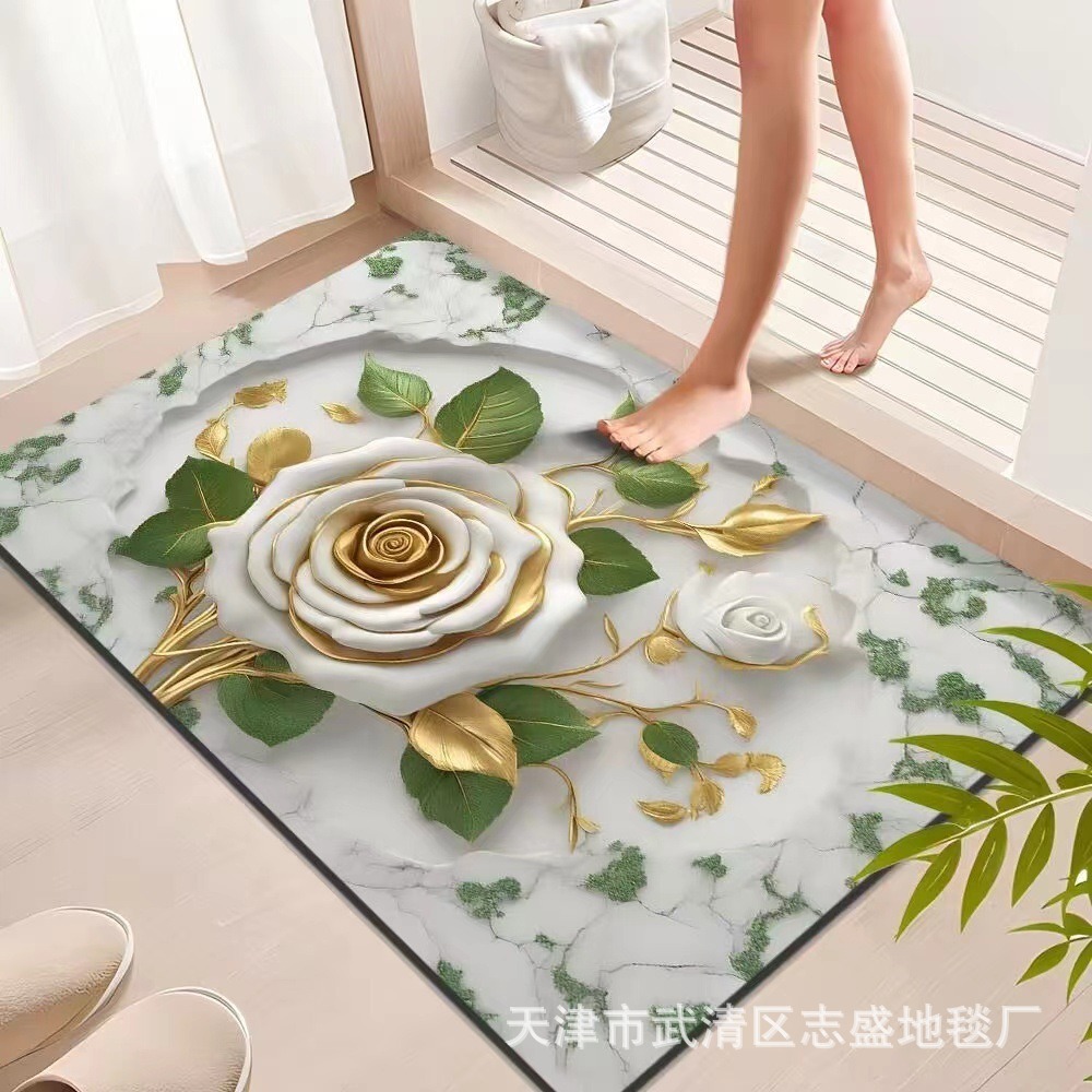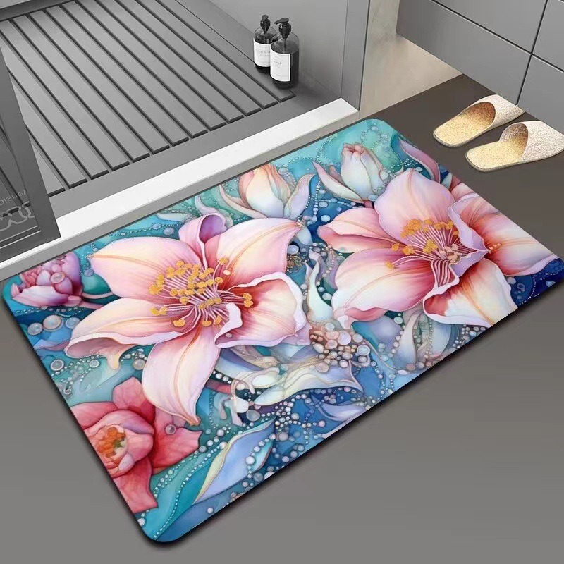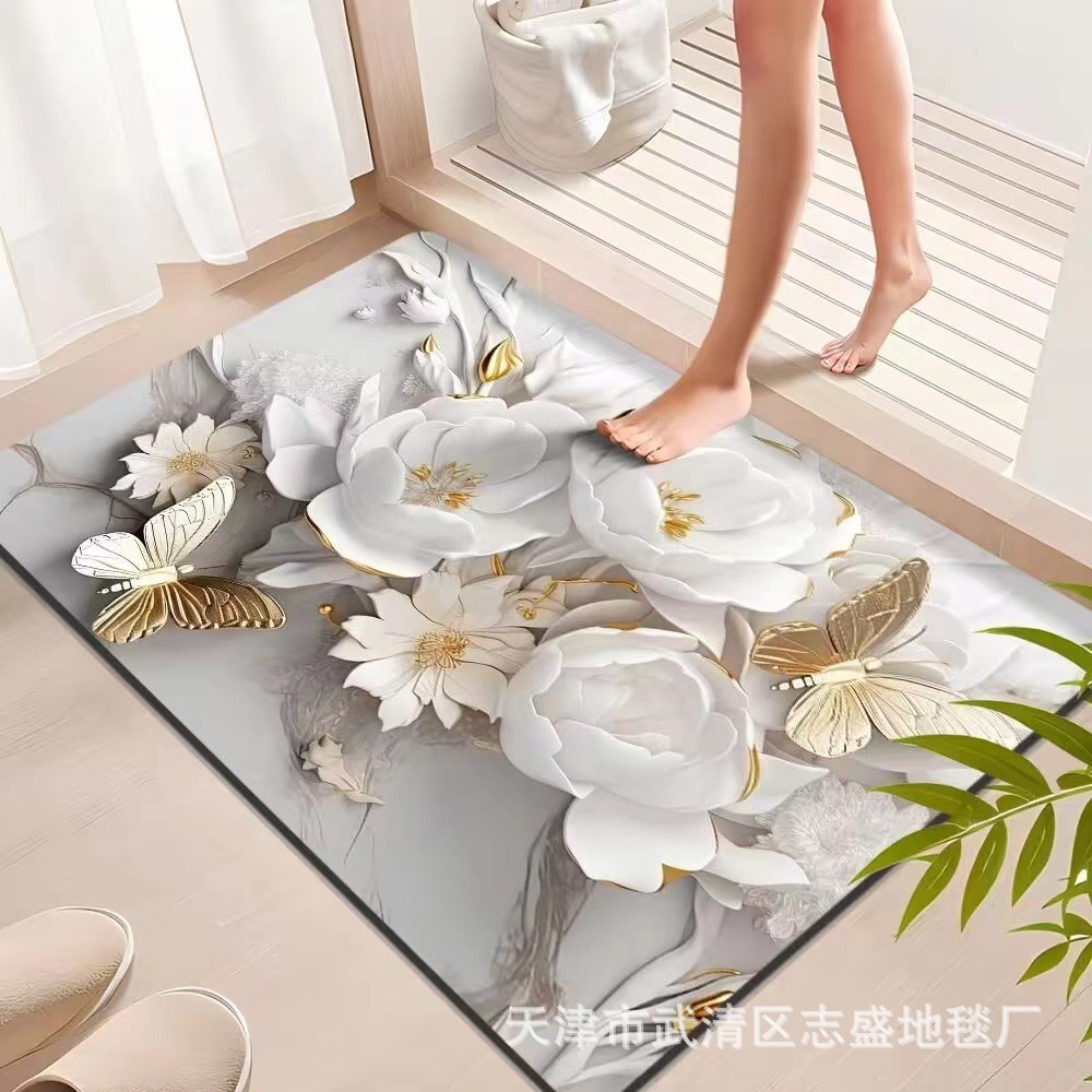 가정용 욕실용 국경 간 꽃 카펫, 방수 및 미끄럼 방지 바닥 매트, 현관 주방, 내마모성 및 관리가 쉬운 바닥 매트 도매 가능