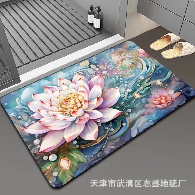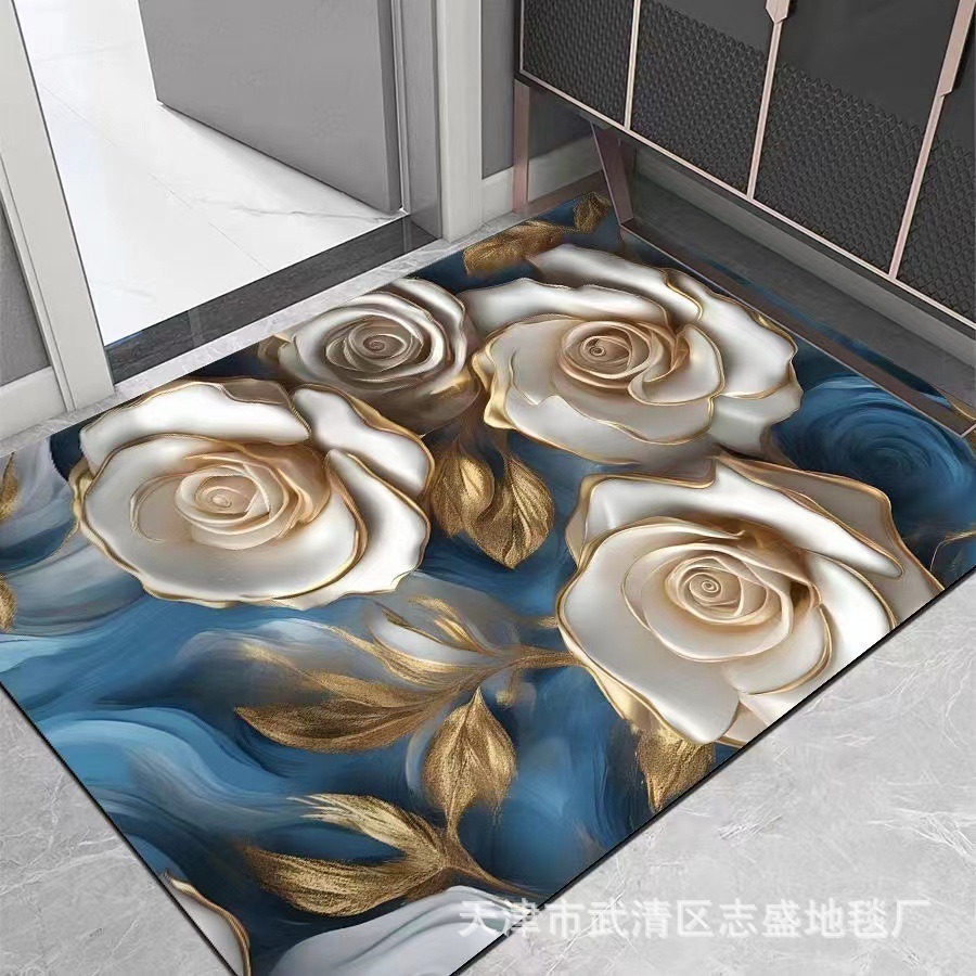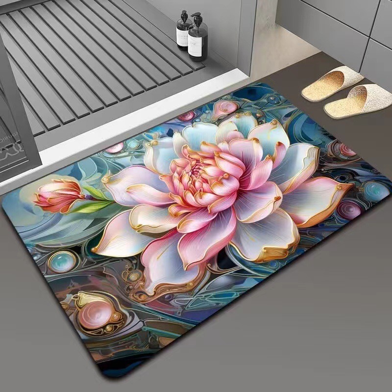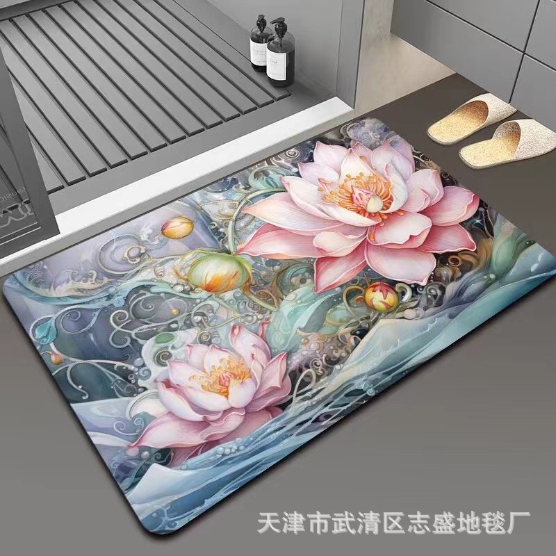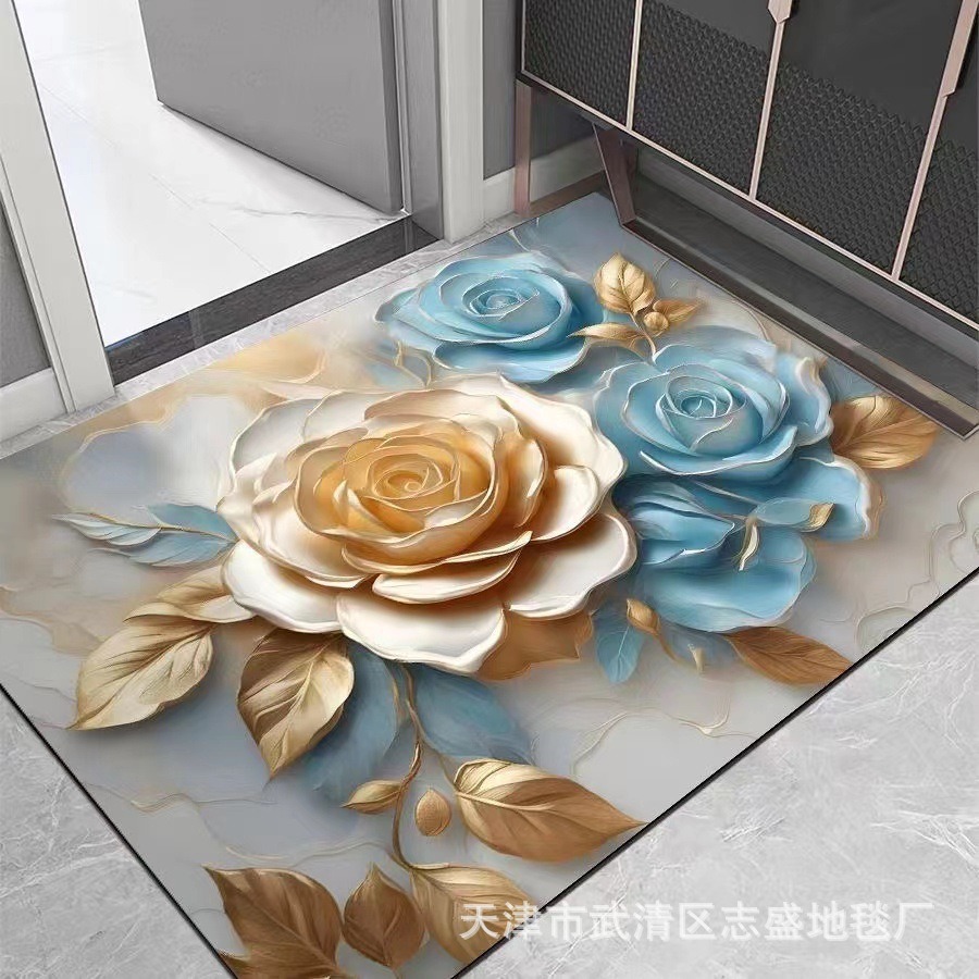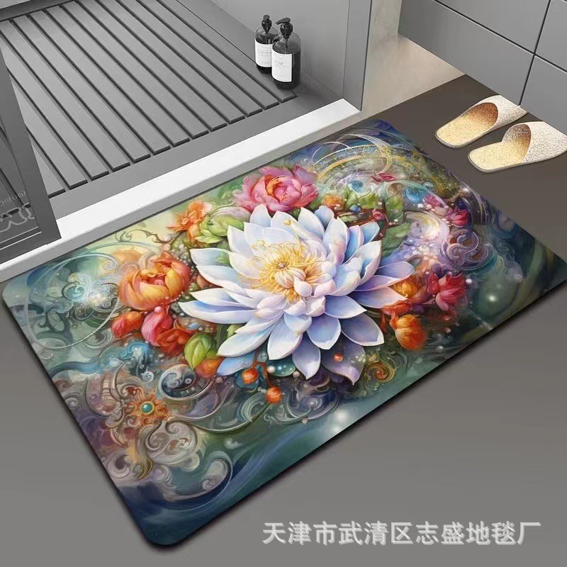 가정용 욕실용 국경 간 꽃 카펫, 방수 및 미끄럼 방지 바닥 매트, 현관 주방, 내마모성 및 관리가 쉬운 바닥 매트 도매 가능