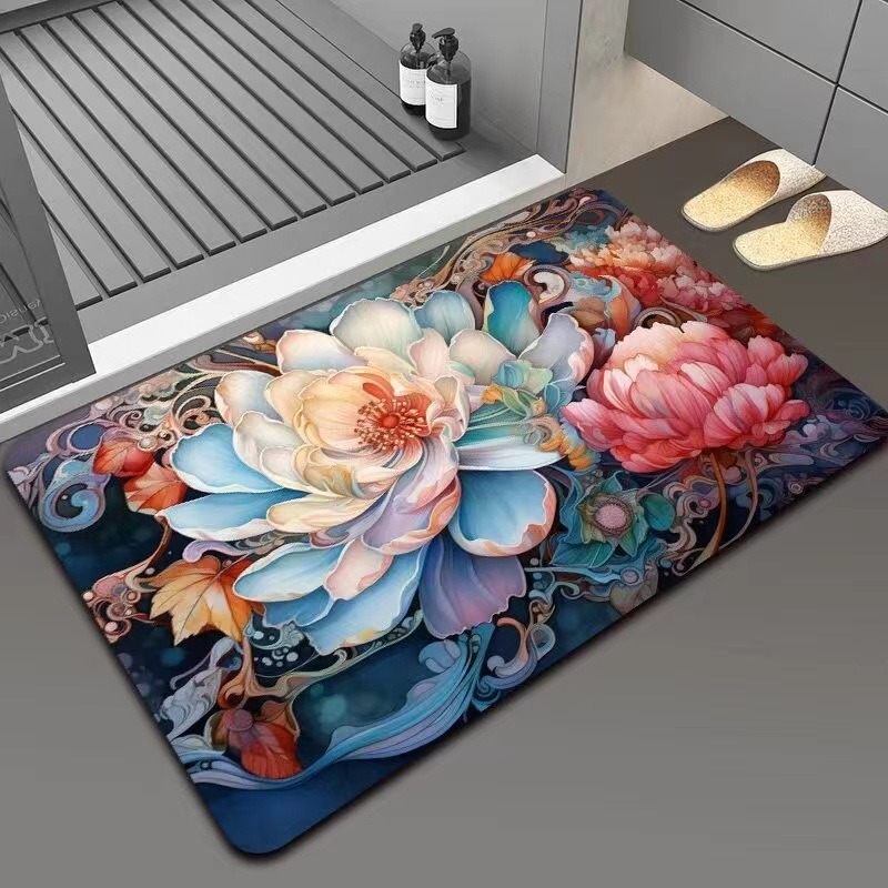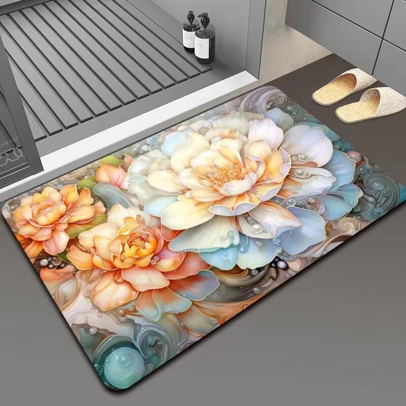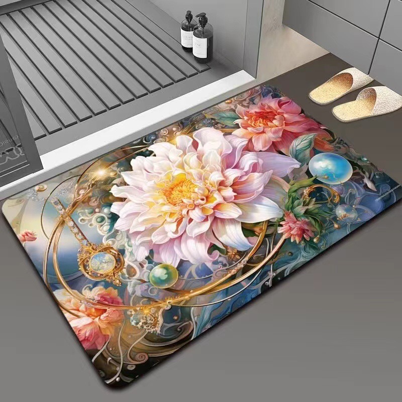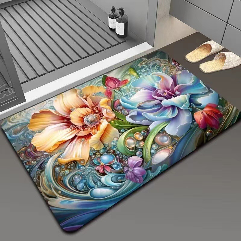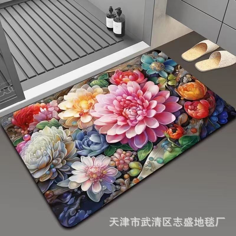 가정용 욕실용 국경 간 꽃 카펫, 방수 및 미끄럼 방지 바닥 매트, 현관 주방, 내마모성 및 관리가 쉬운 바닥 매트 도매 가능스토어 가기