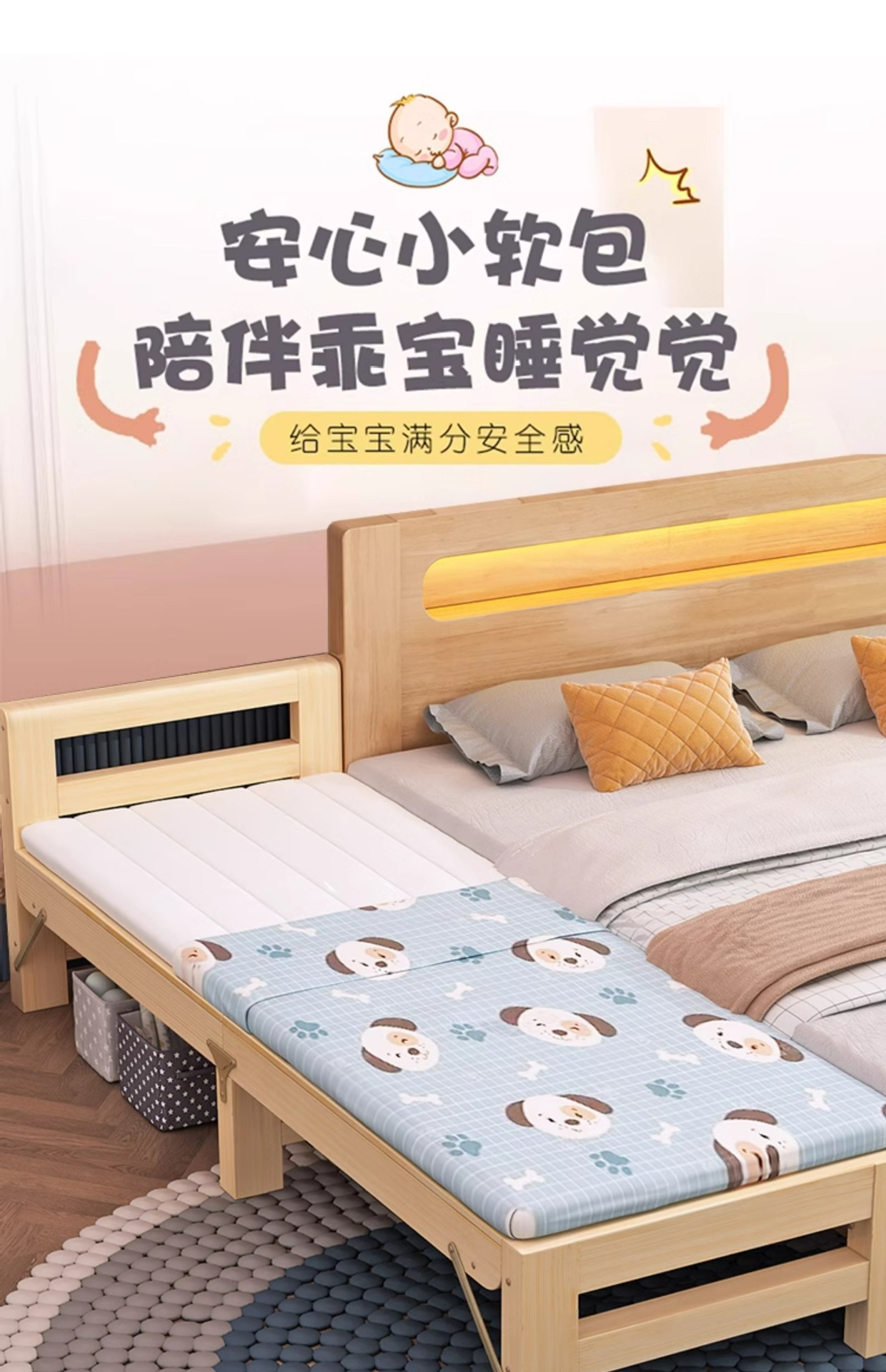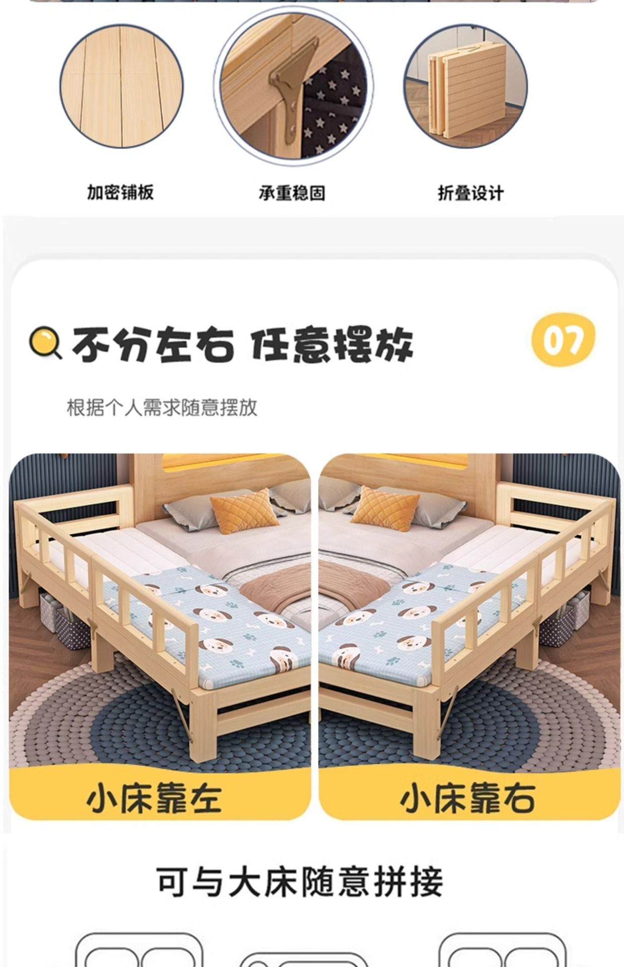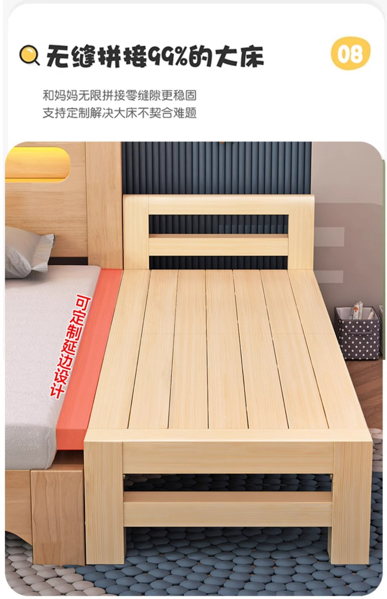 다른 침대와 연결하여 확장 가능 원목 수면용품 연변 확장 접합 침대 성인용 유아용 침대 플러스 침대 옆