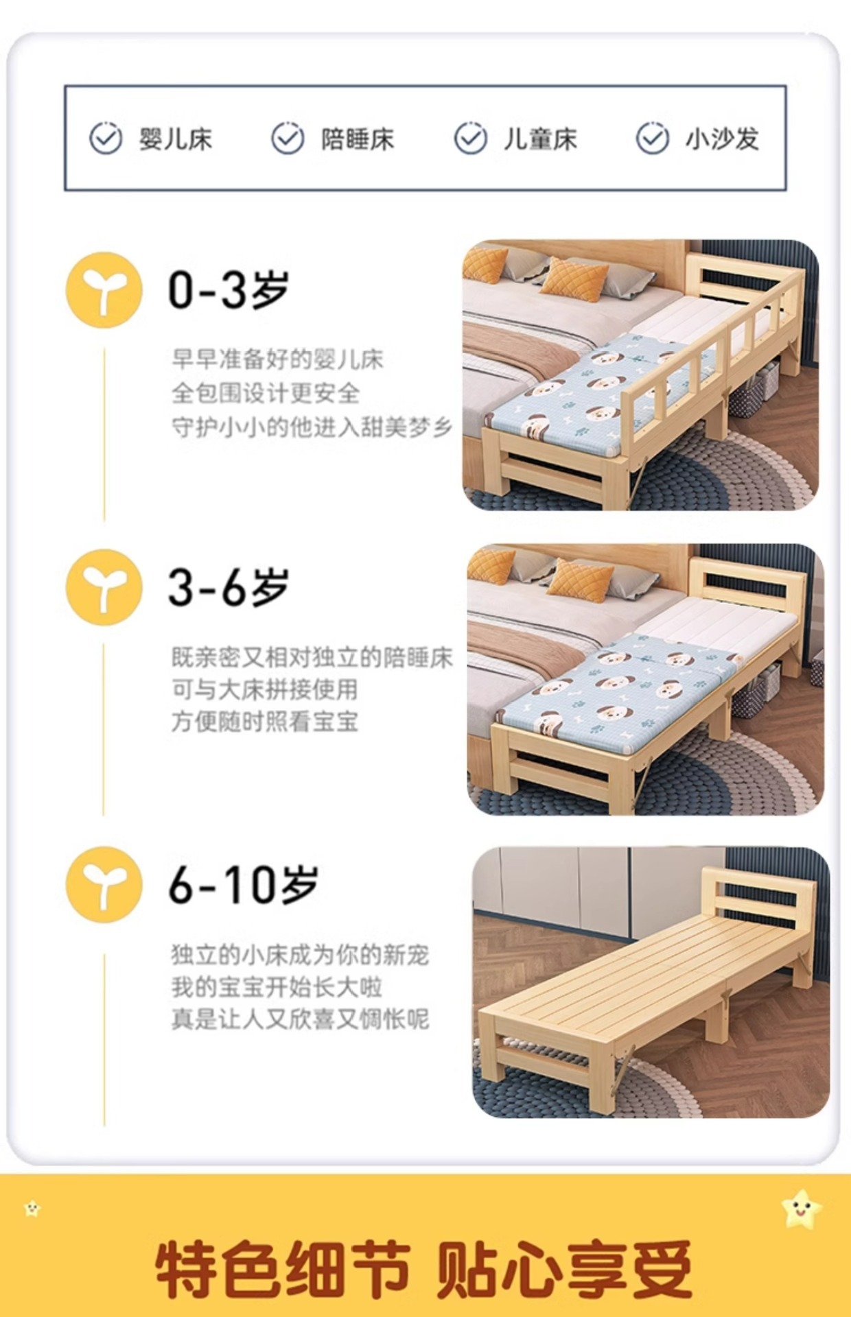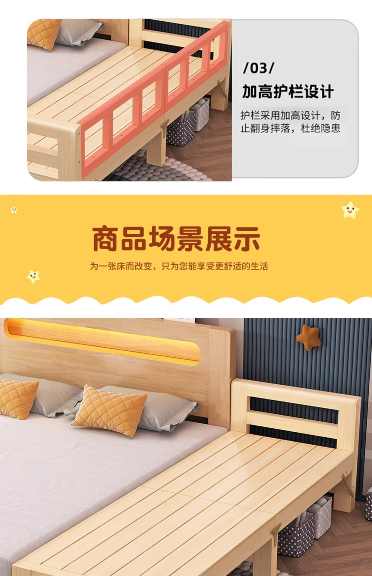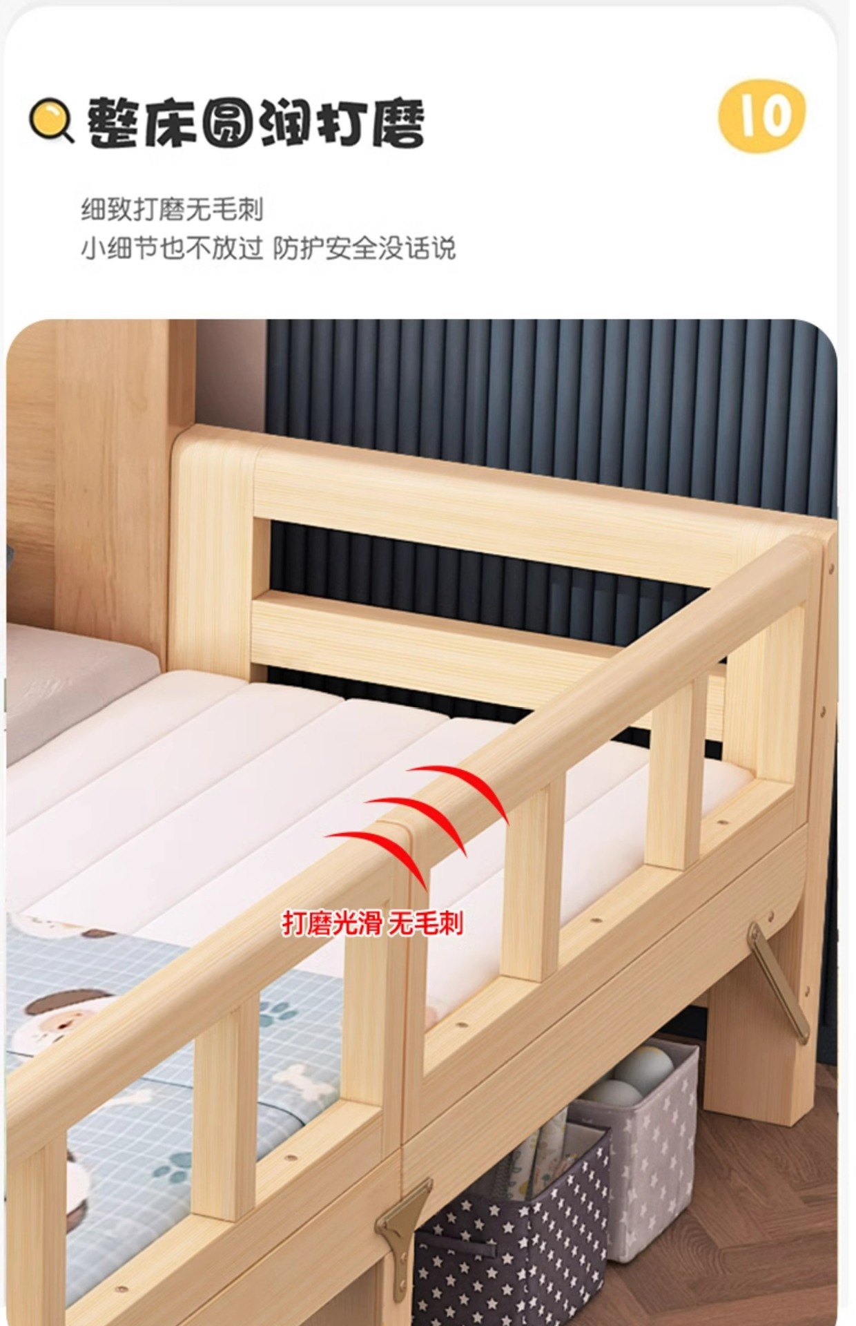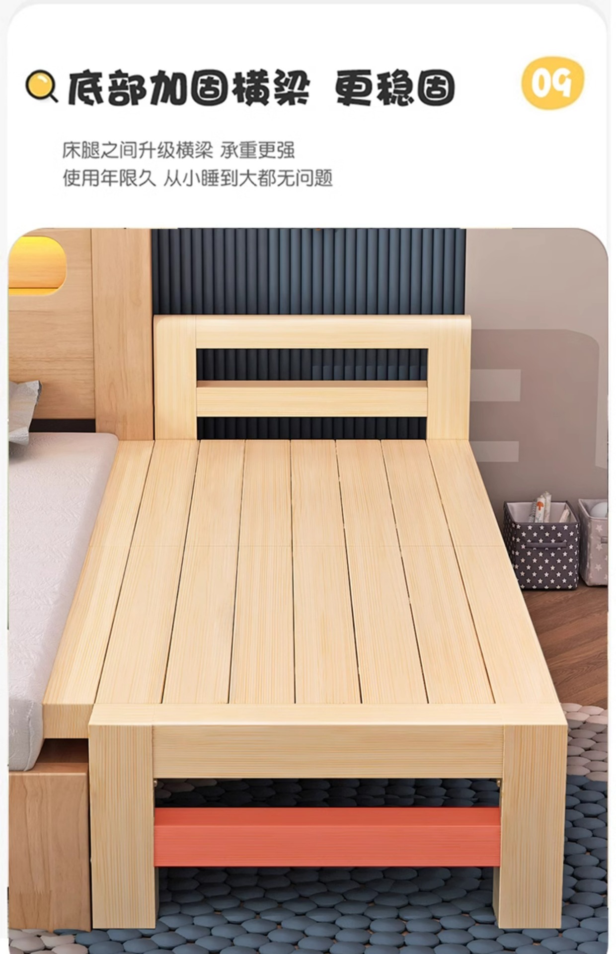 다른 침대와 연결하여 확장 가능 원목 수면용품 연변 확장 접합 침대 성인용 유아용 침대 플러스 침대 옆