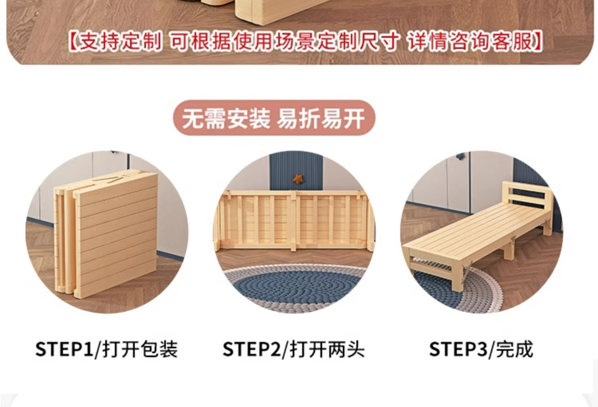 • 싱글 침대 옆 - 접이식 모델 [무료 맞춤 높이 - 기본 40CM]