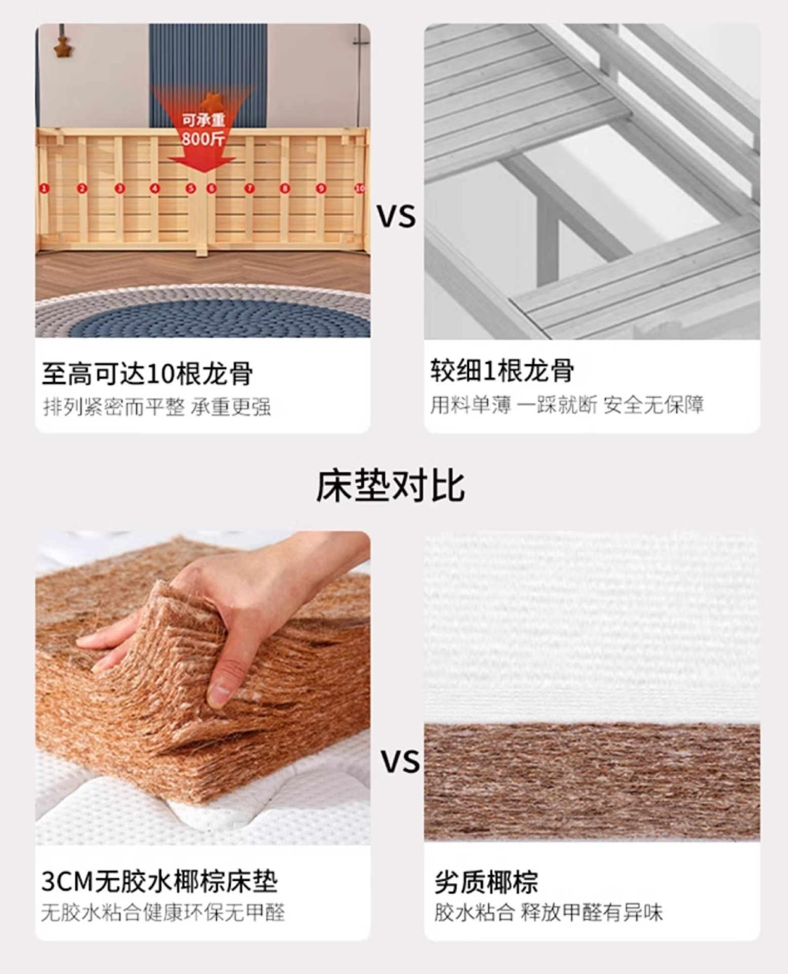 • 침대 머리와 발 + 어울리는 매트리스 - 접이식 모델 [무료 맞춤 높이 - 기본 40CM]