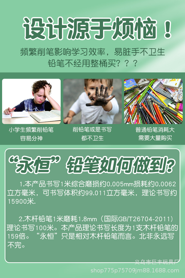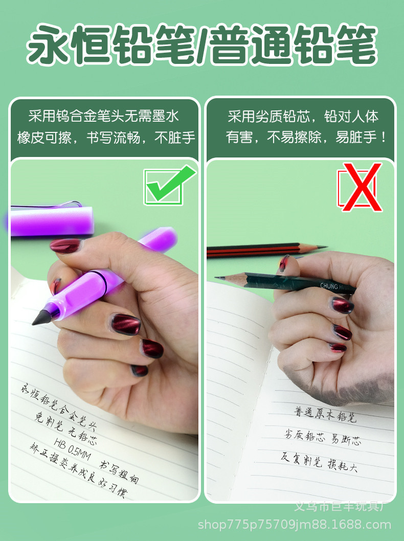 초등학생을 위한 새로운 영원한 연필, 1학년 무독성 HB 자동 연필, 끝없이 쓸 수 있는 연필스토어 가기