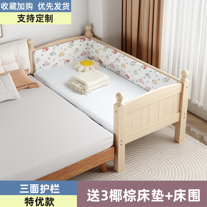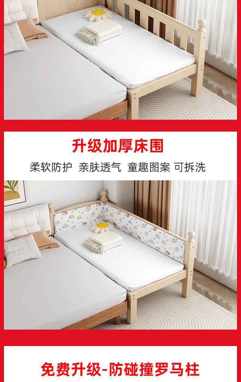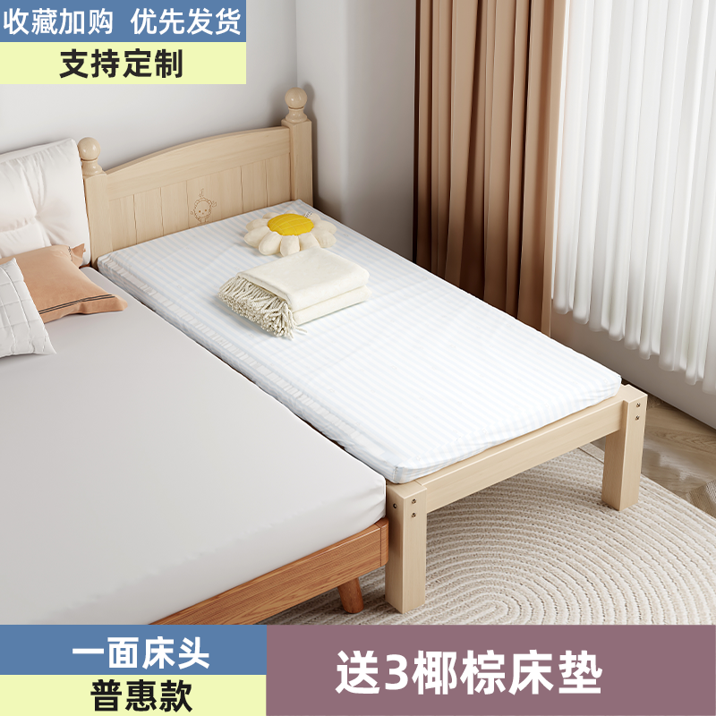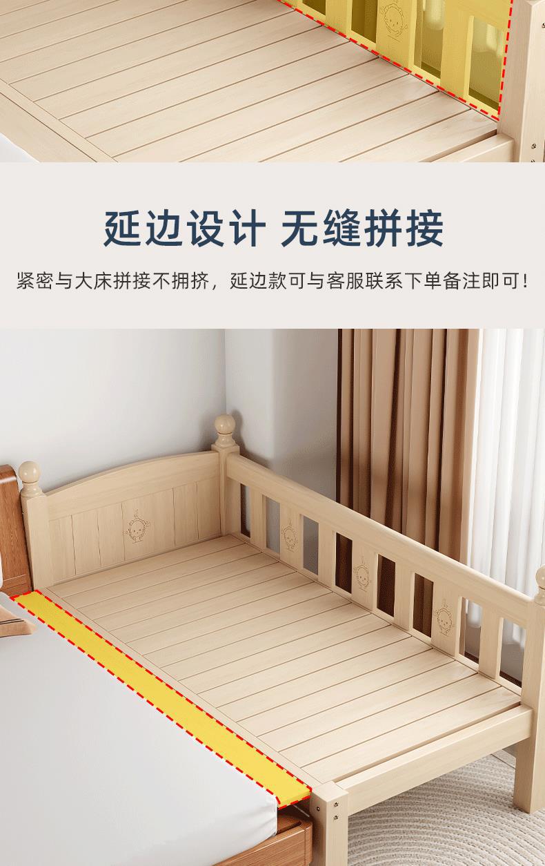 가드레일이 있는 원목 어린이 접합 침대, 침대 주변, 유아용 침대, 대형 침대 접합, 확장된 엔드바인드 싱글 침대