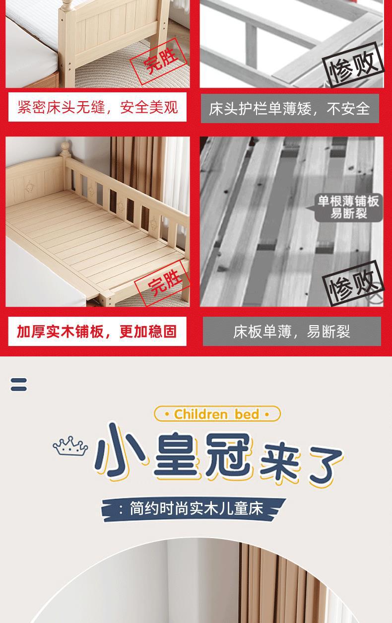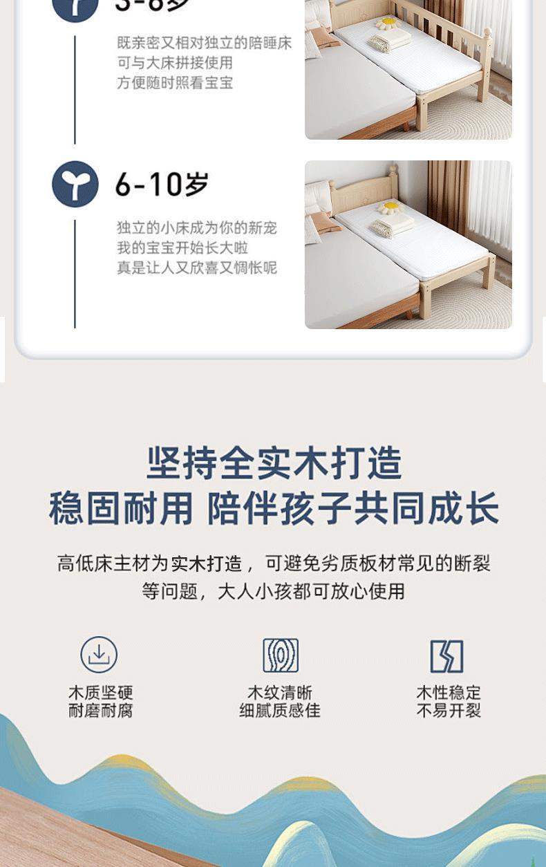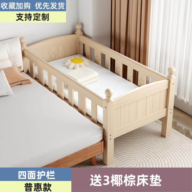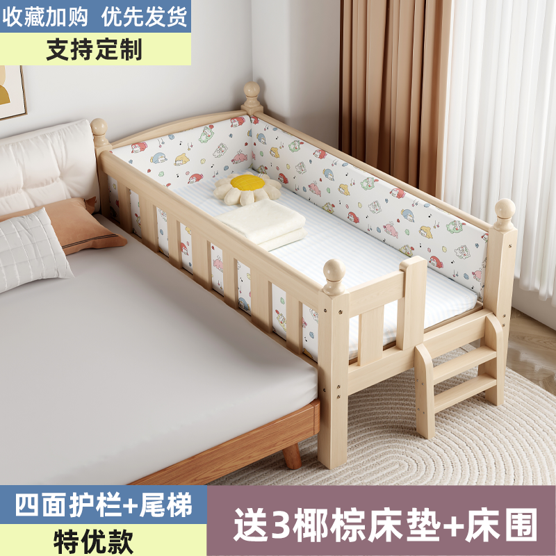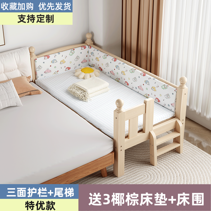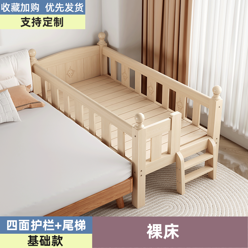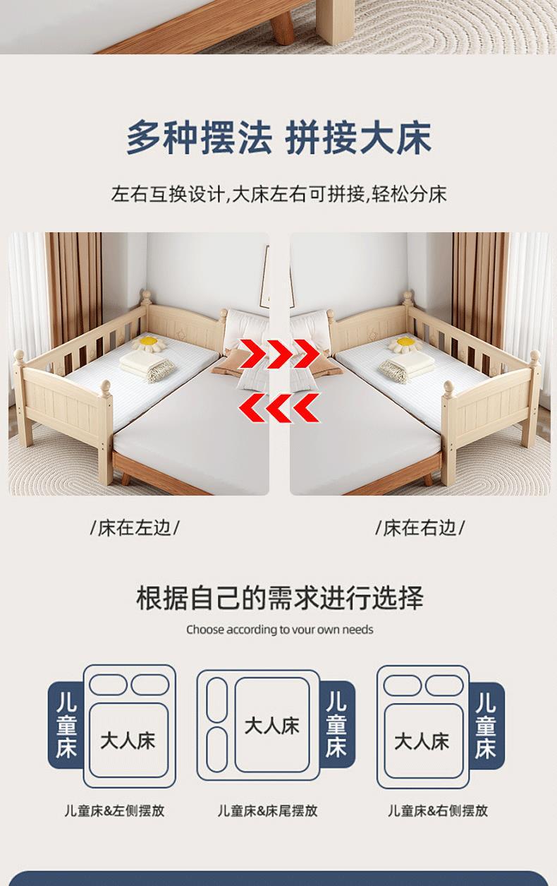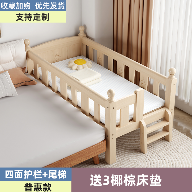 가드레일이 있는 원목 어린이 접합 침대, 침대 주변, 유아용 침대, 대형 침대 접합, 확장된 엔드바인드 싱글 침대스토어 가기