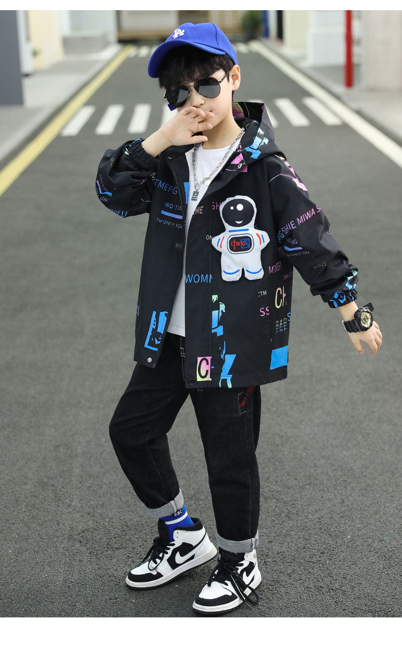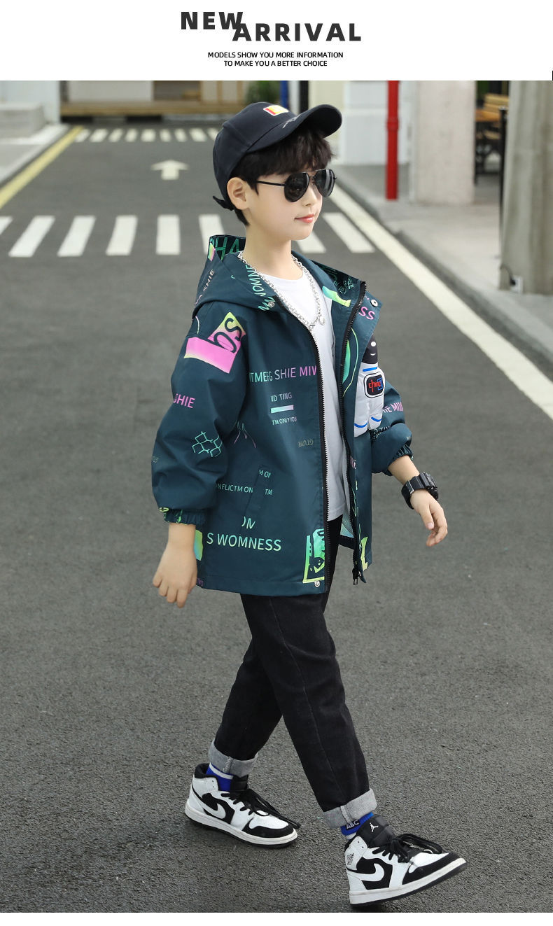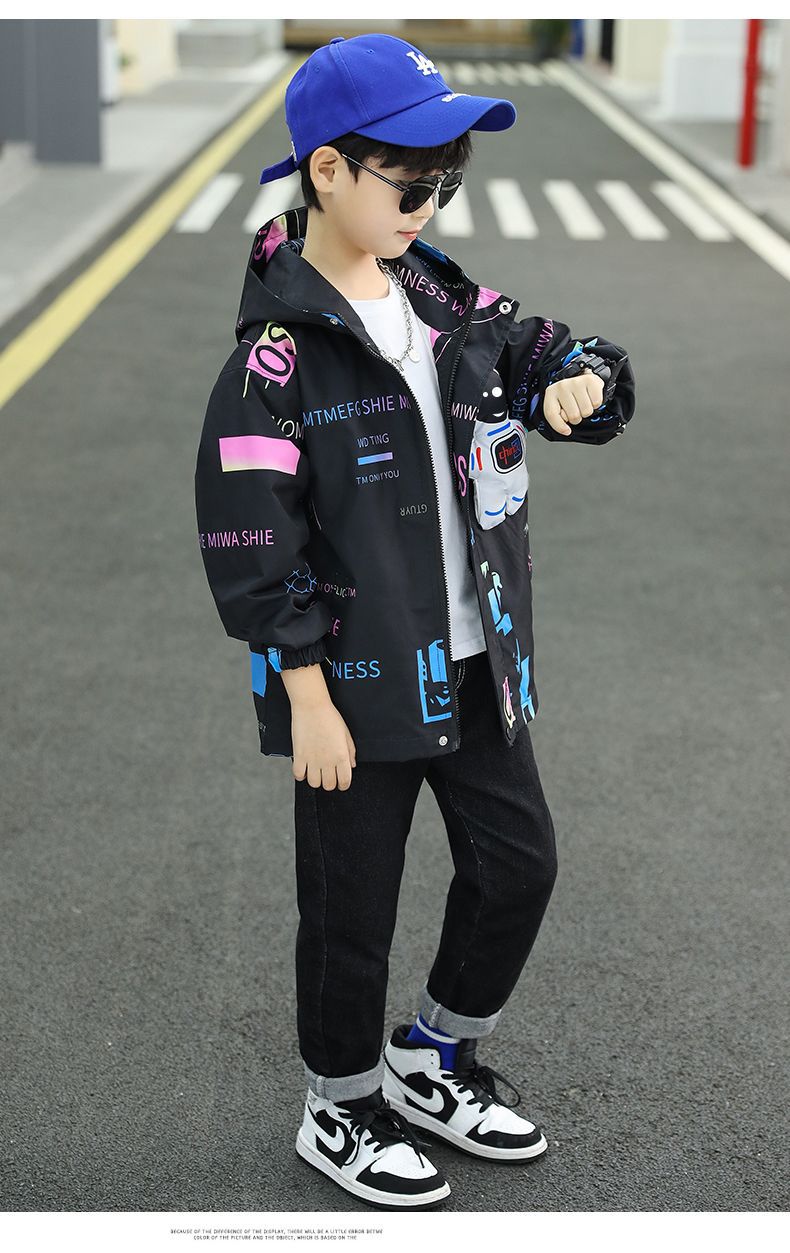 남아 코트 2024 봄 가을 새로운 스타일 아동 가을 스트리트 스타일 중대형 아동 가을 스포츠 윈드 브레이커 아동복스토어 가기