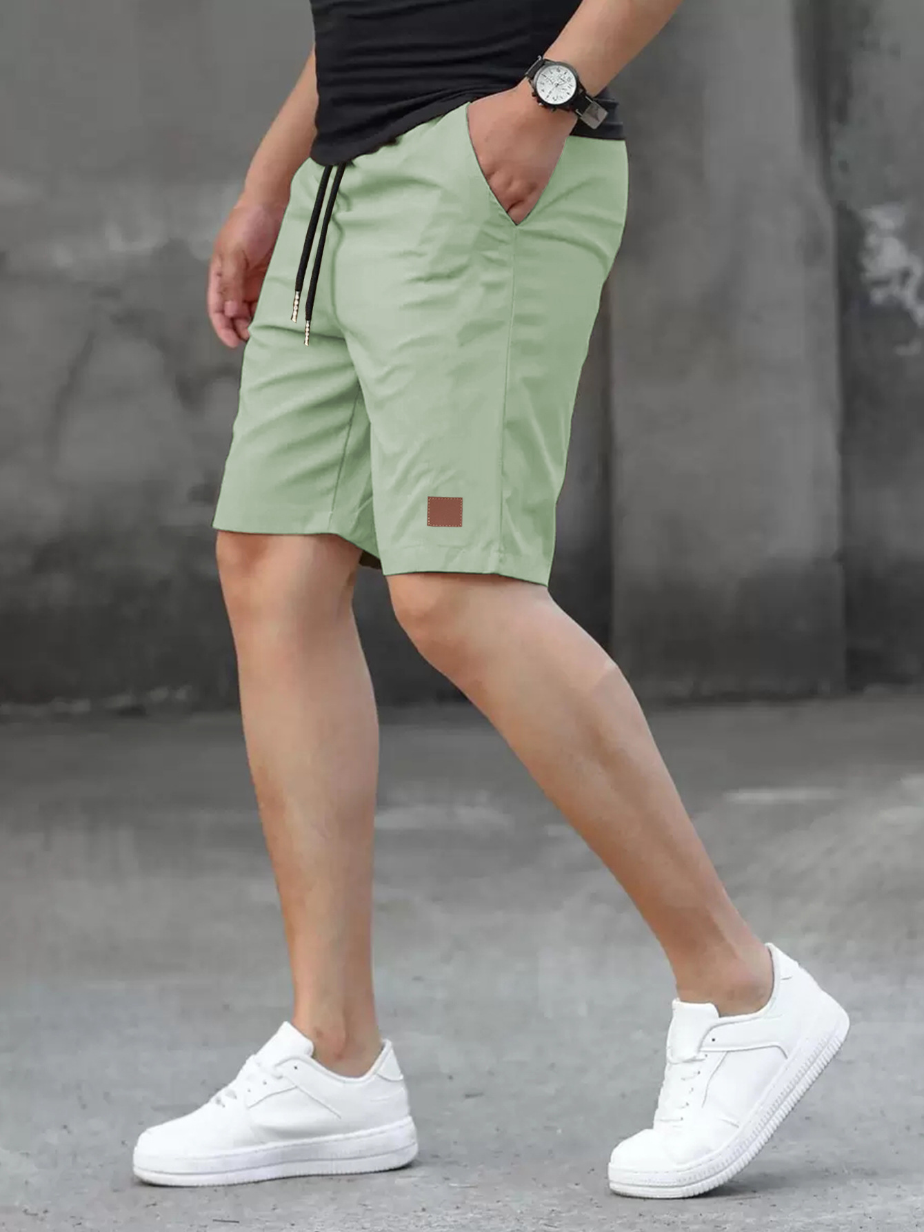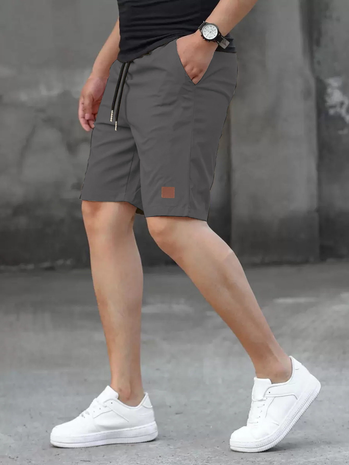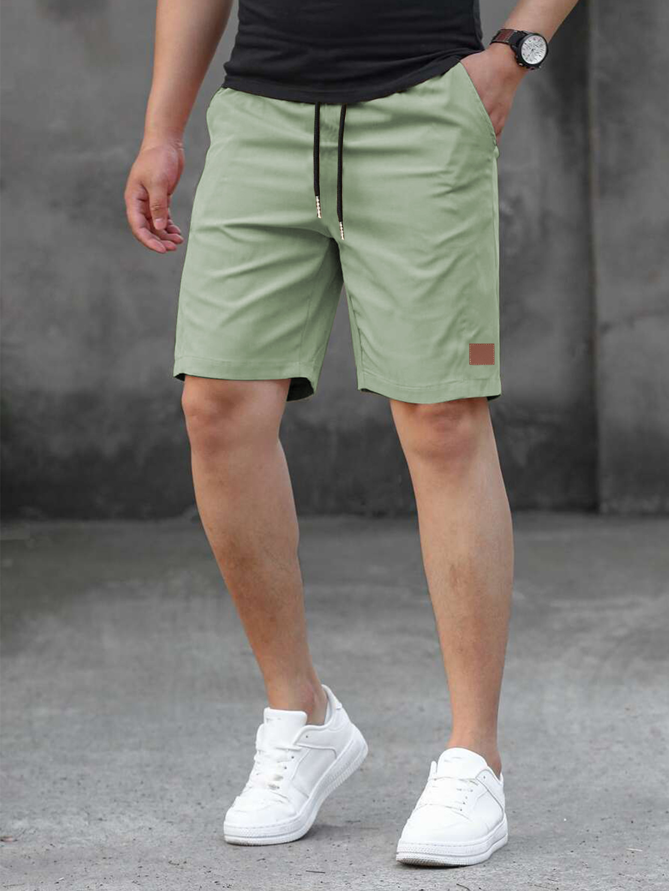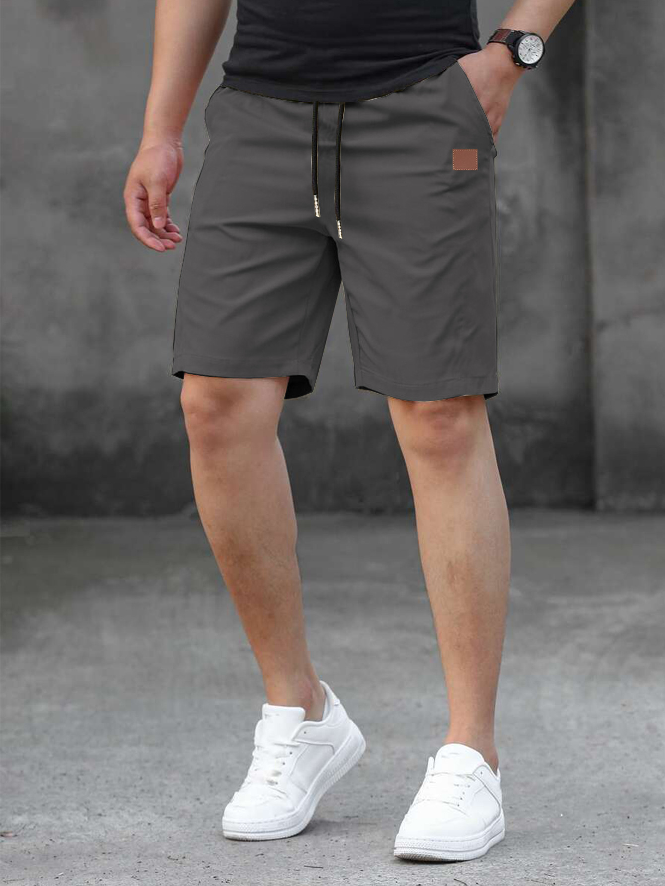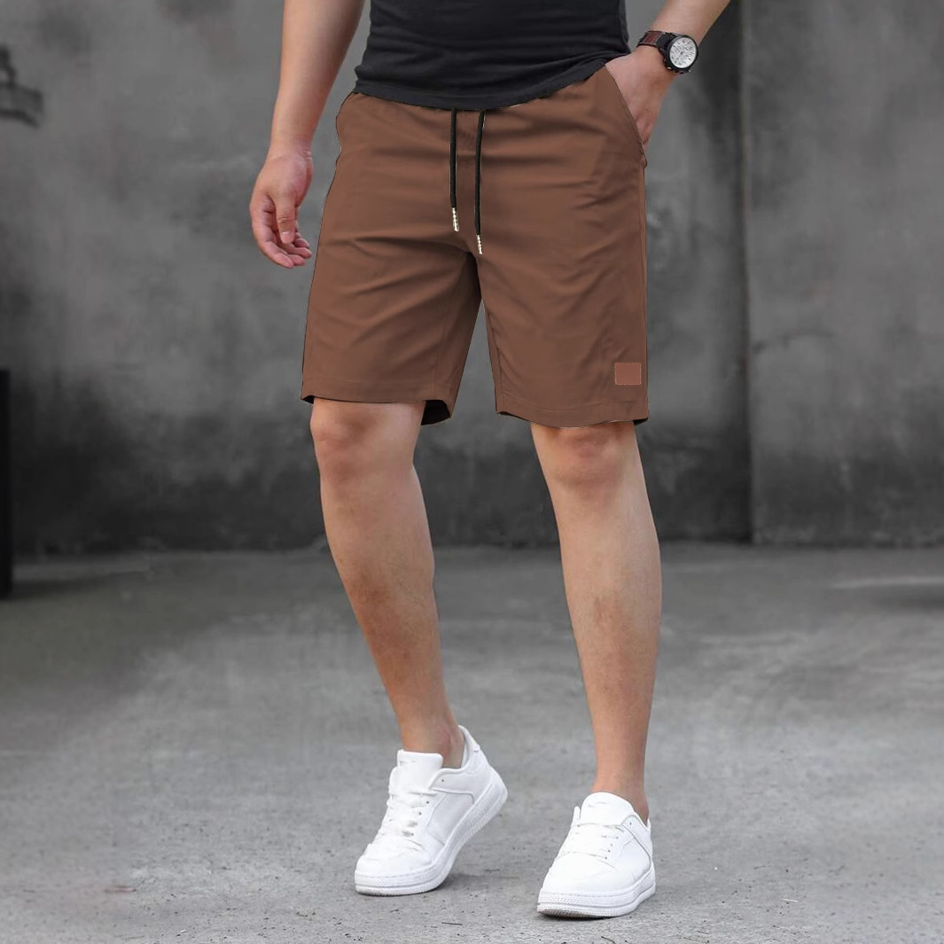 2025 여름 새로운 패션 솔리드 컬러 남성 반바지 소년 가죽 라벨 캐주얼 반바지스토어 가기