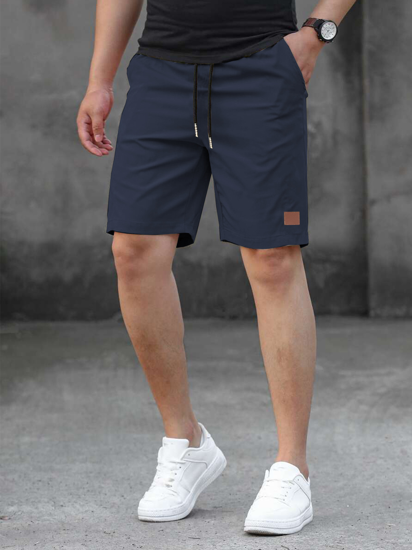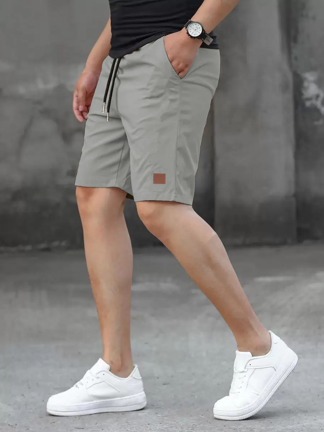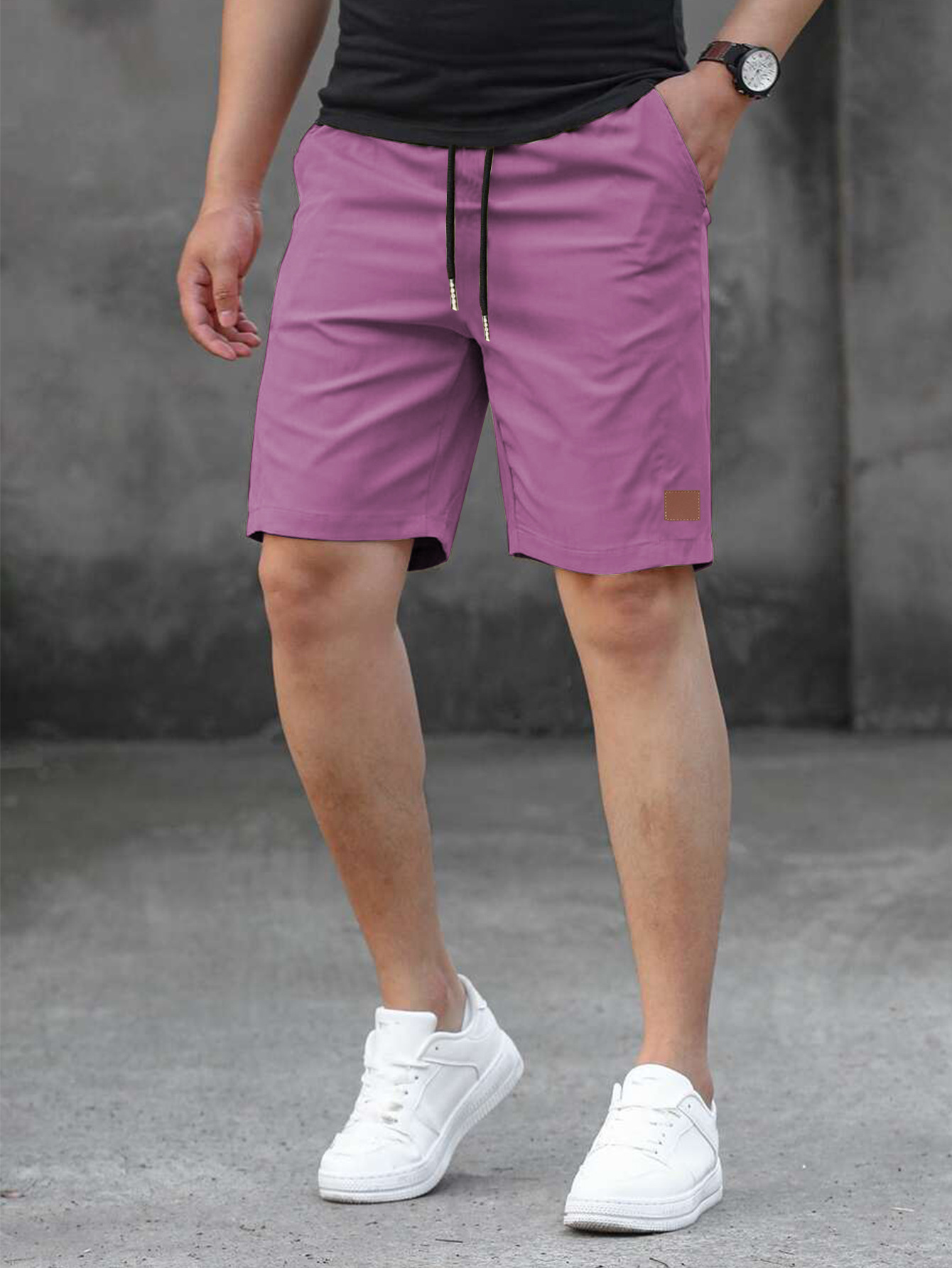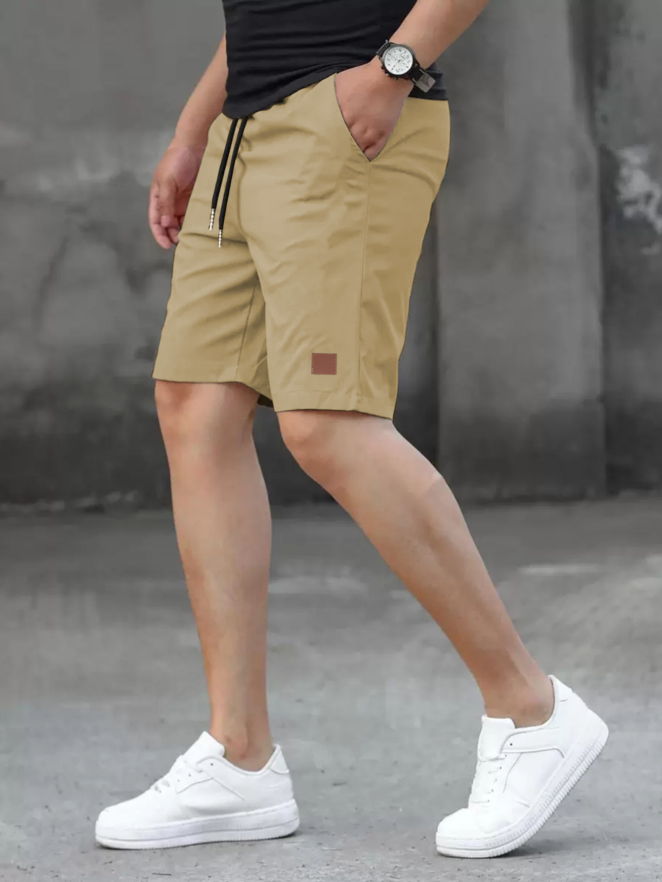 2025 여름 새로운 패션 솔리드 컬러 남성 반바지 소년 가죽 라벨 캐주얼 반바지스토어 가기