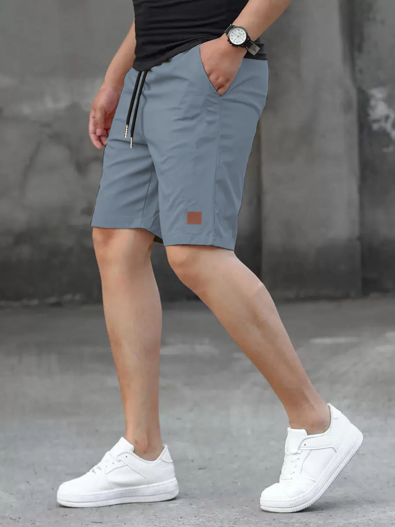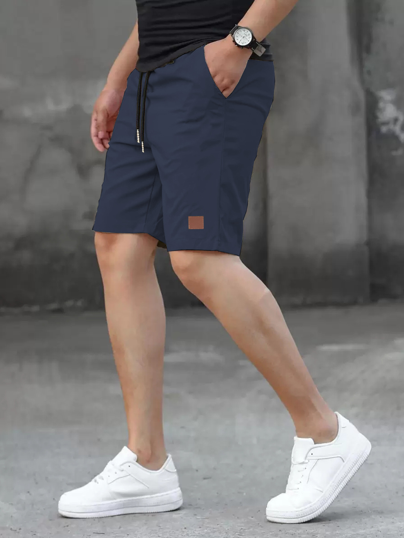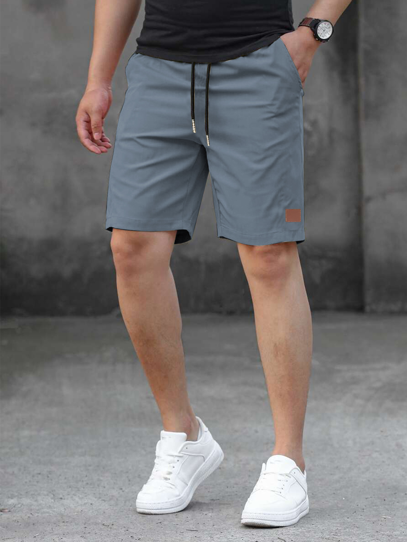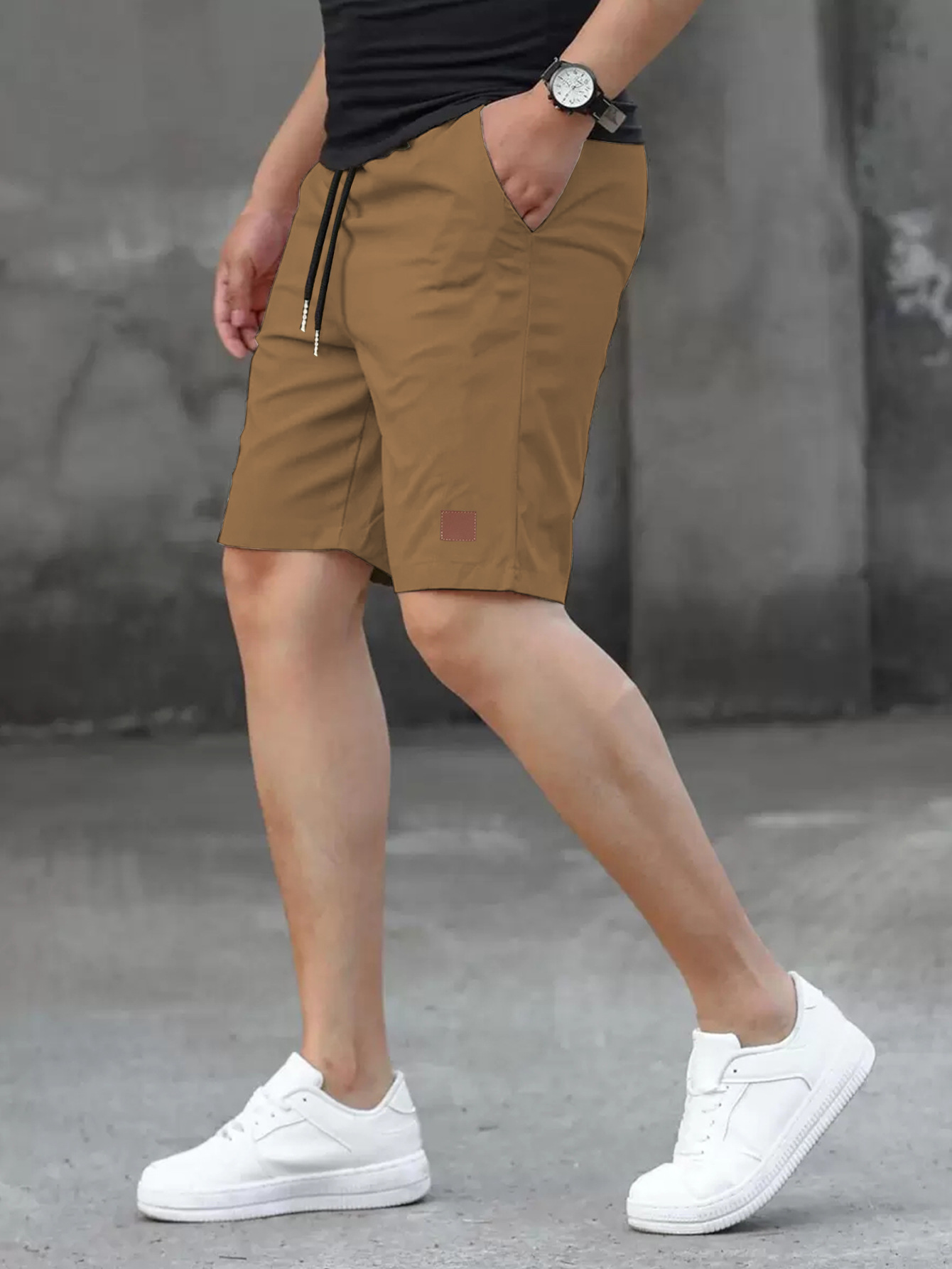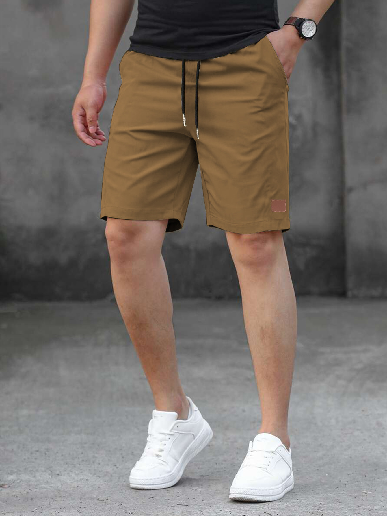 2025 여름 새로운 패션 솔리드 컬러 남성 반바지 소년 가죽 라벨 캐주얼 반바지스토어 가기