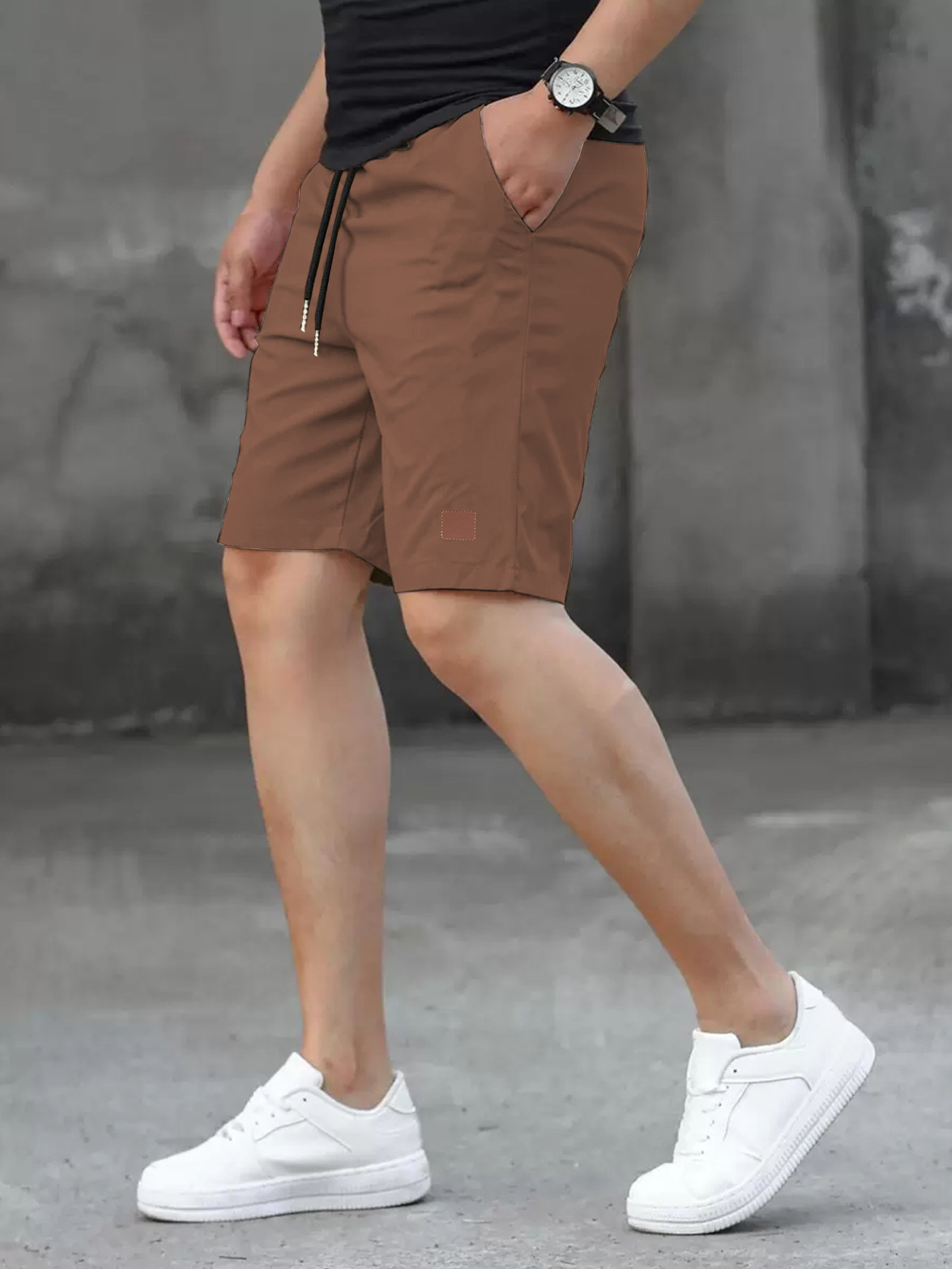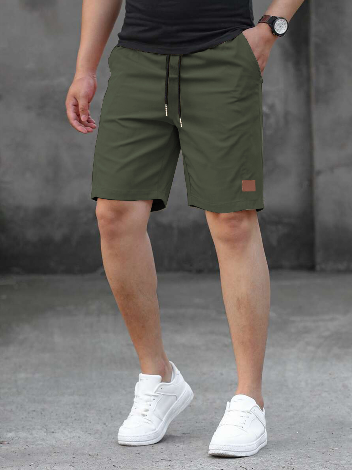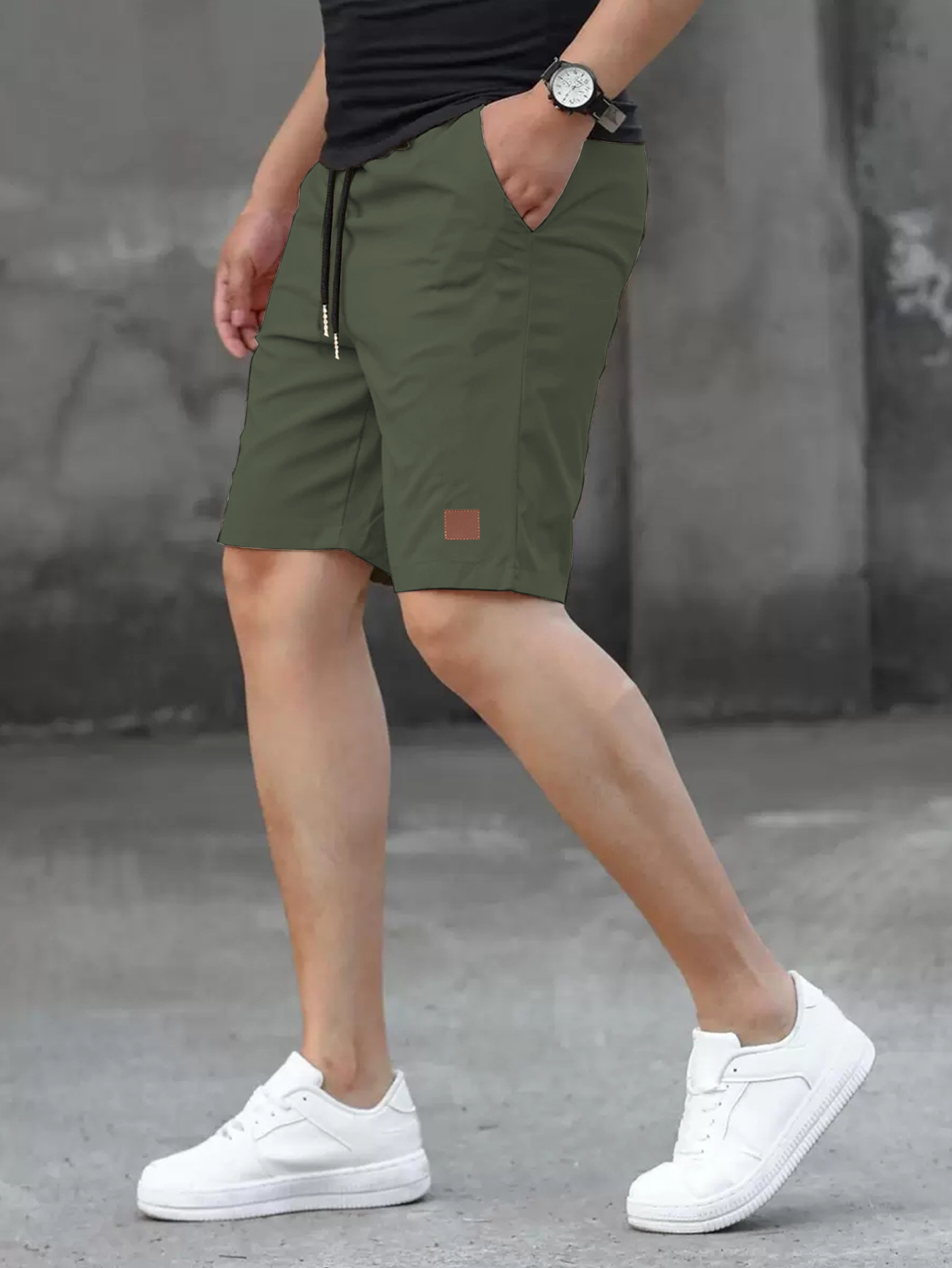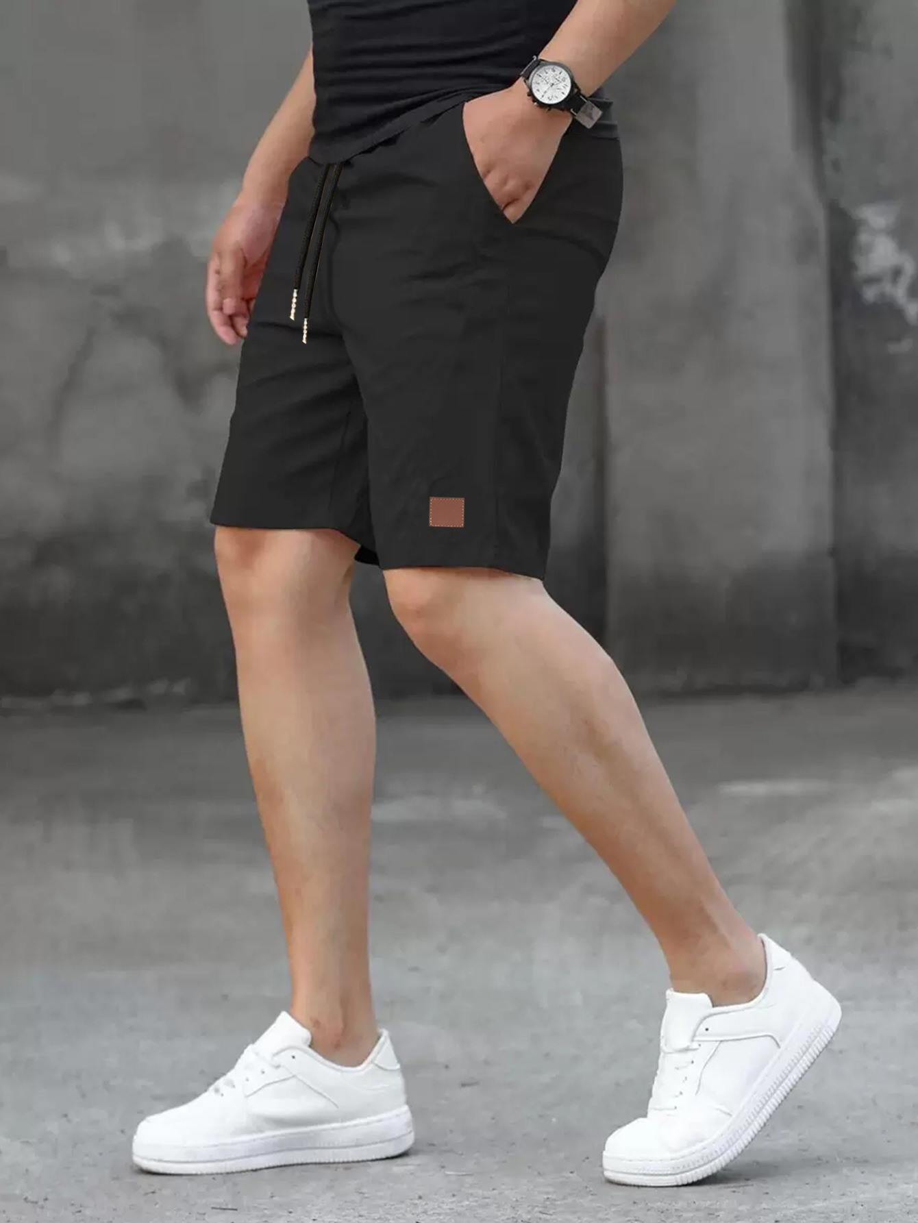 2025 여름 새로운 패션 솔리드 컬러 남성 반바지 소년 가죽 라벨 캐주얼 반바지스토어 가기