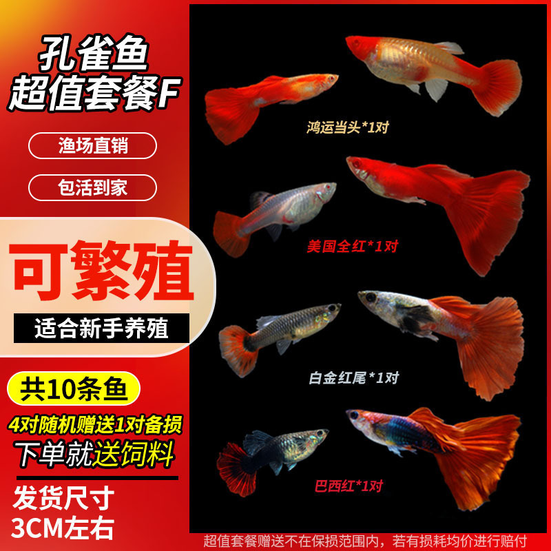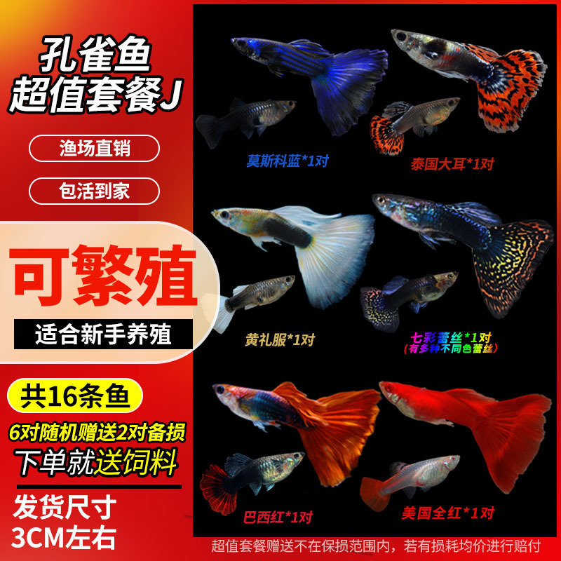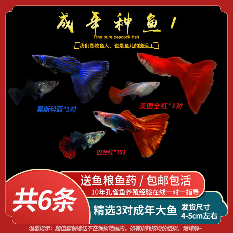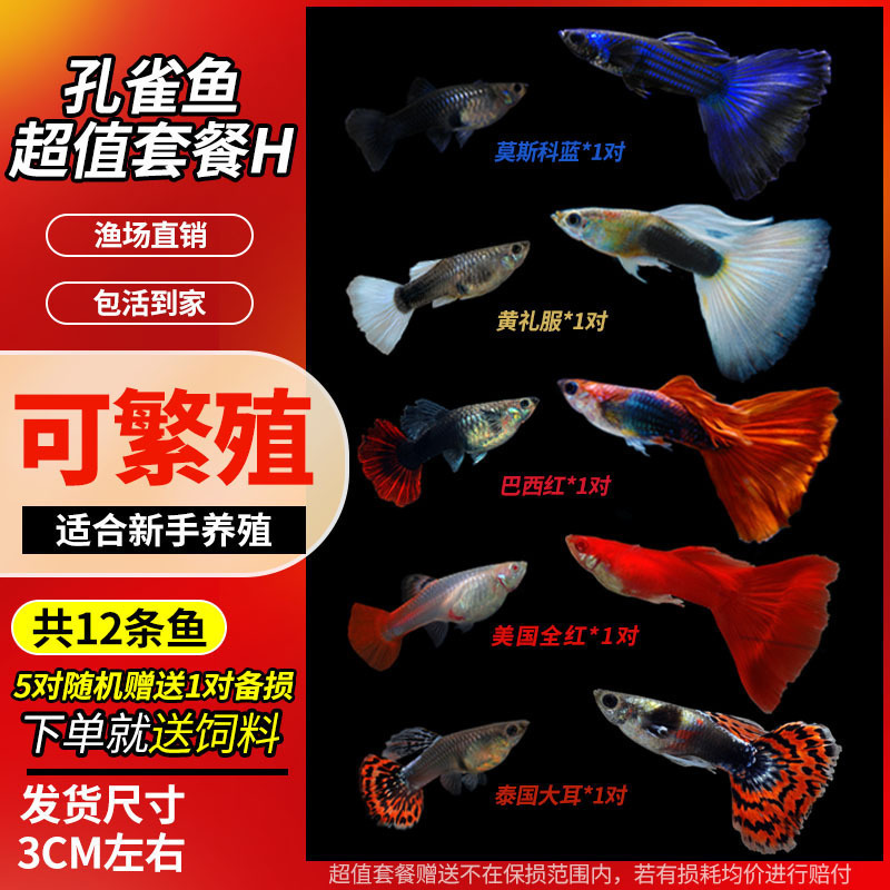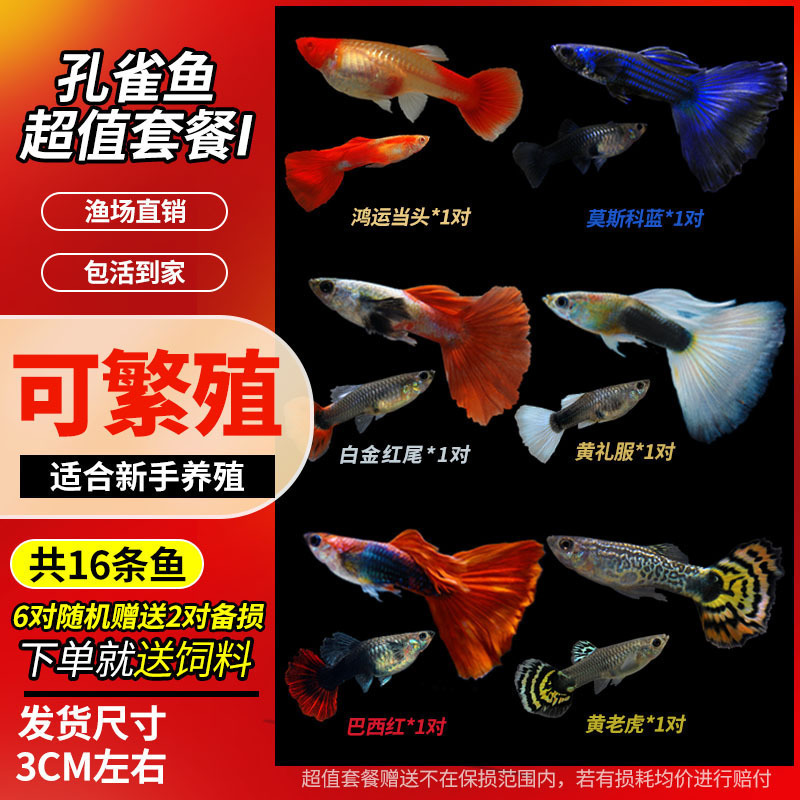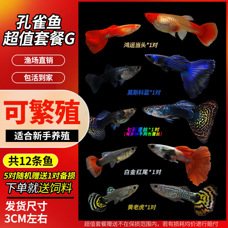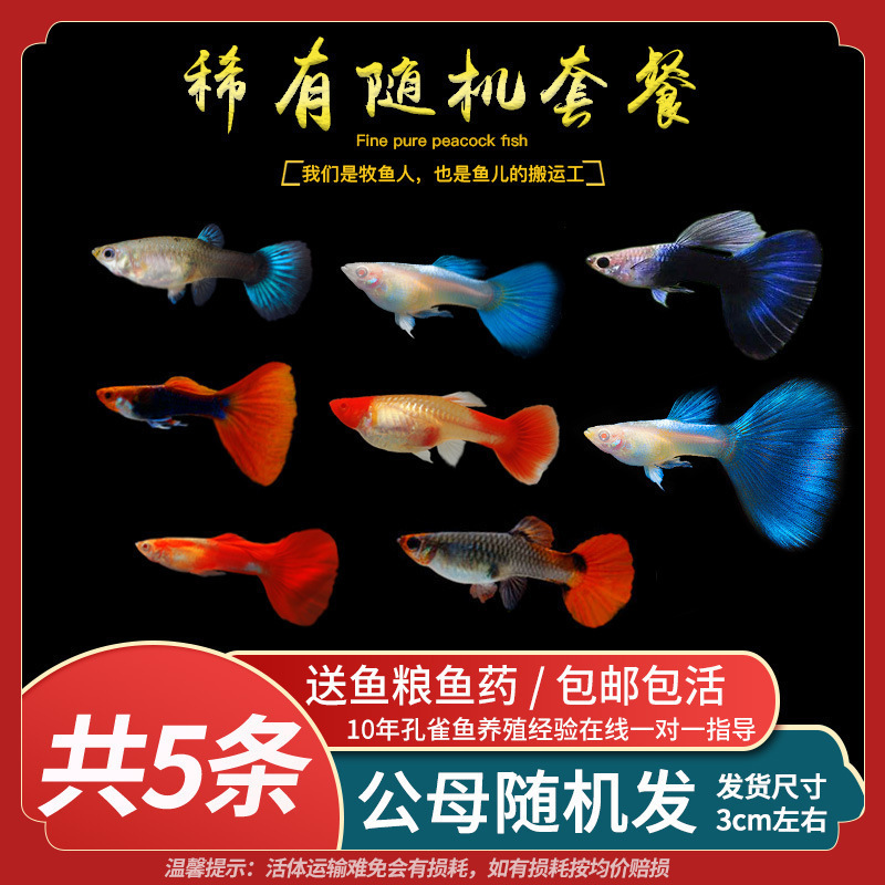 • 무작위 공작 암컷 물고기 6마리, 보장된 손실 5마리 + 예비 1마리