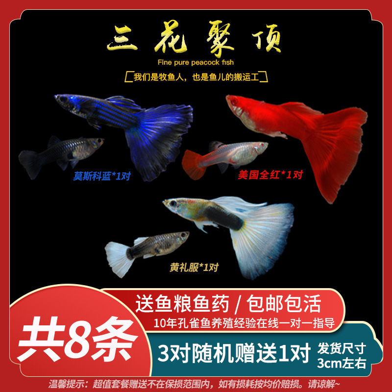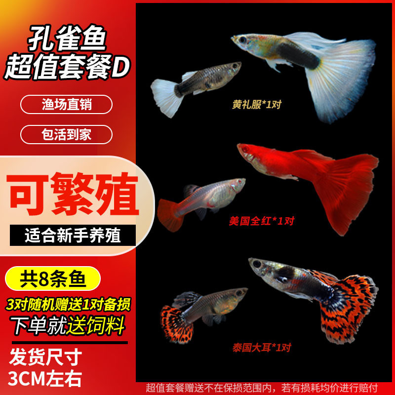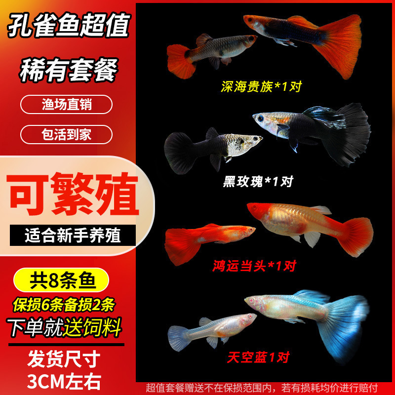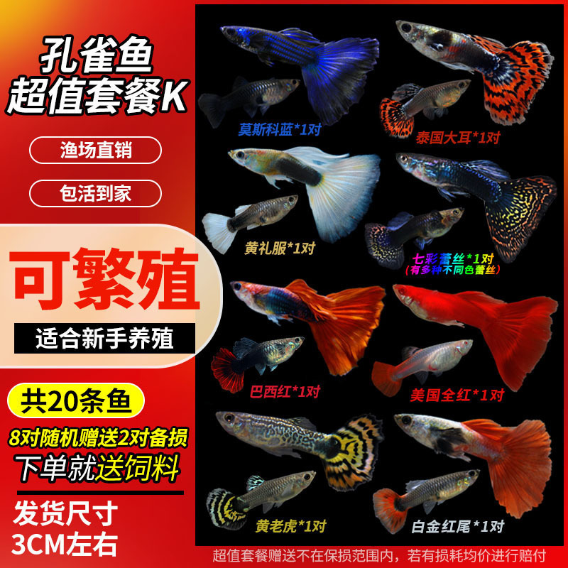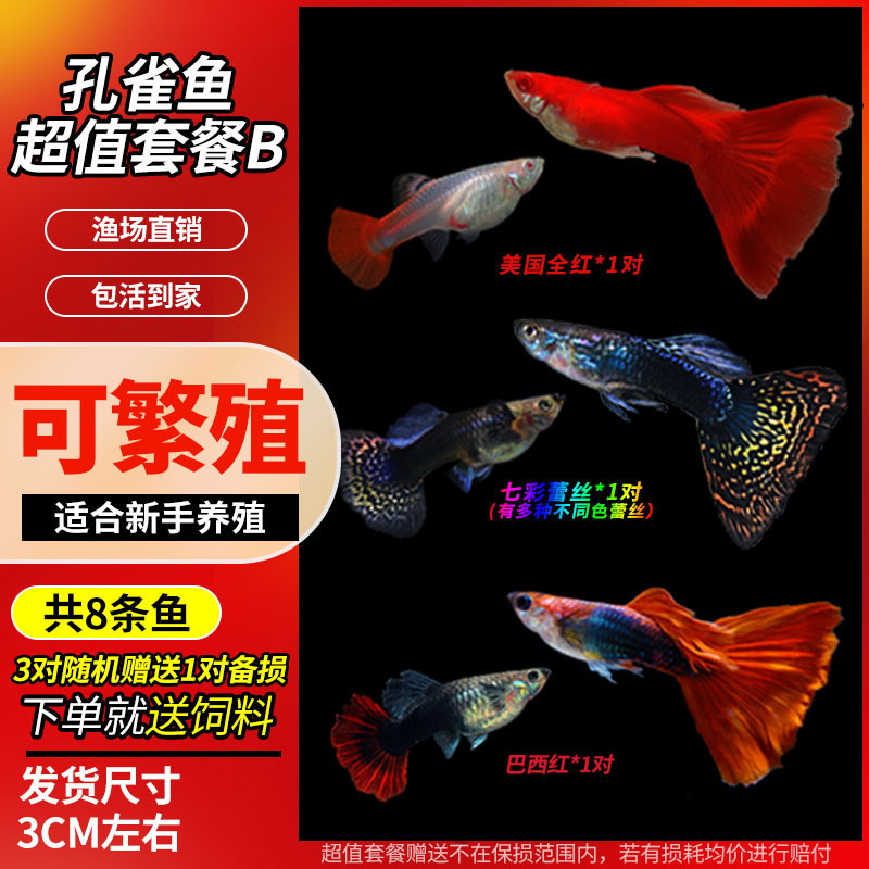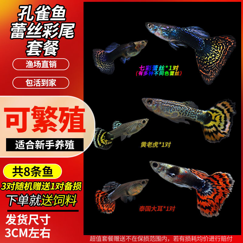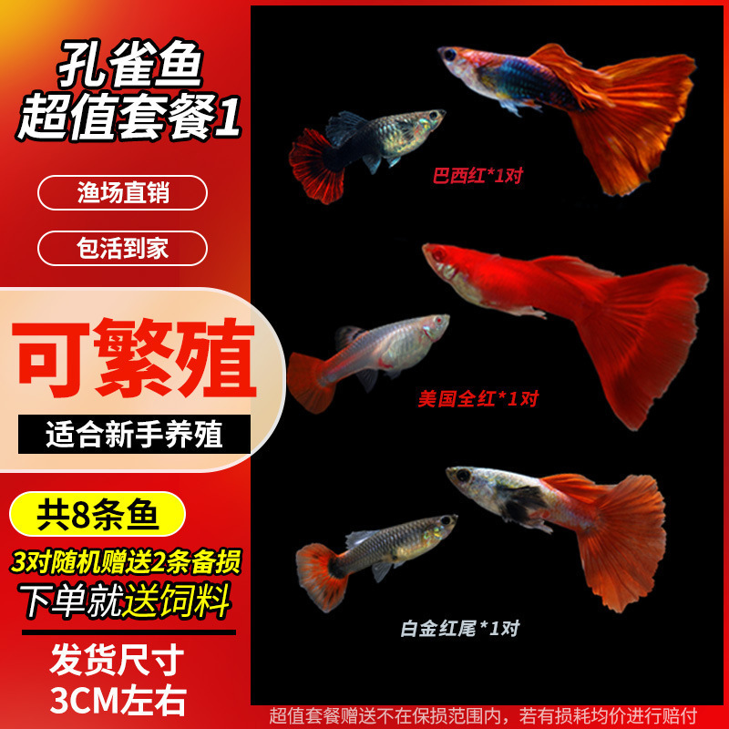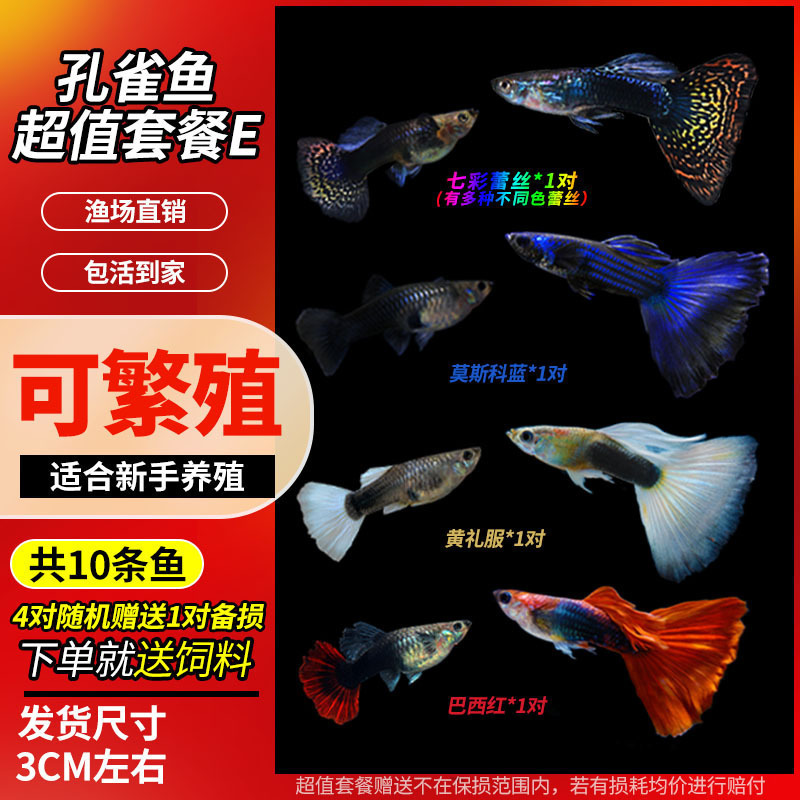 • 무작위 공작 암컷 물고기 6마리, 보장된 손실 5마리 + 예비 1마리