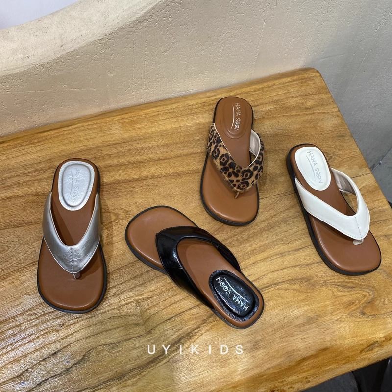 한국판 아동화 2025 여름 아동용 레오파드 프린트 플립플롭, 다재다능하고 스타일리시하며 캐주얼한 아우터웨어 비치 샌들스토어 가기