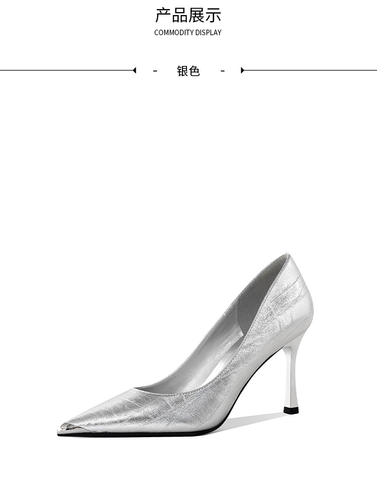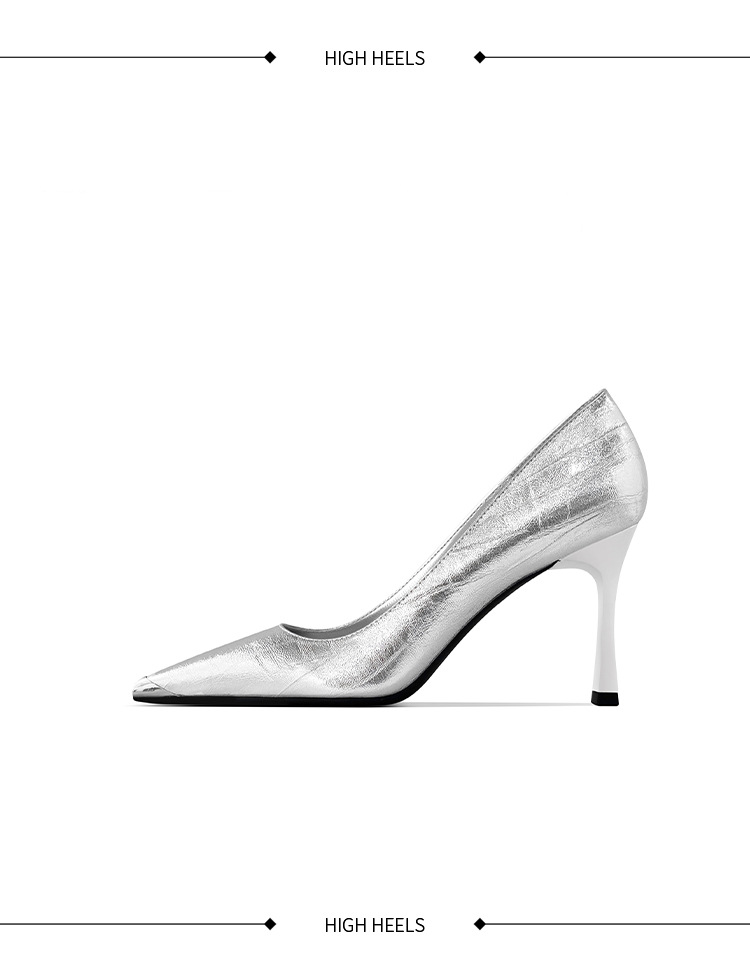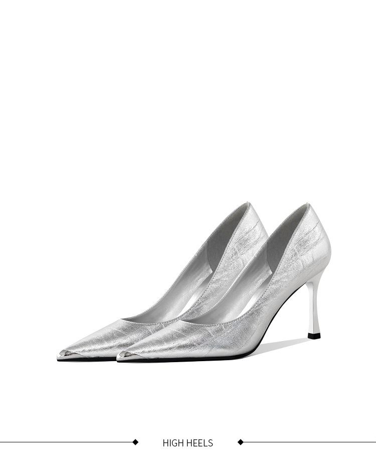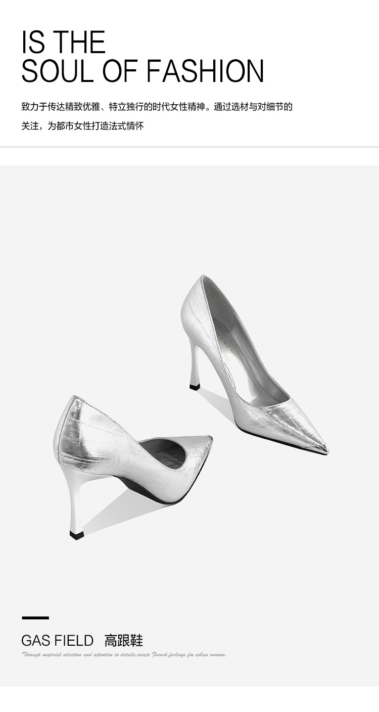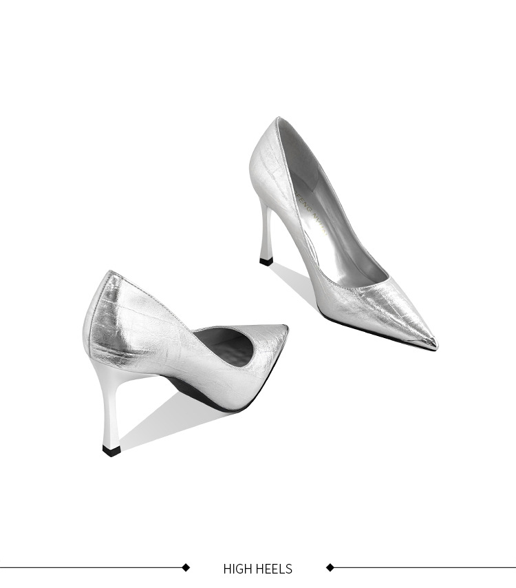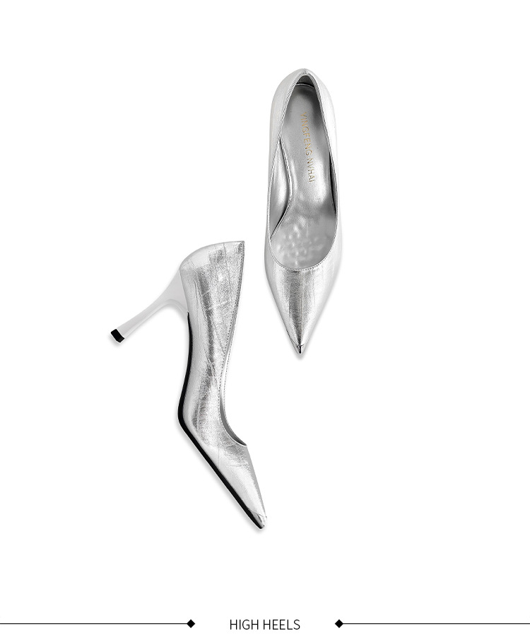 [재고 있음] 실버 뾰족코 하이힐 여성용 2025 가을 신상 고급스러운 슈즈 얕은 굽 연회용 여성화 도매