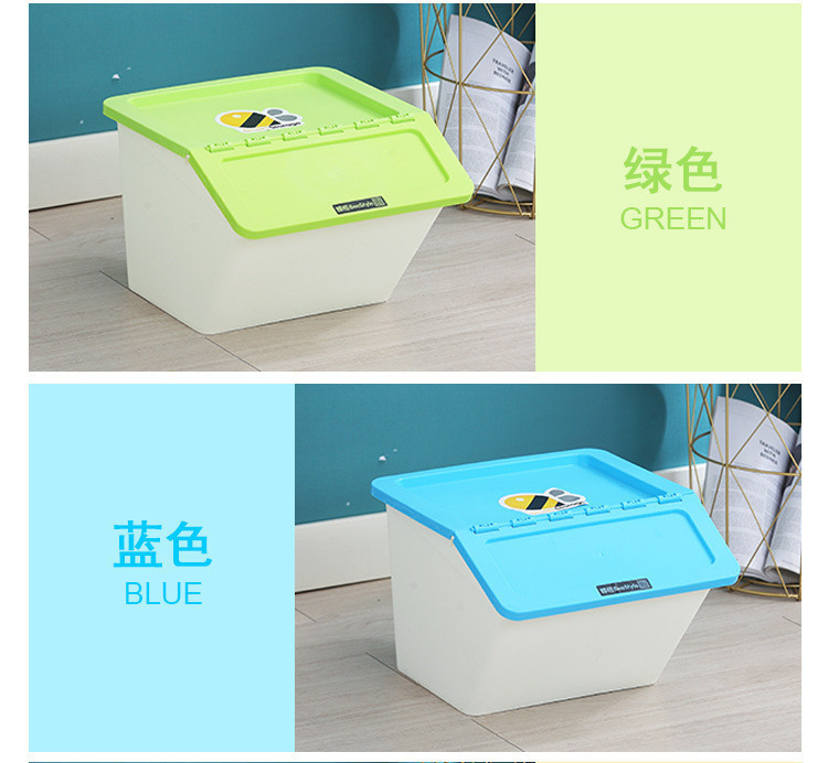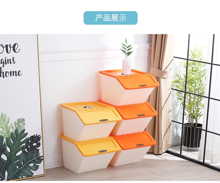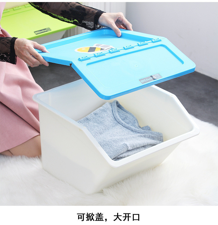 플라스틱 보관 상자, 뚜껑이 있는 가정용 쌓을 수 있는 경사진 보관 상자, 어린이 장난감, 간식, 옷 및 잡다한 보관 상자스토어 가기