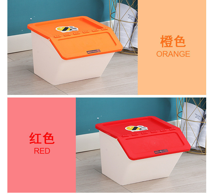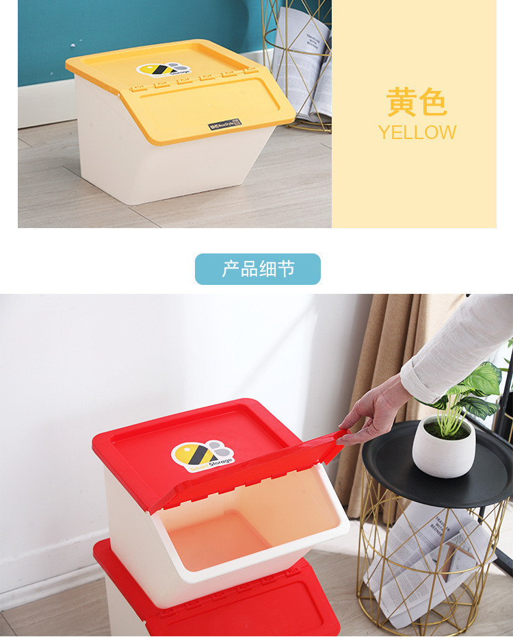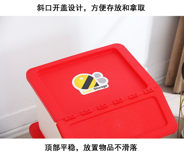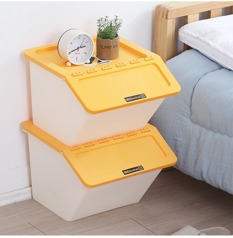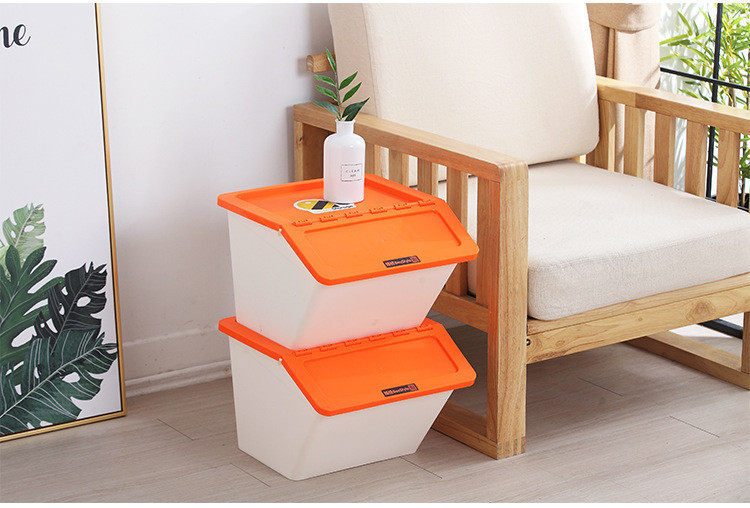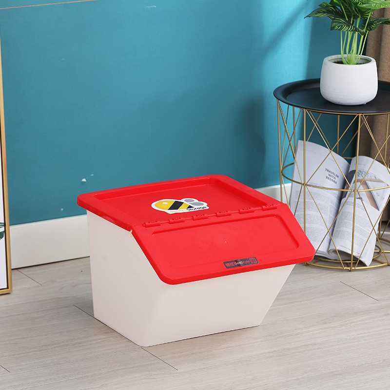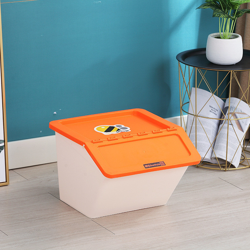 플라스틱 보관 상자, 뚜껑이 있는 가정용 쌓을 수 있는 경사진 보관 상자, 어린이 장난감, 간식, 옷 및 잡다한 보관 상자