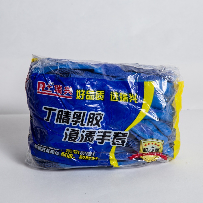 • Ruixing 108 파란색 부틸 니트릴 담근 장갑