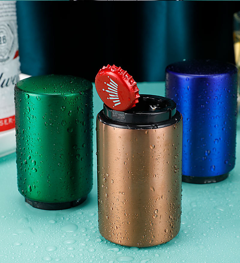 국경 간 인기 판매 맥주 병따개 푸시 형 스테인레스 스틸 크리 에이 티브 자동 병따개 병뚜껑 오프너 맥주 병따개