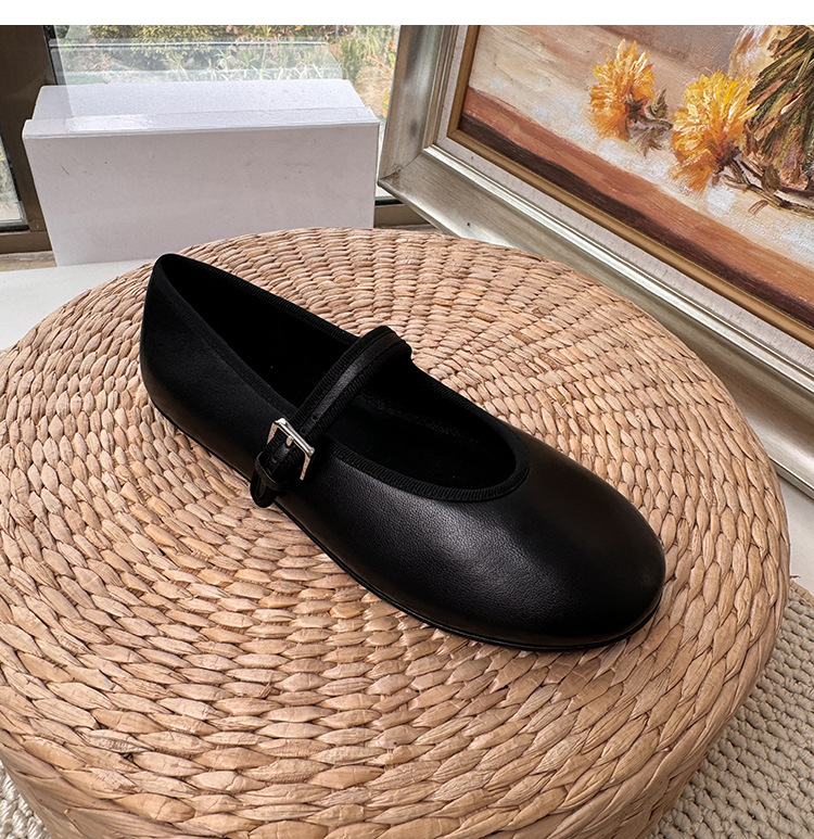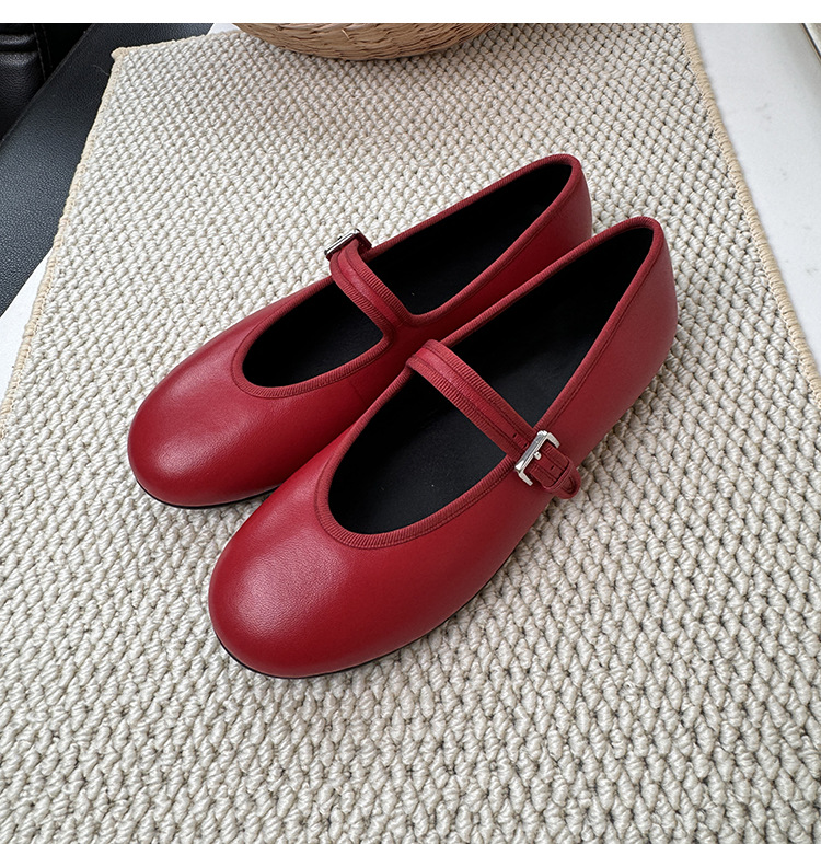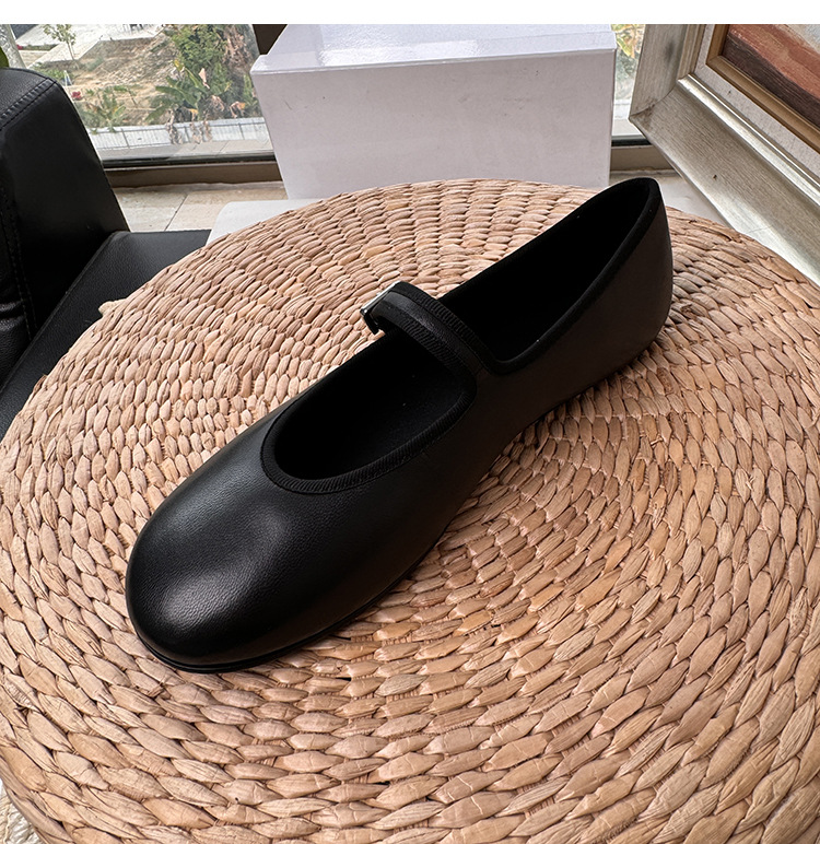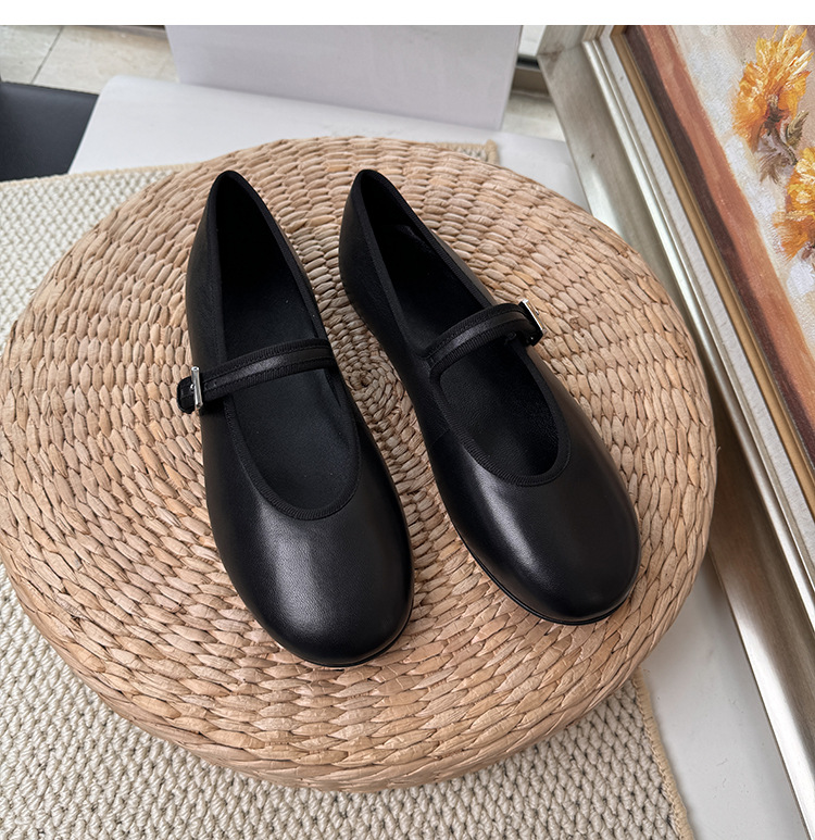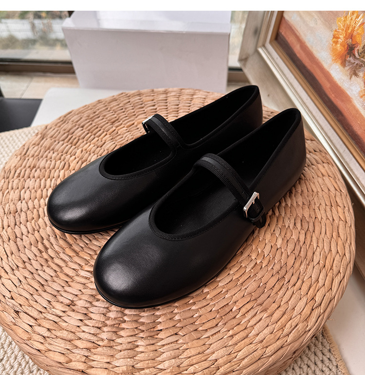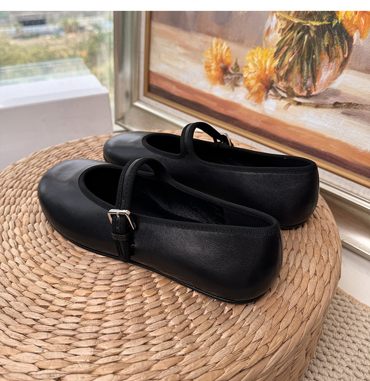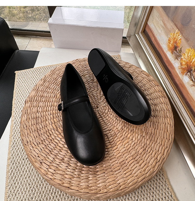 동관산~여성을 위한 천연가죽 라운드토 레트로 원버튼 메리제인 슈즈 25 봄 신상 플랫 컴포트 슈즈