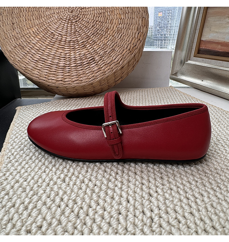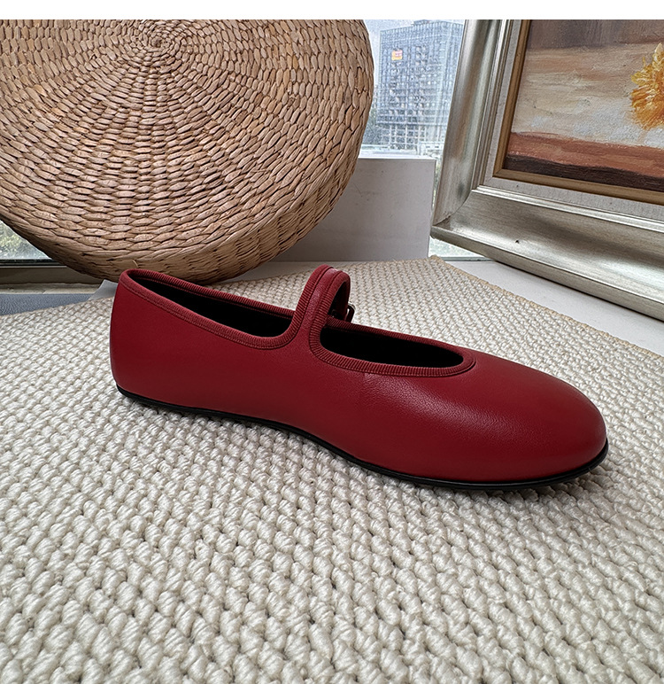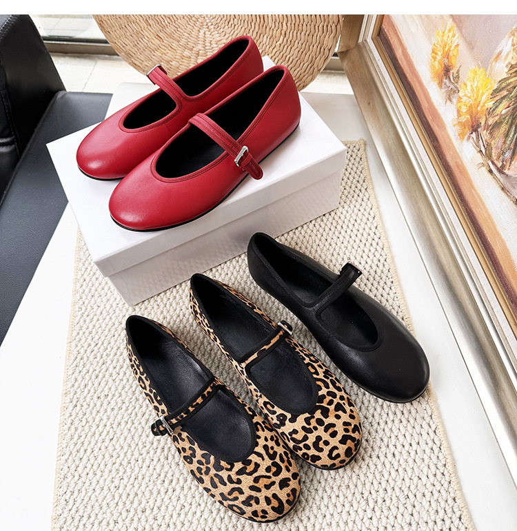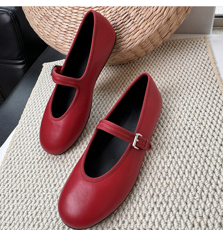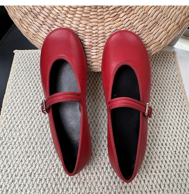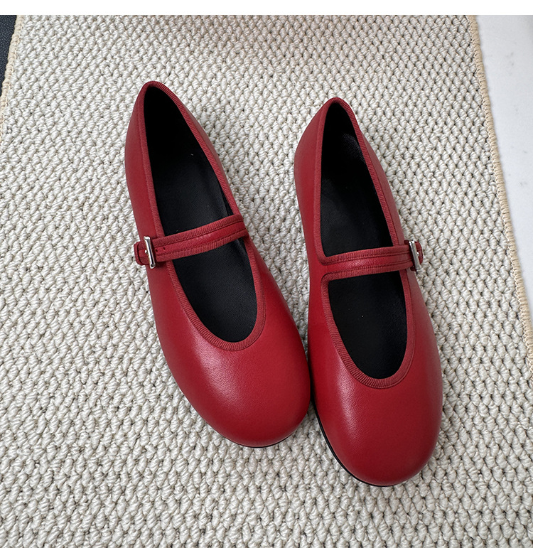 동관산~여성을 위한 천연가죽 라운드토 레트로 원버튼 메리제인 슈즈 25 봄 신상 플랫 컴포트 슈즈