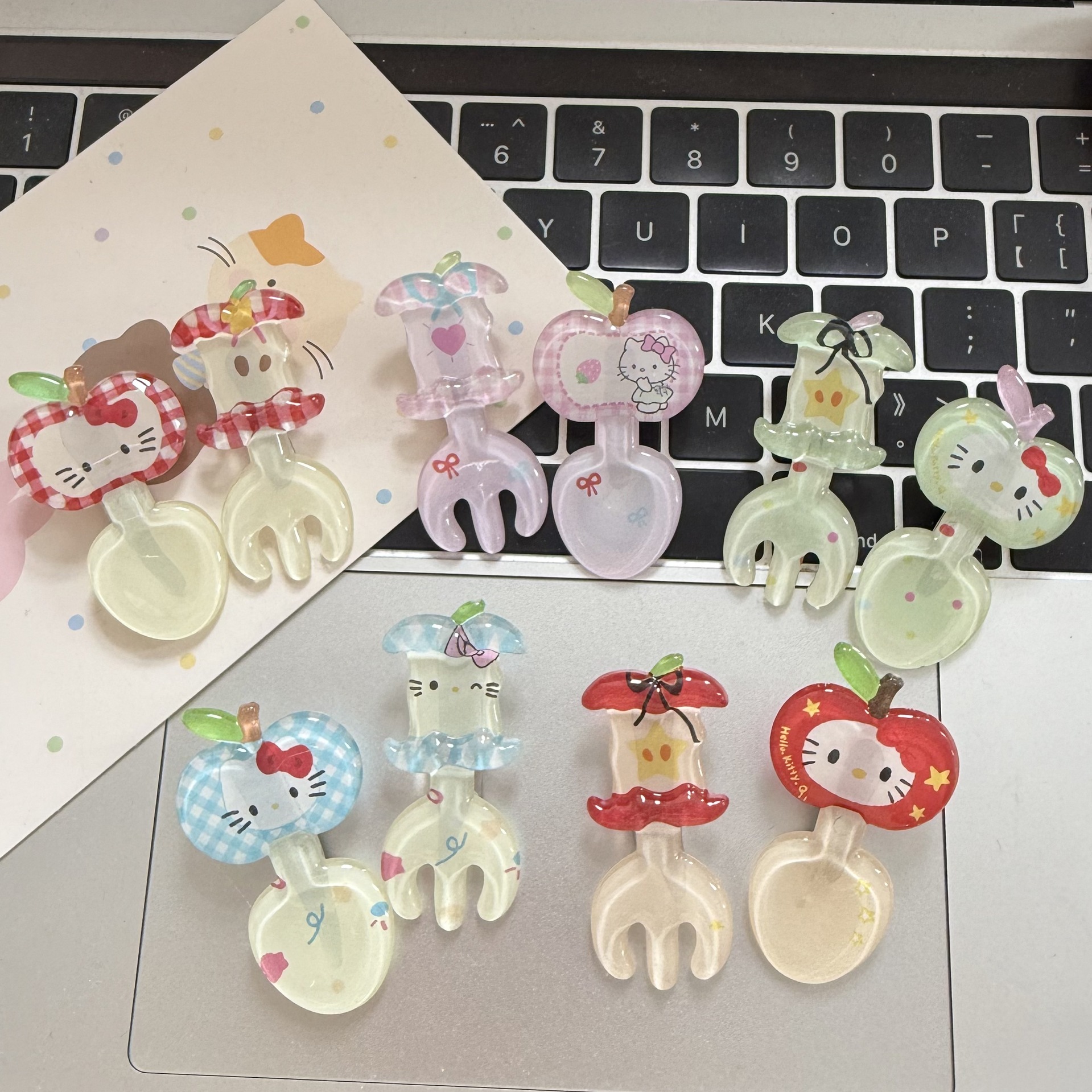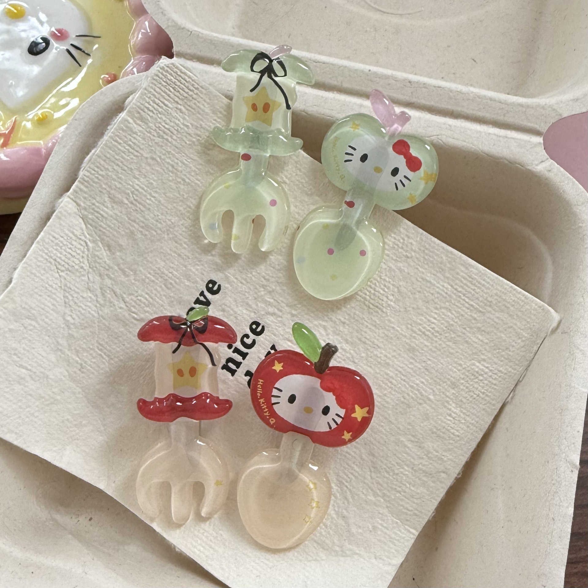 귀여운 젤리 kt 사과 코어 포크 머리핀 빨간색 만화 새끼 고양이 재미있는 오리 부리 클립 소녀 하트 귀여운 헤어 액세서리