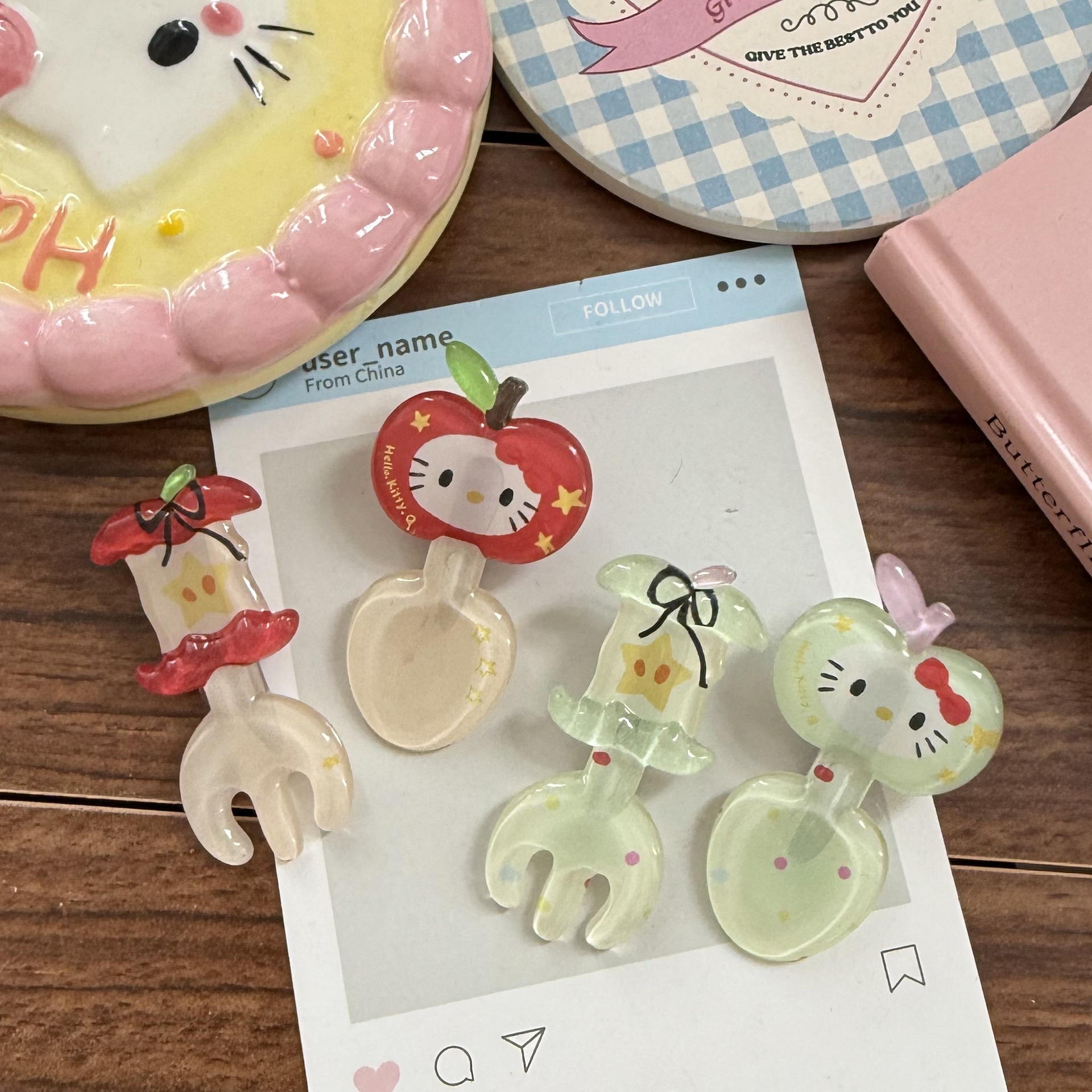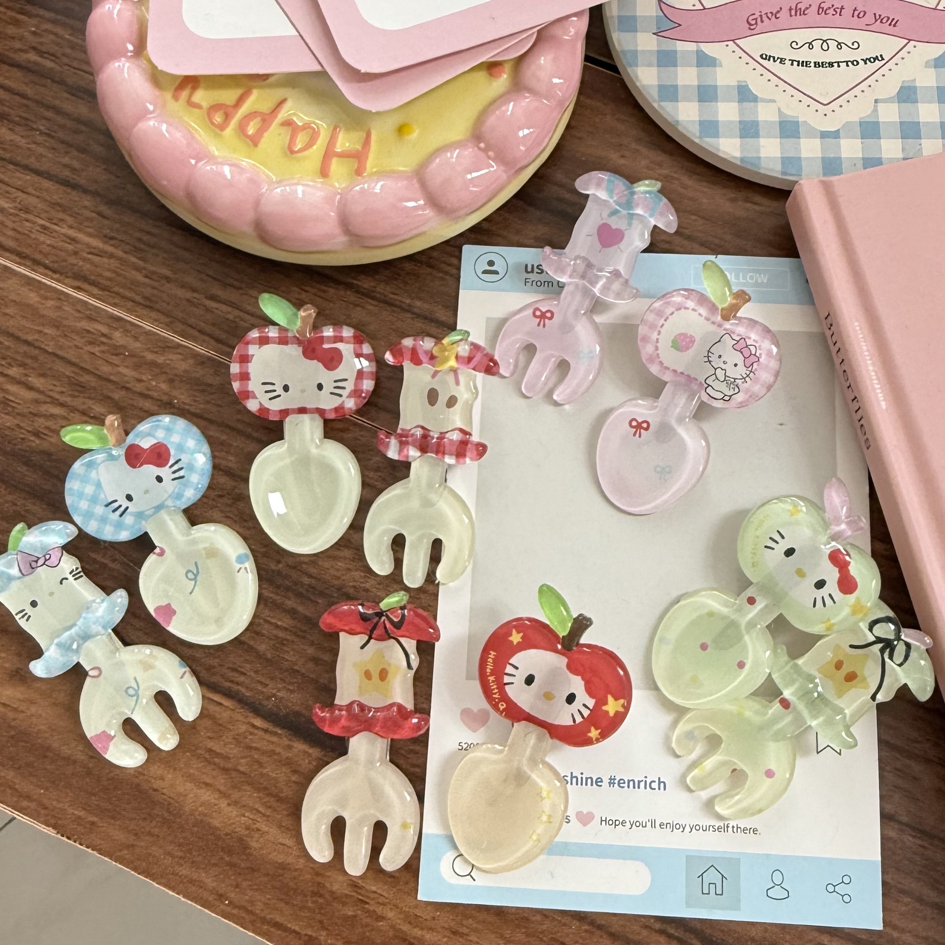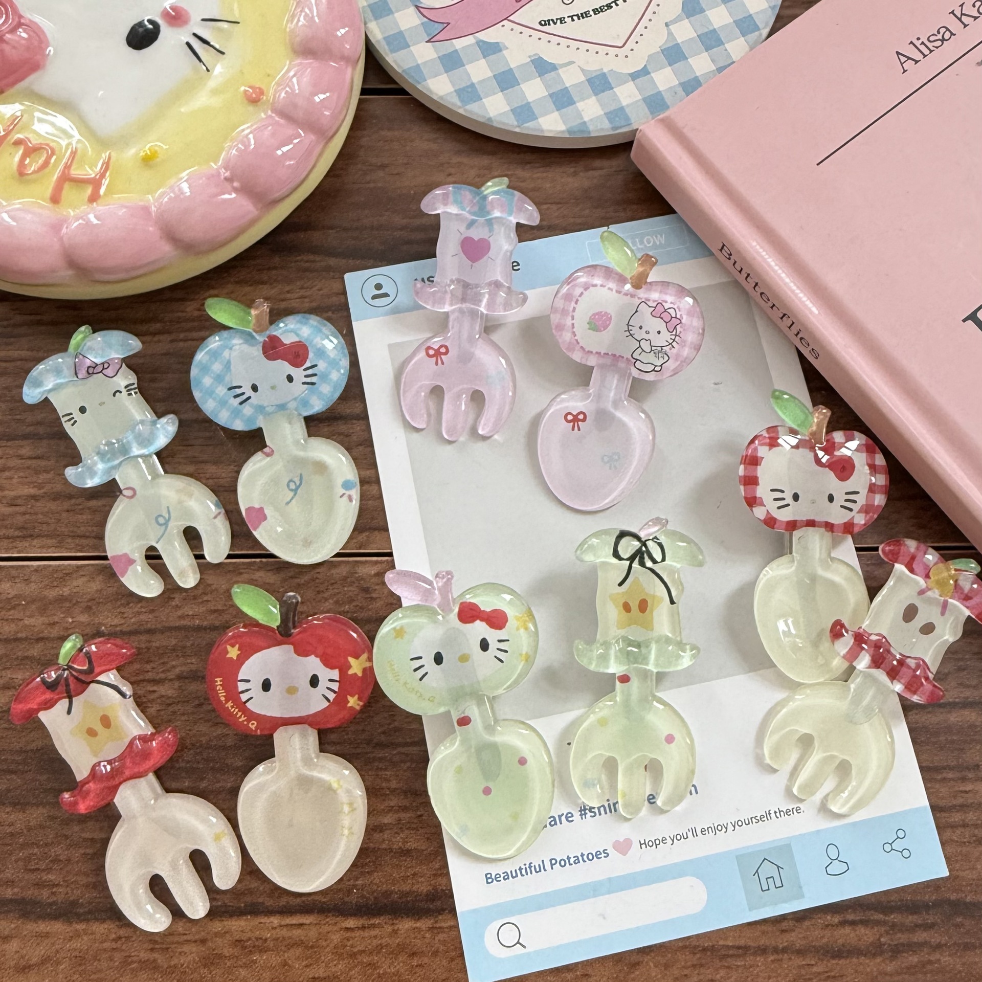 귀여운 젤리 kt 사과 코어 포크 머리핀 빨간색 만화 새끼 고양이 재미있는 오리 부리 클립 소녀 하트 귀여운 헤어 액세서리스토어 가기