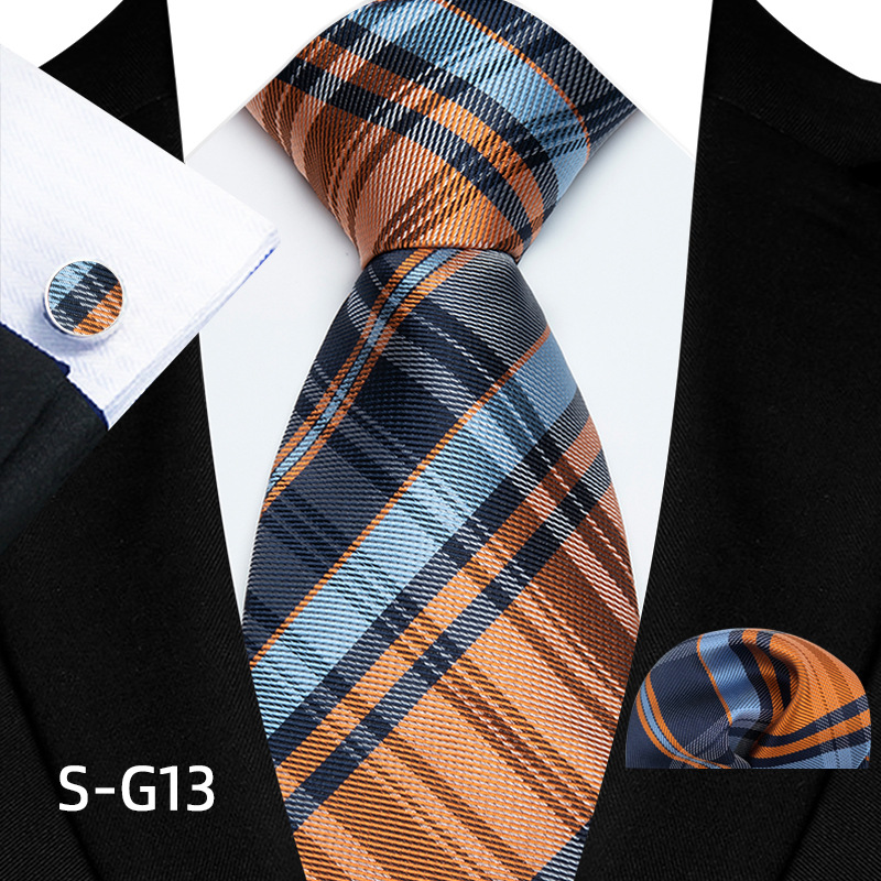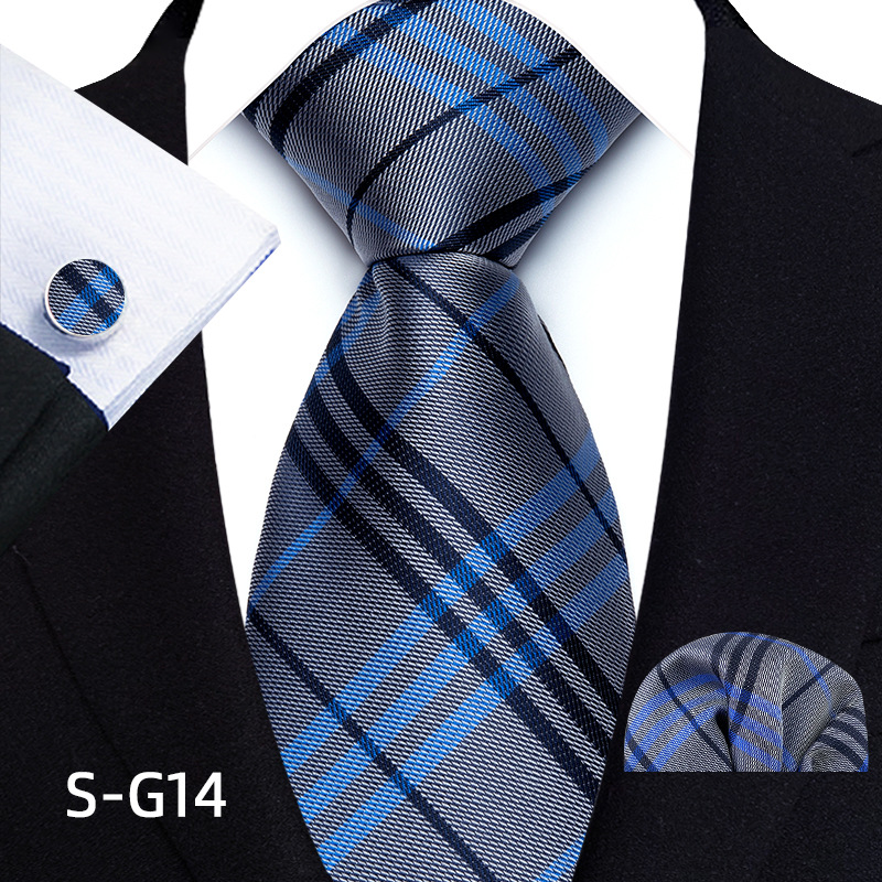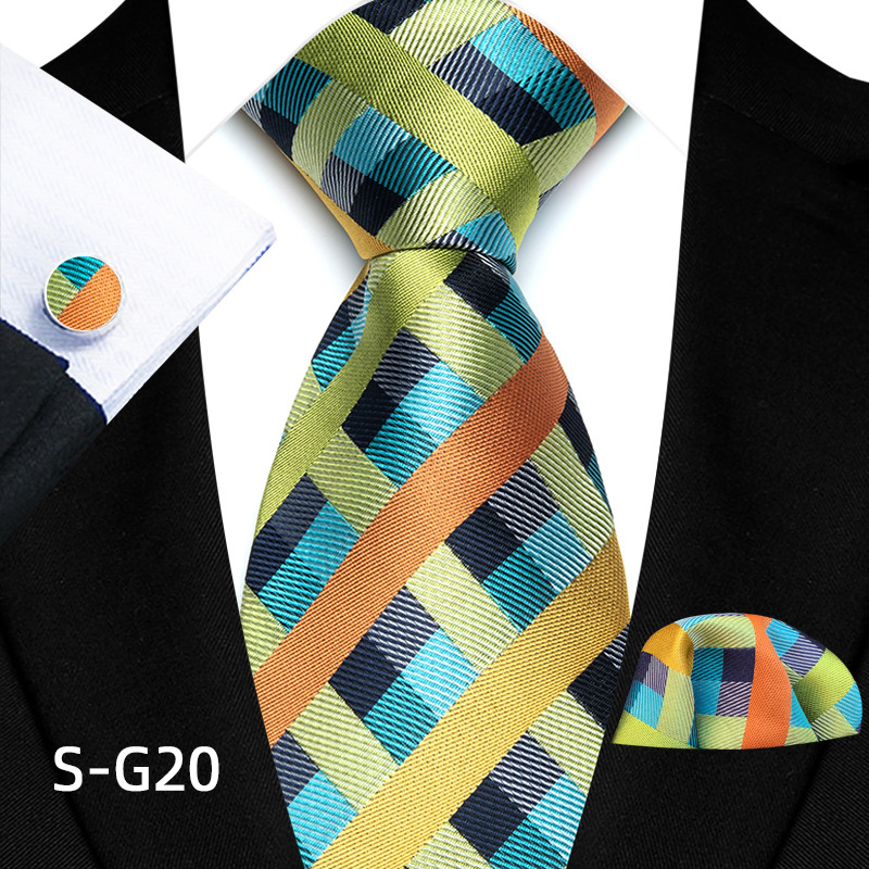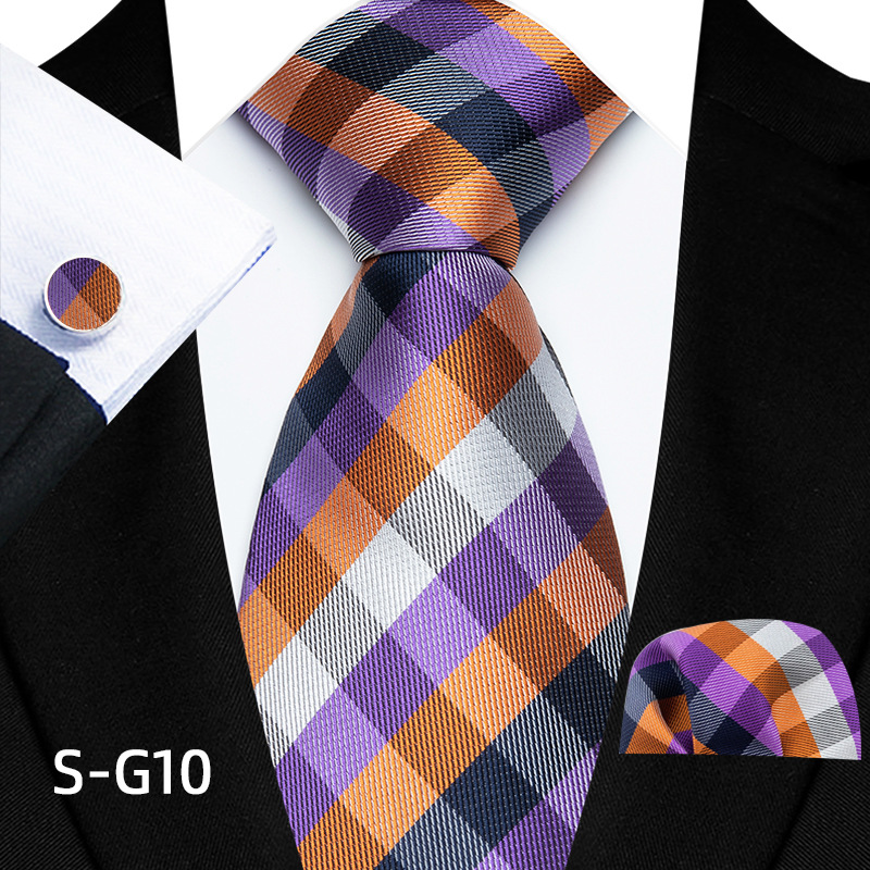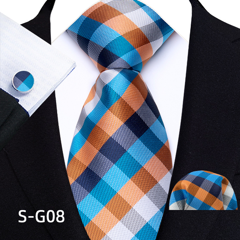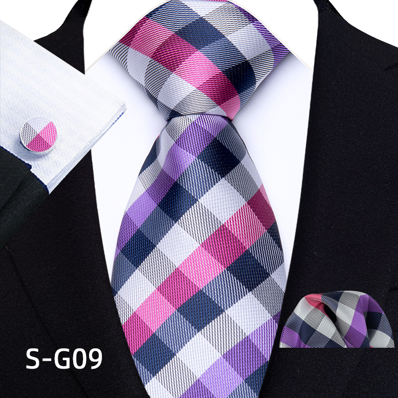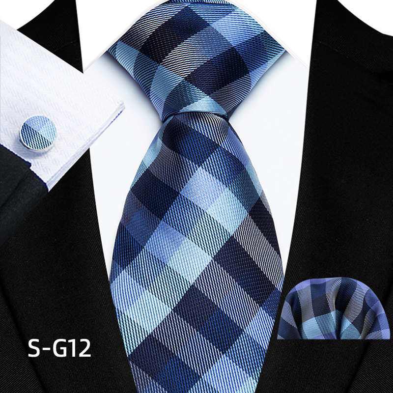 공장 현장 직접 공급 남성용 폴리에스터 8cm 패션 체크 무늬 영국식 넥타이 스퀘어 스카프 커프스 3피스 세트스토어 가기